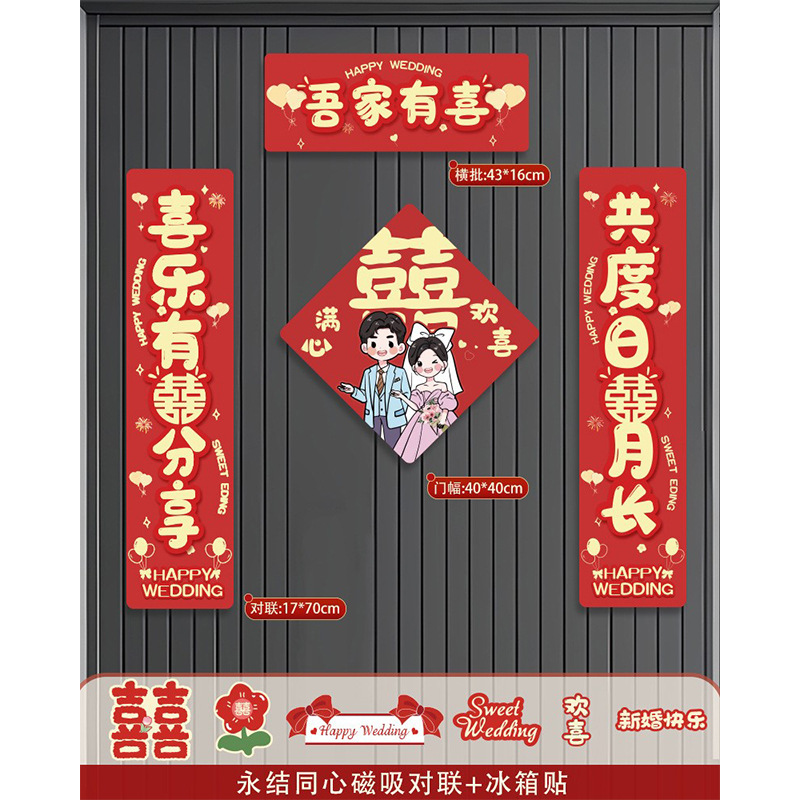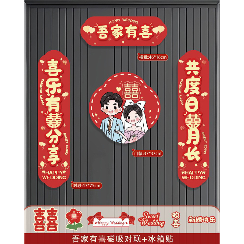 结婚对联磁吸男方新婚大门喜字婚联女方出嫁入户门贴婚房装饰用品