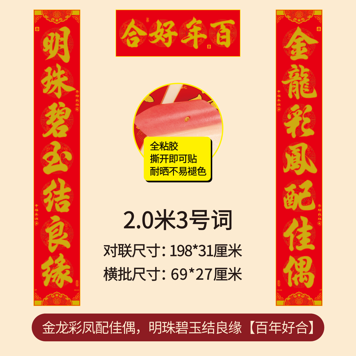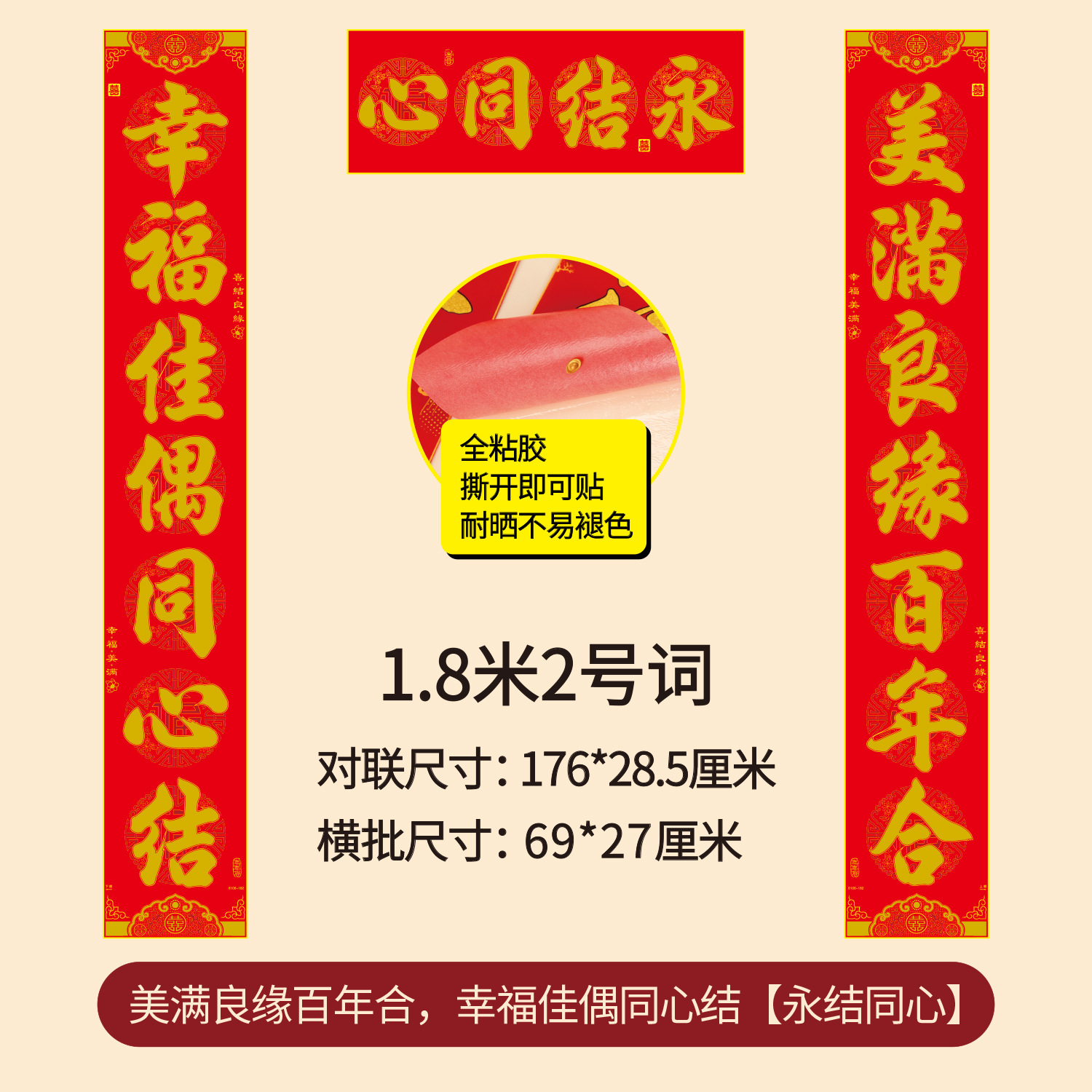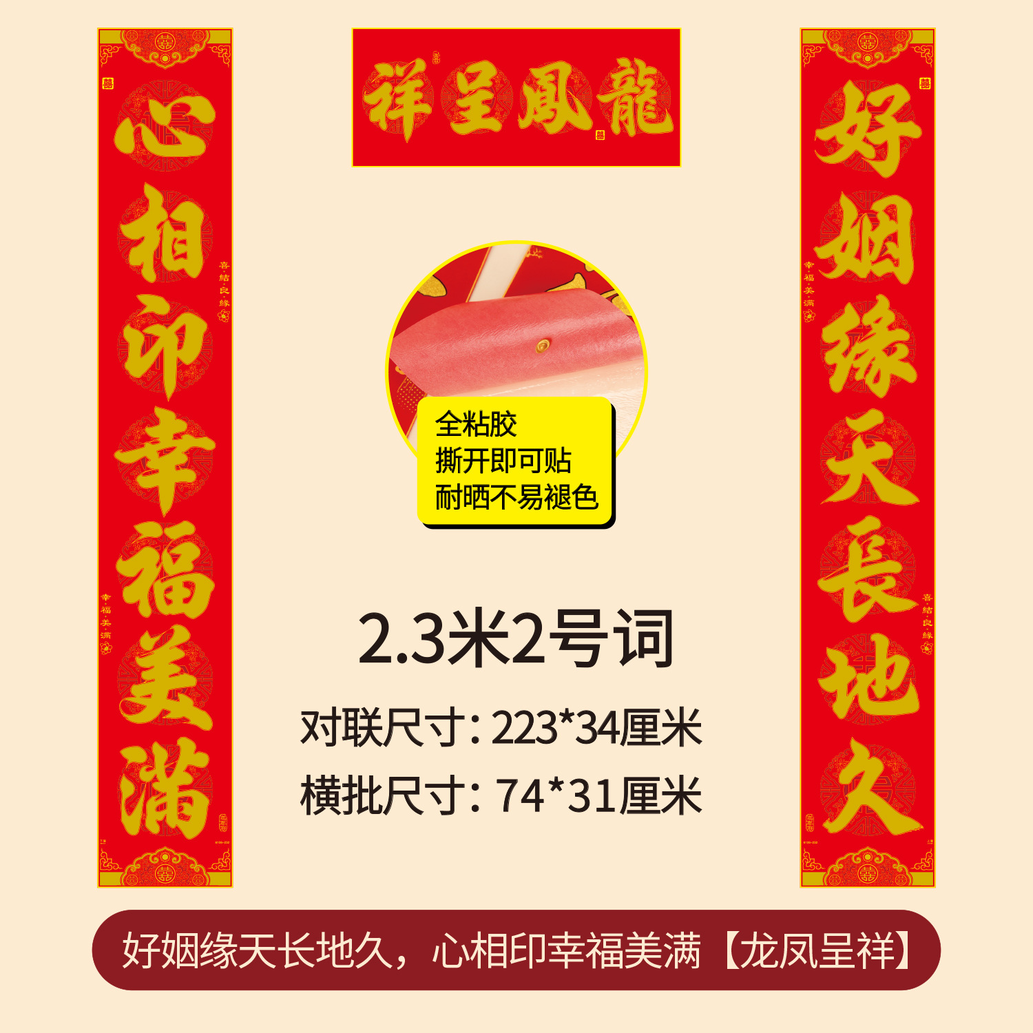 批发加厚植绒布结婚对联烫金结婚庆用品婚房装饰布置礼盒装喜对联