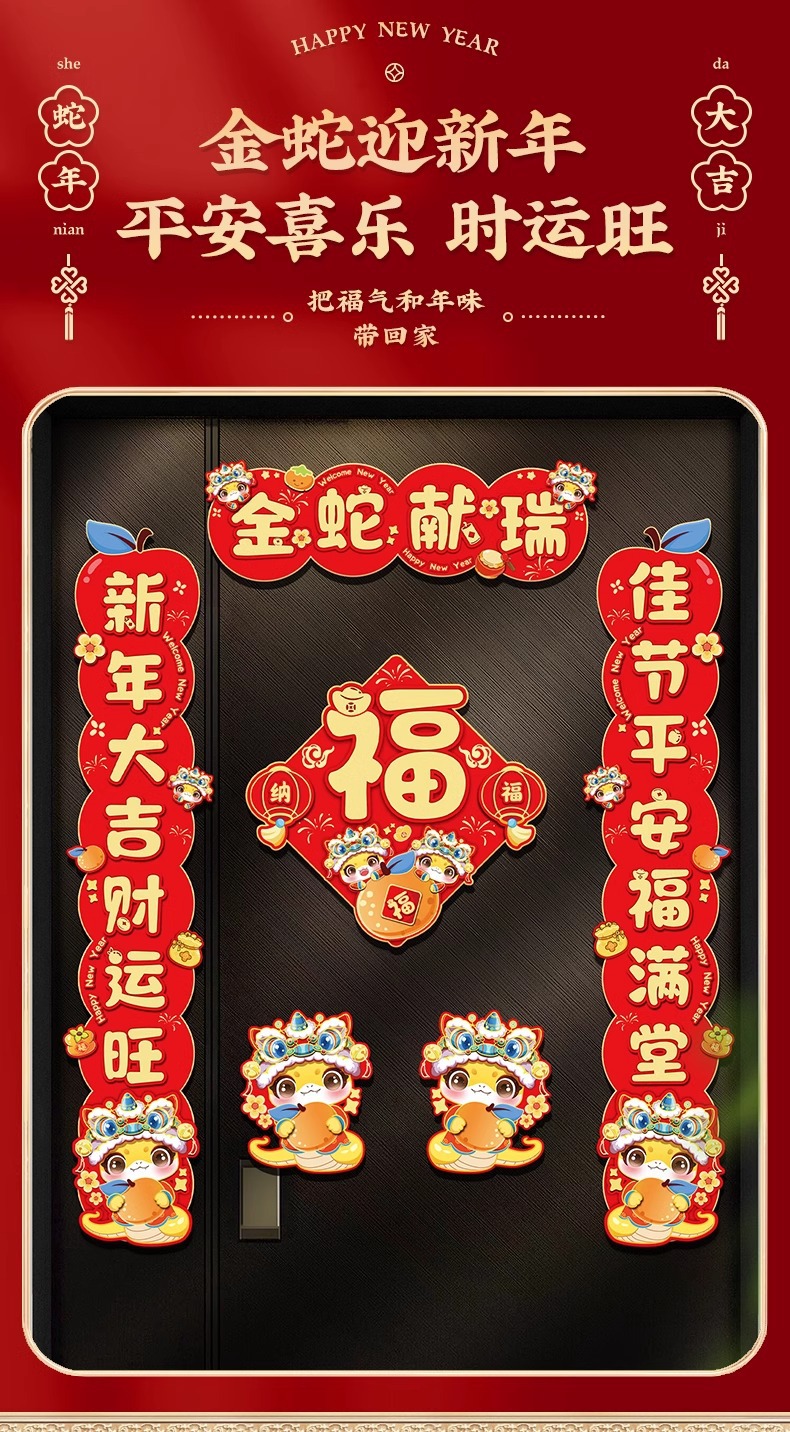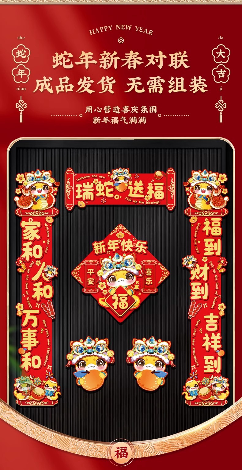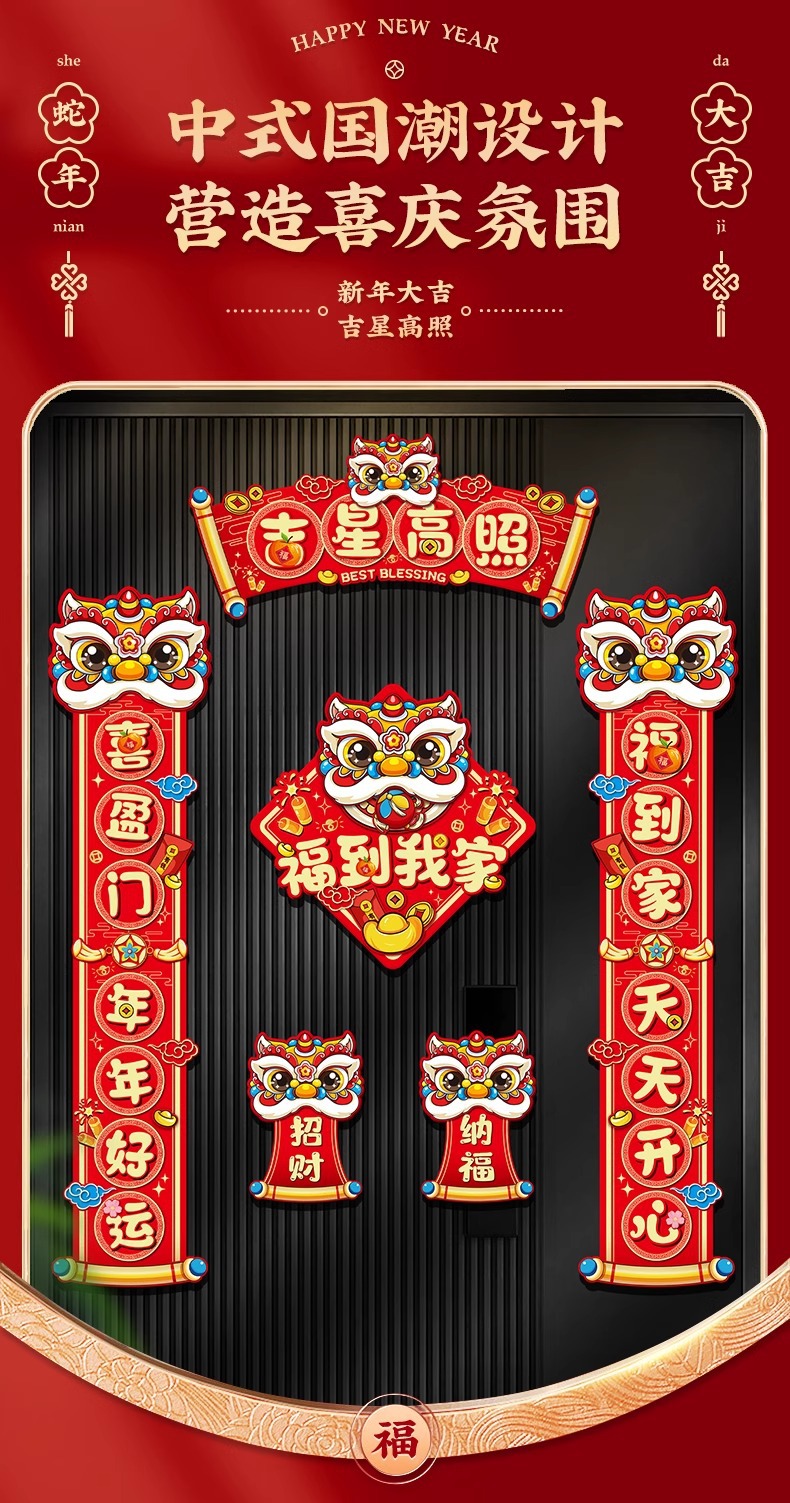 2026年新款春节马年对联防盗门卡通立体纸对联