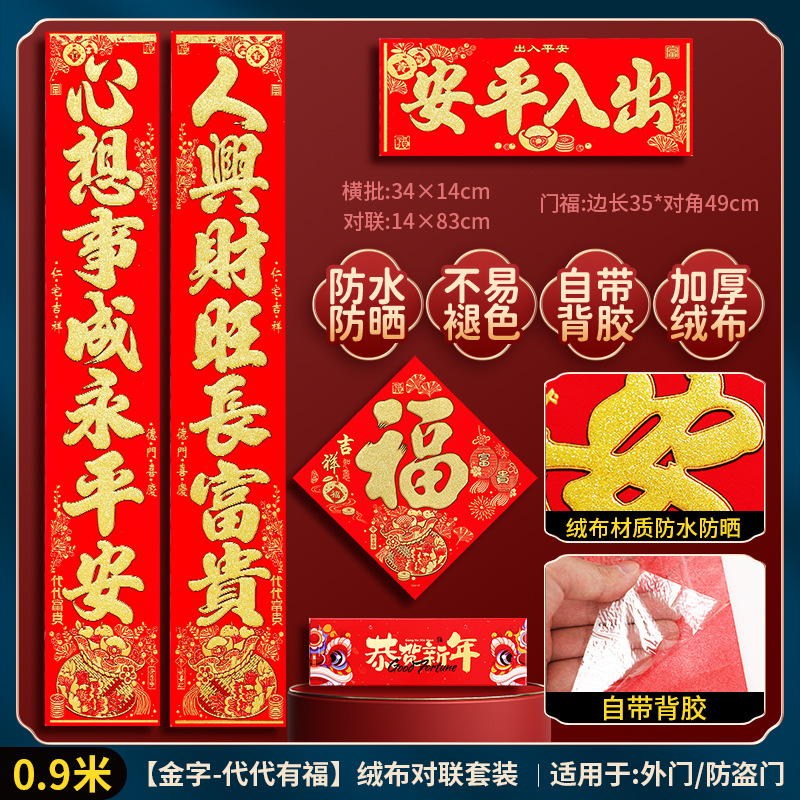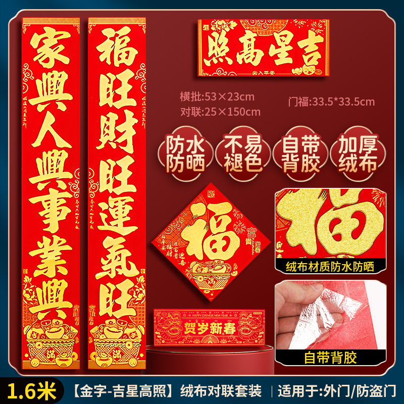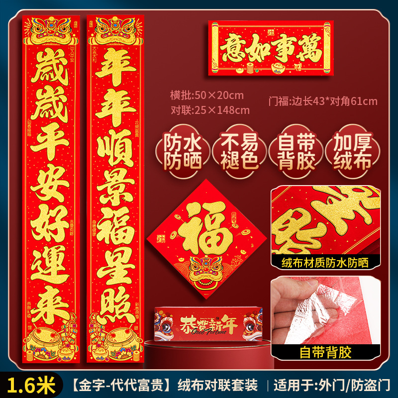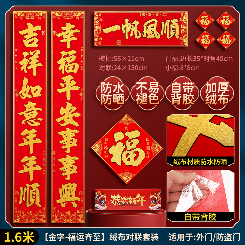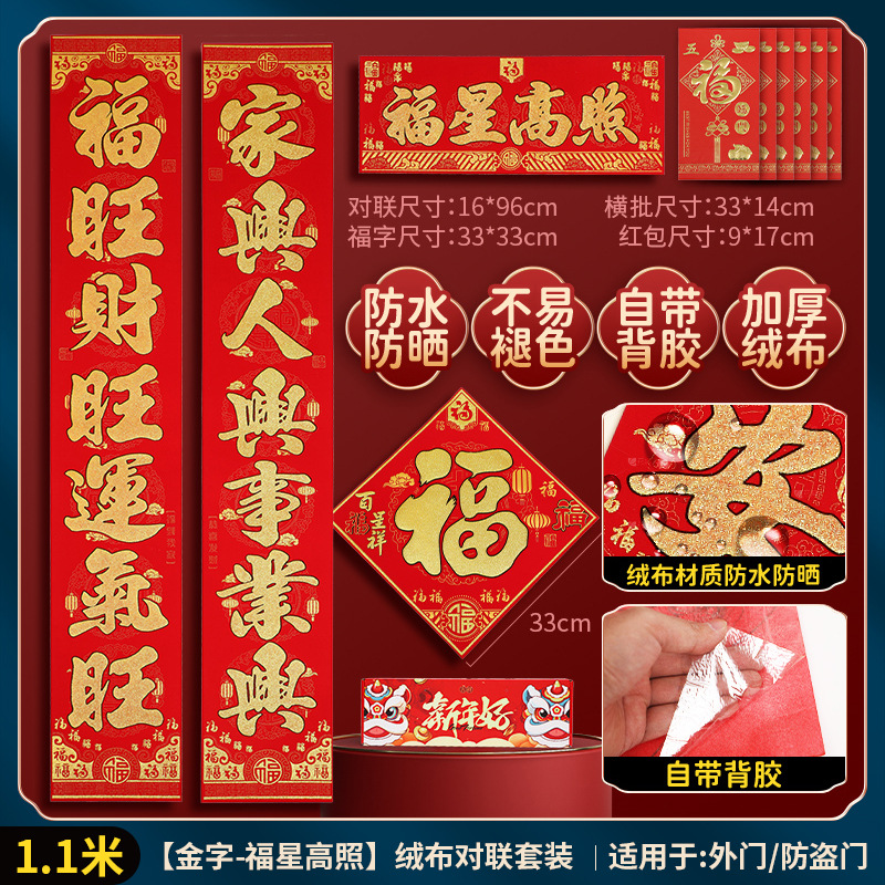 绒布对联春联批货2026马年自粘福字贴新年装饰过年春节年货用品