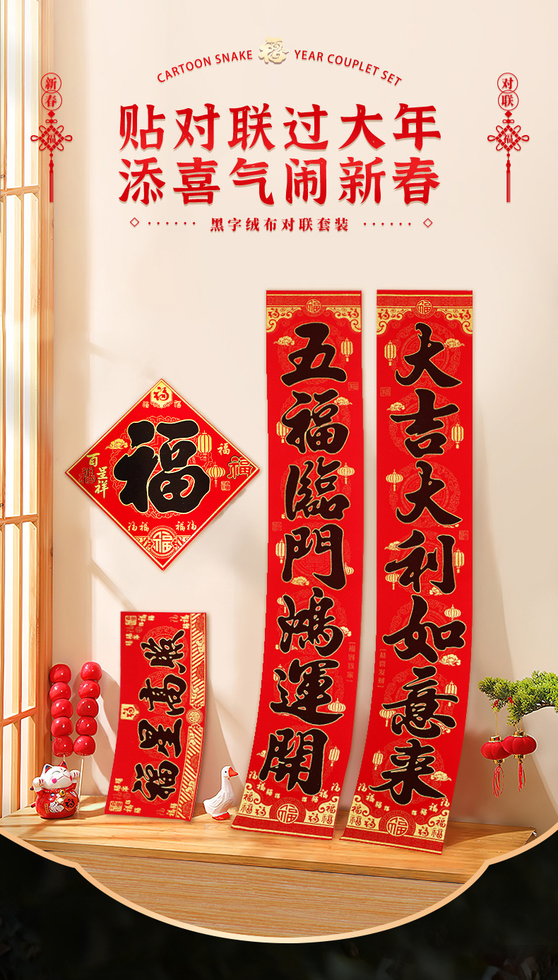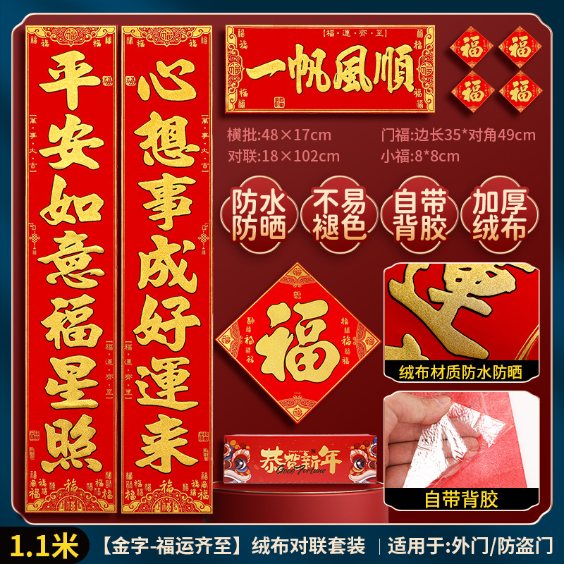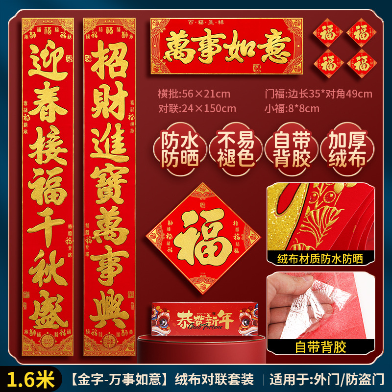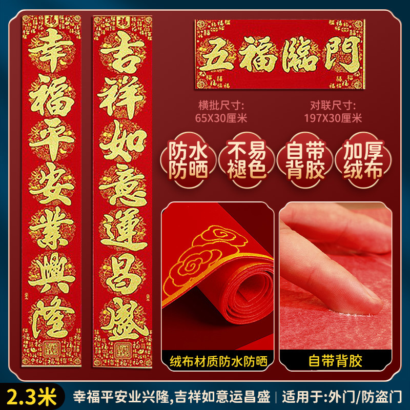 绒布对联春联批货2026马年自粘福字贴新年装饰过年春节年货用品