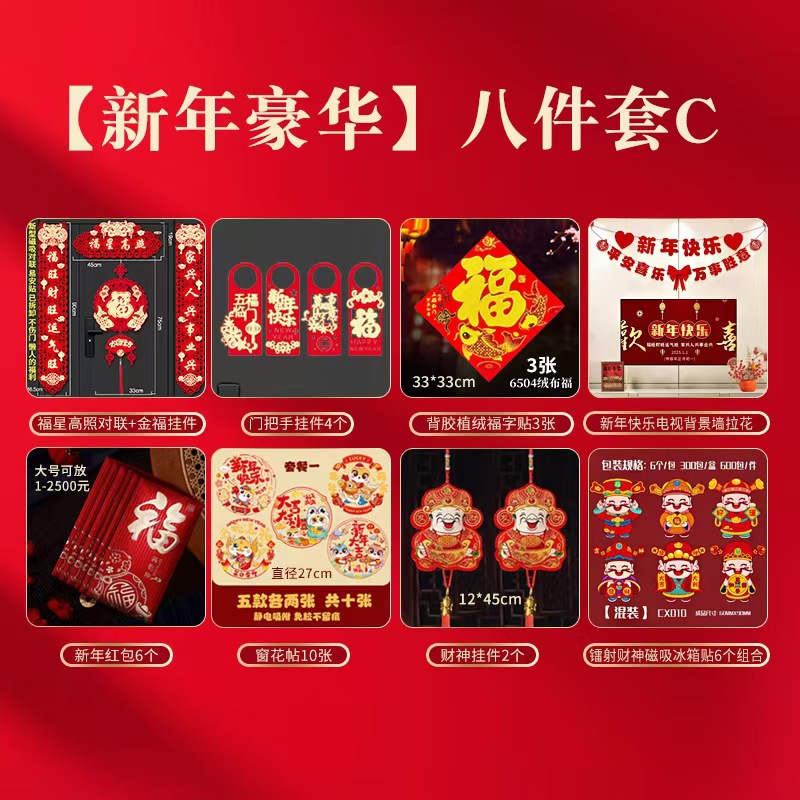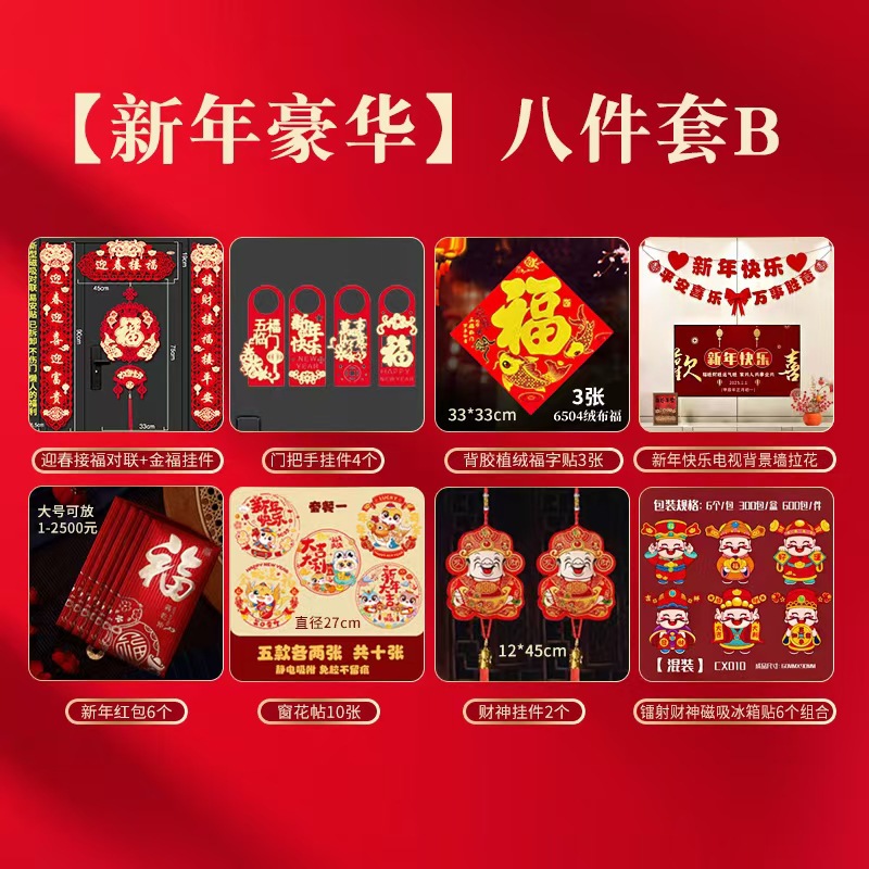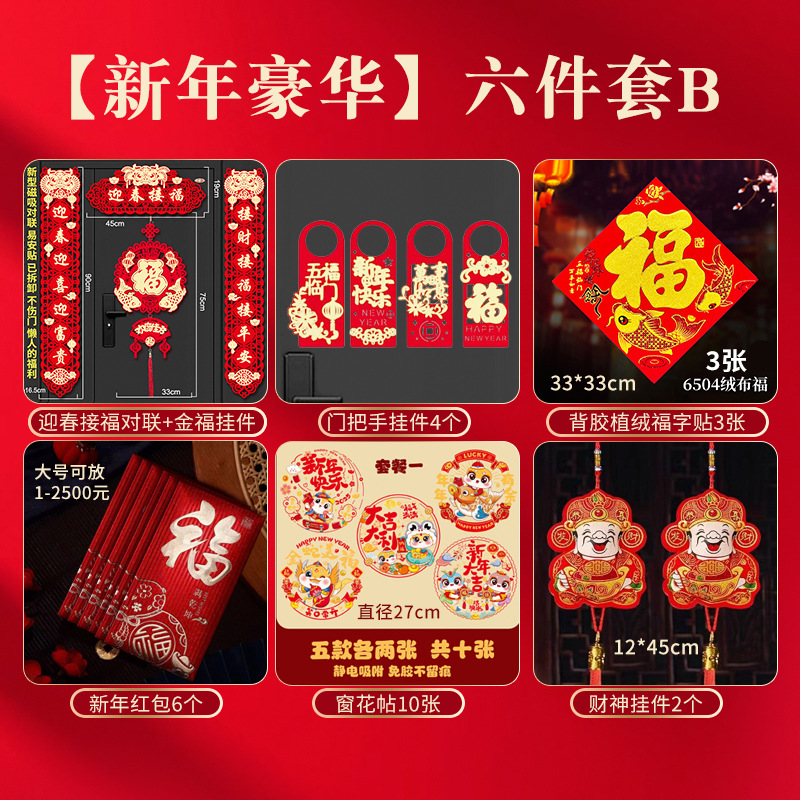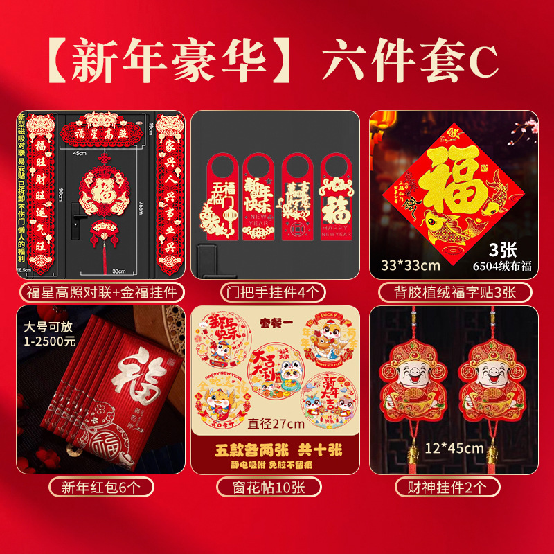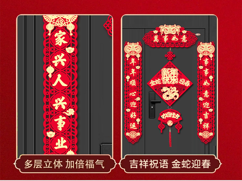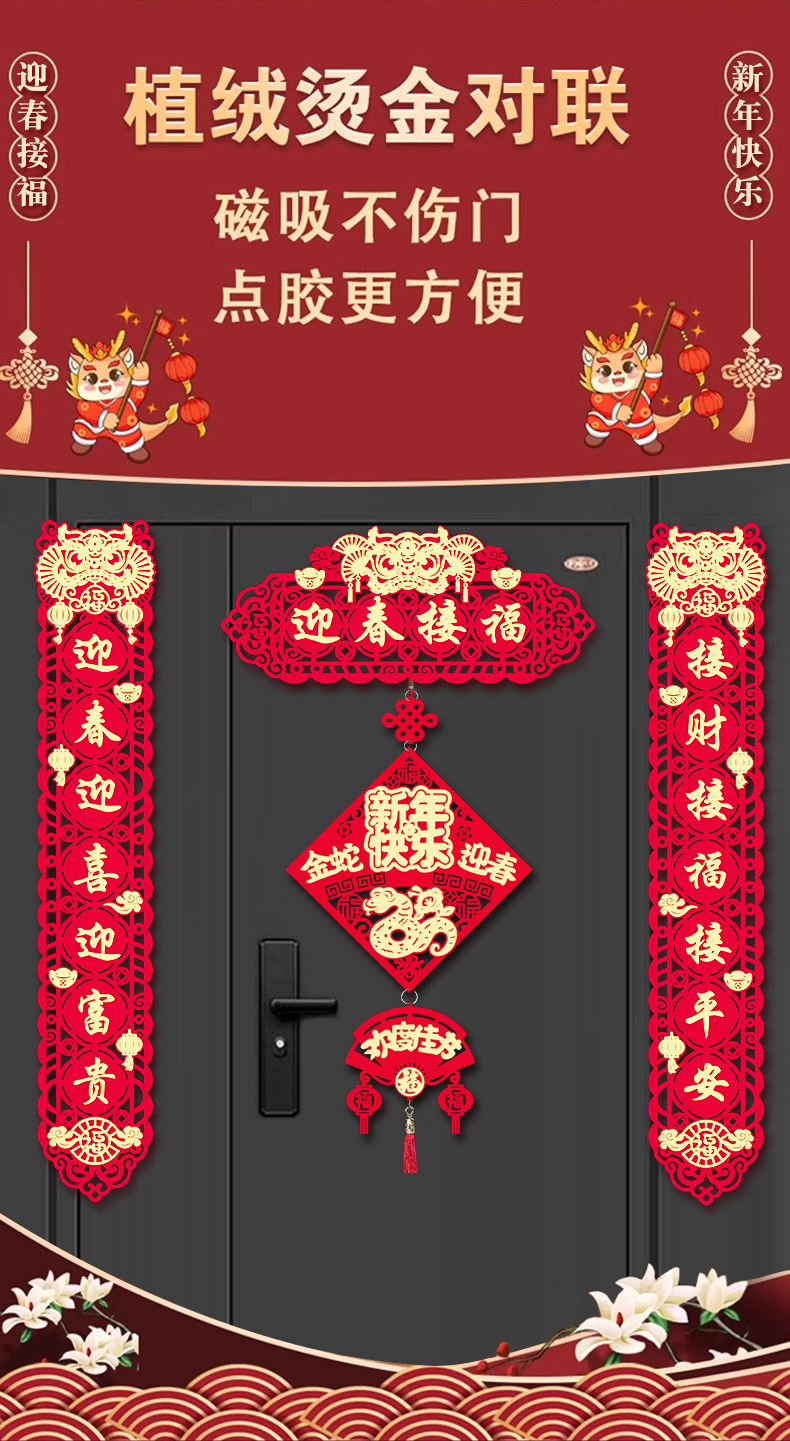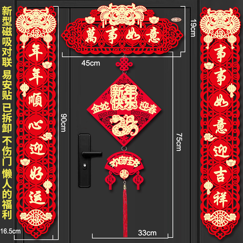 春节磁吸对联2025蛇年新年福字绒布春联过年室内装饰布置蛇年限定