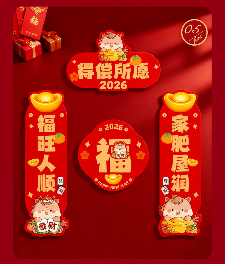 2026新款春节卡通对联定制高级感创意马年挥春批发春节对联定做