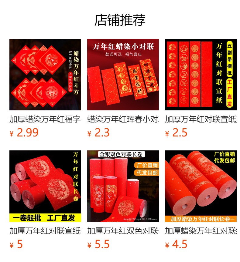 批发加厚蜡染万年红对联宣纸空白手写七言洒金春联大红纸厂家直销