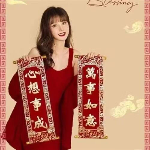 迷你烫金植绒布春联2025蛇年新年春节对联心想事成四字卷轴小挂联