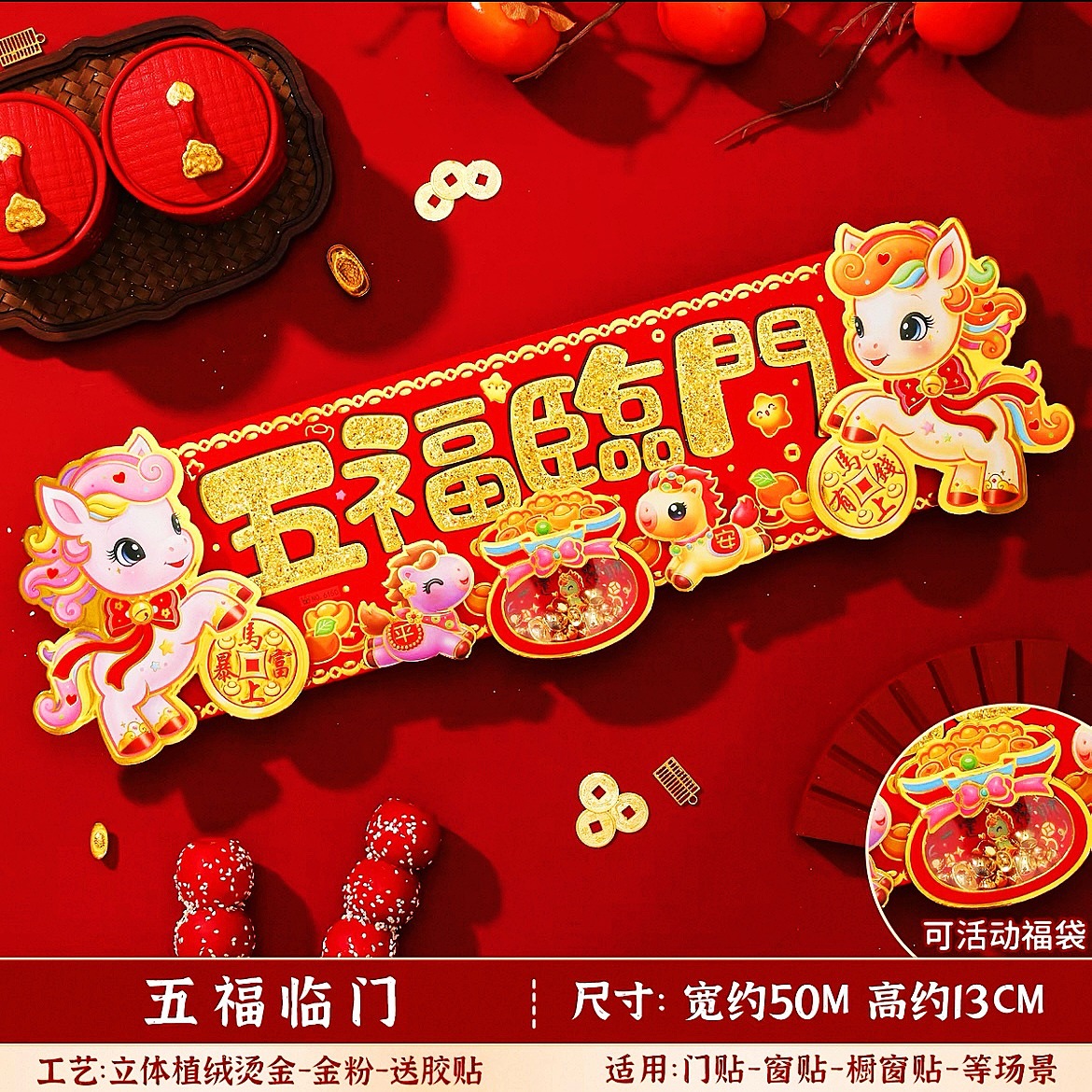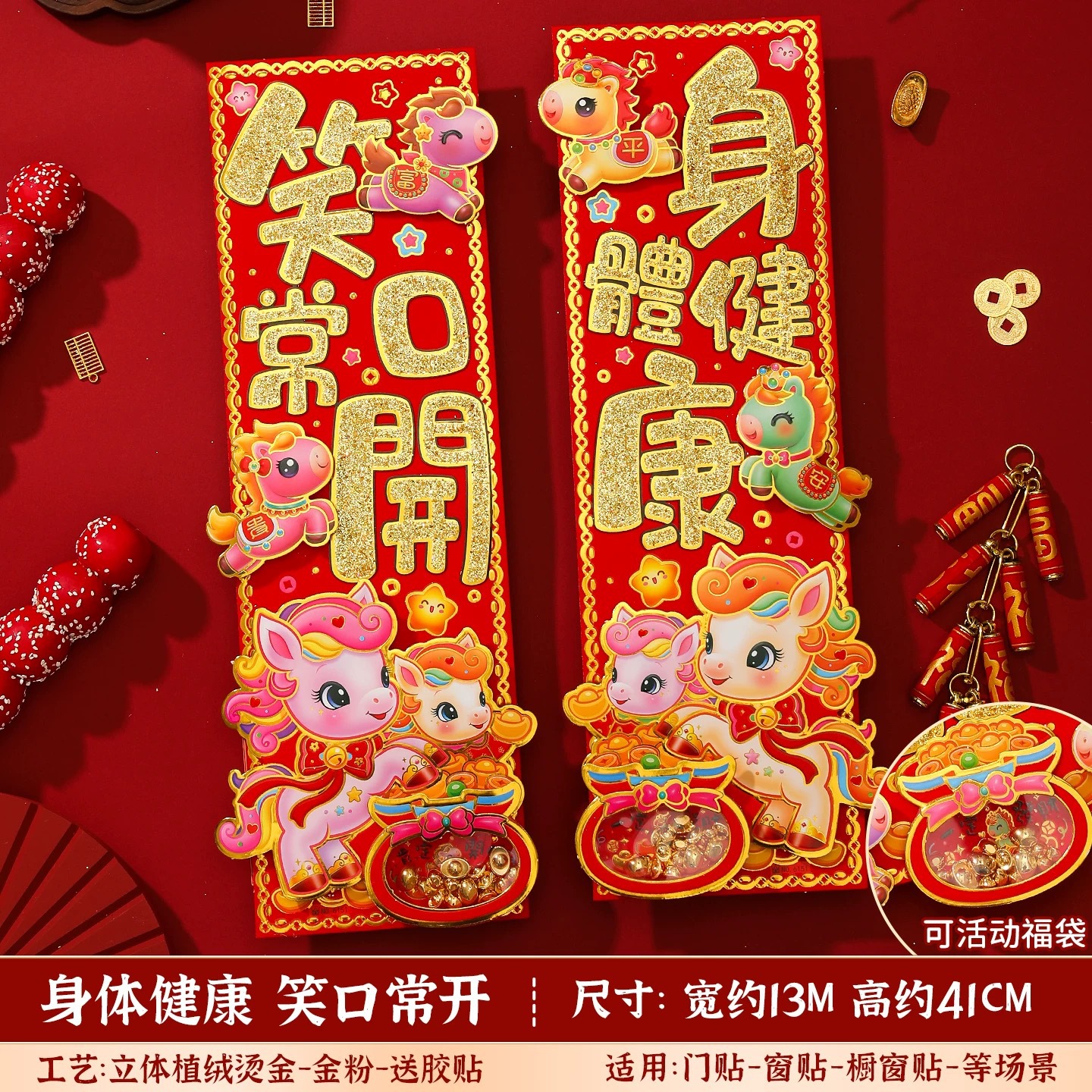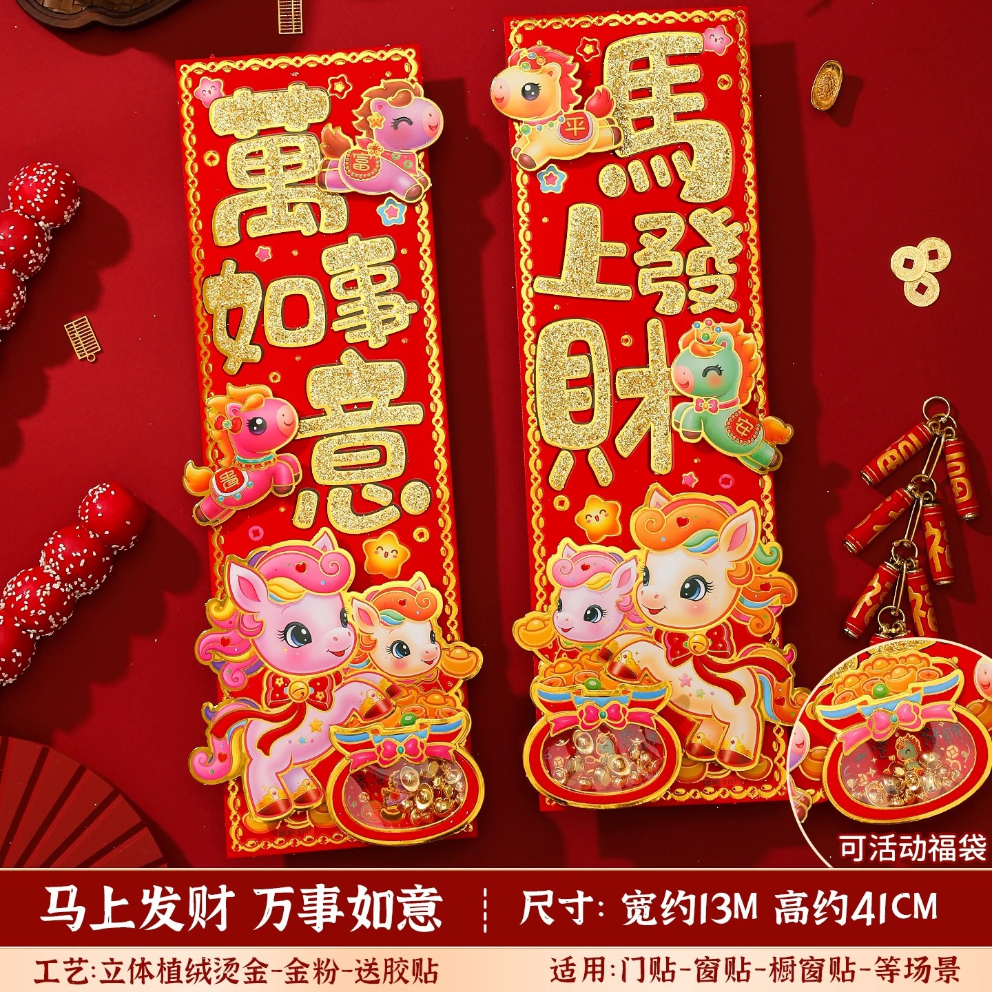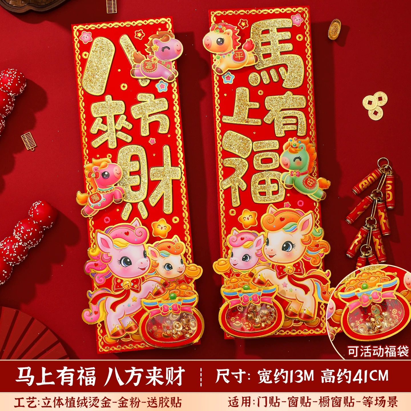 2026贺年装饰竖批四字对联春节马年新年门联横批挥春门贴新款春联