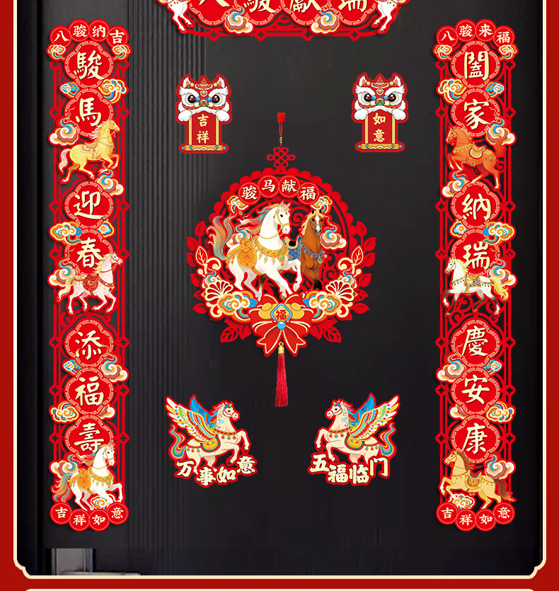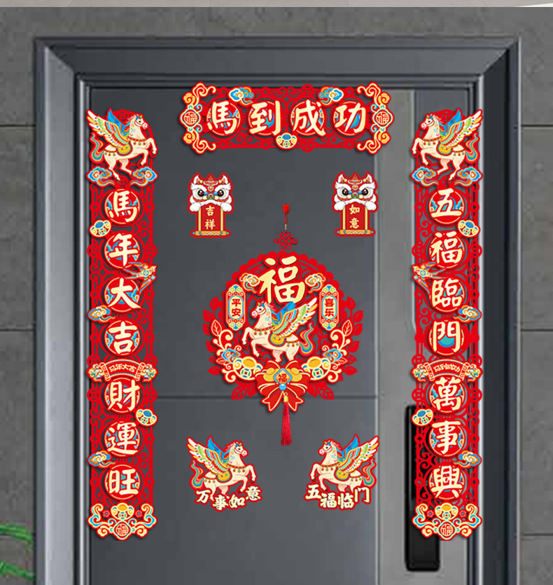 对联春联批发家用2026马年新款卡通植绒磁吸新春节过年高档门挂件