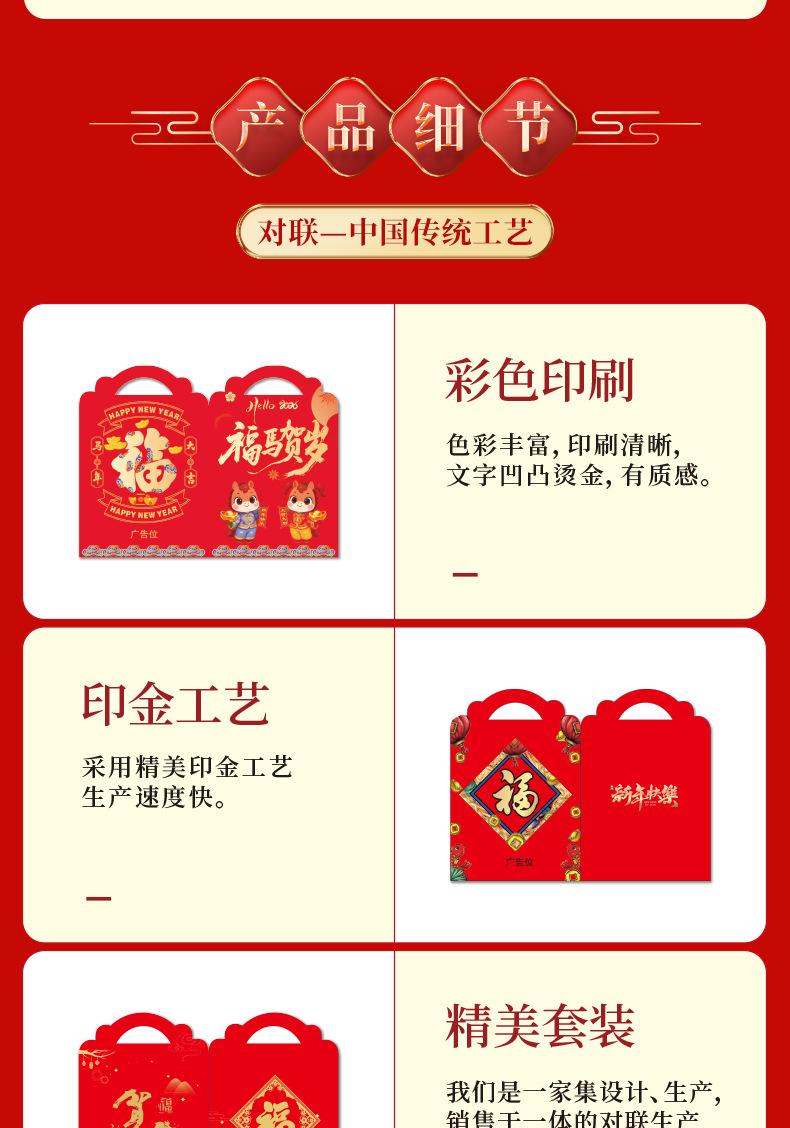 2026新年用品对联大礼包春联包装礼品袋子印刷手提硬卡纸礼袋批发