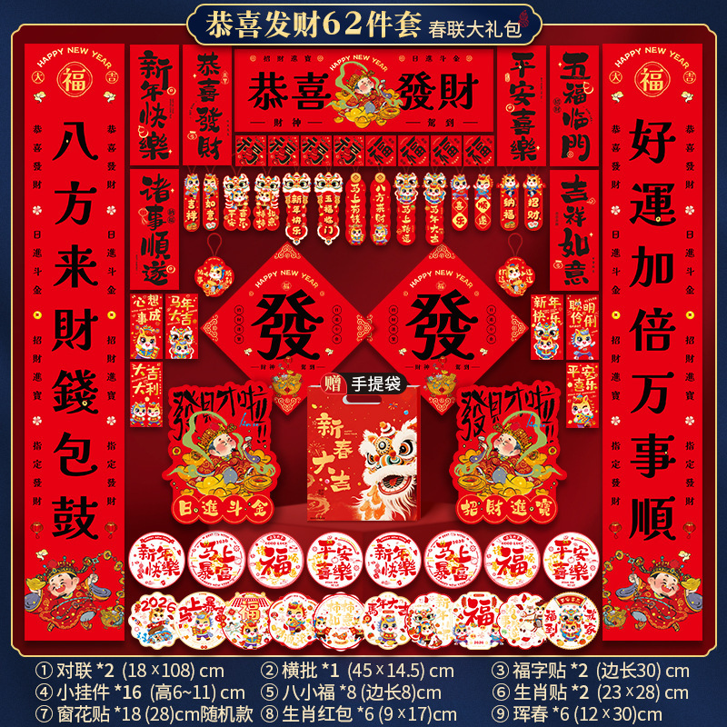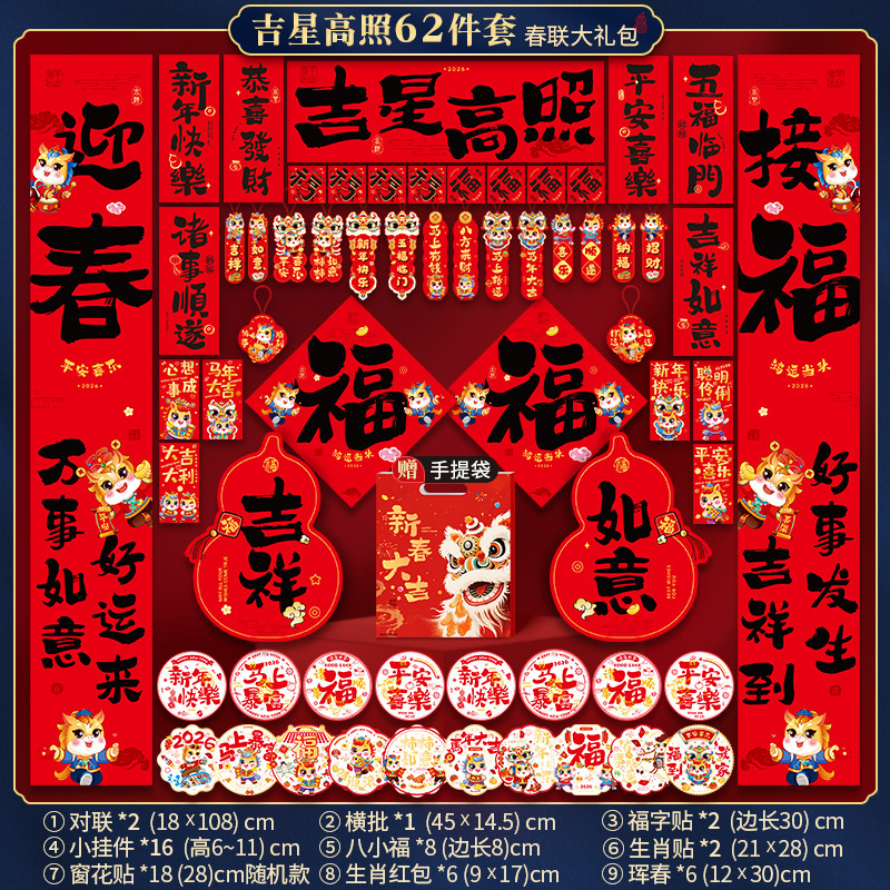 春联对联批货2026马年对联大礼包春节过年福字门贴新年装饰品定制