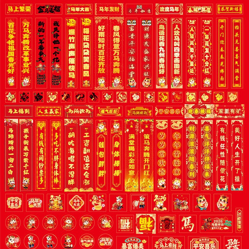 2026 new coated paper bronzing new year couplet spring festival stall new year goods flocking sprinkling gold powder couplet factory in stock wholesale