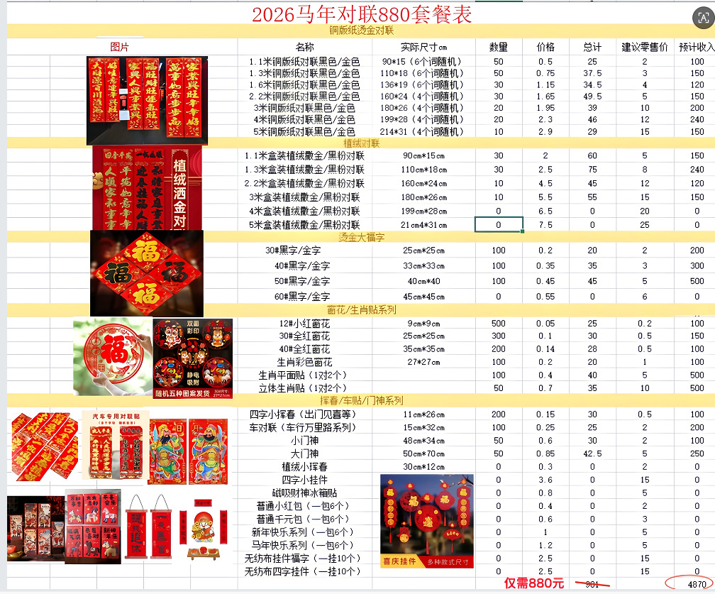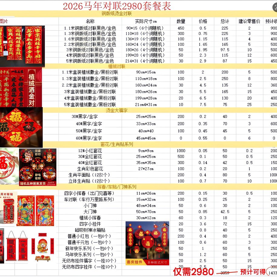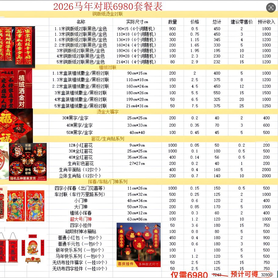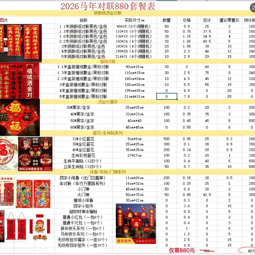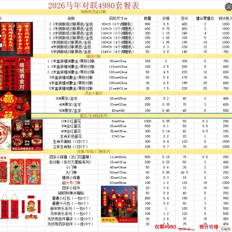 2026新款铜版纸烫金春联春节地摊年货植绒撒金粉对联厂家现货批发