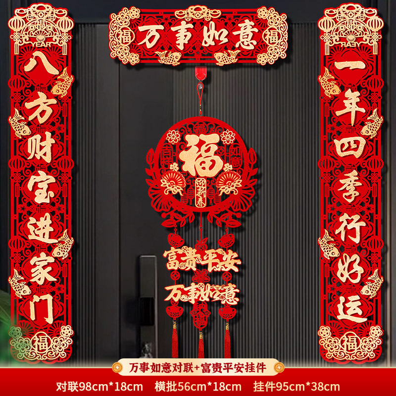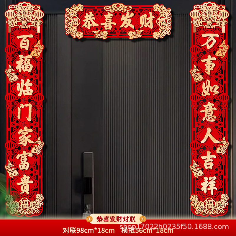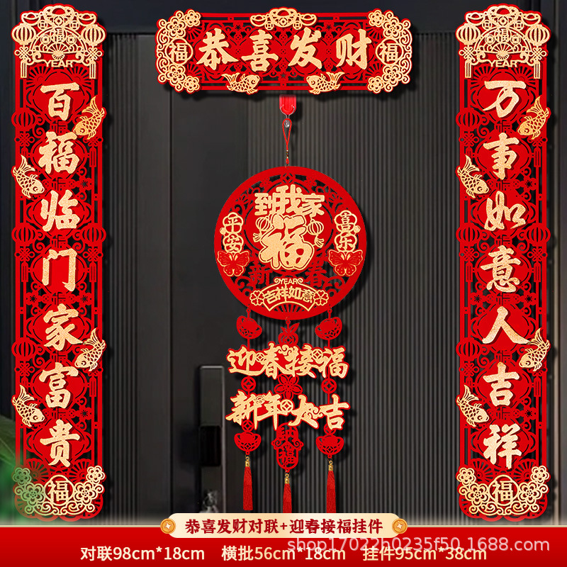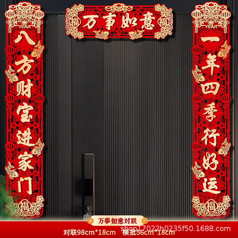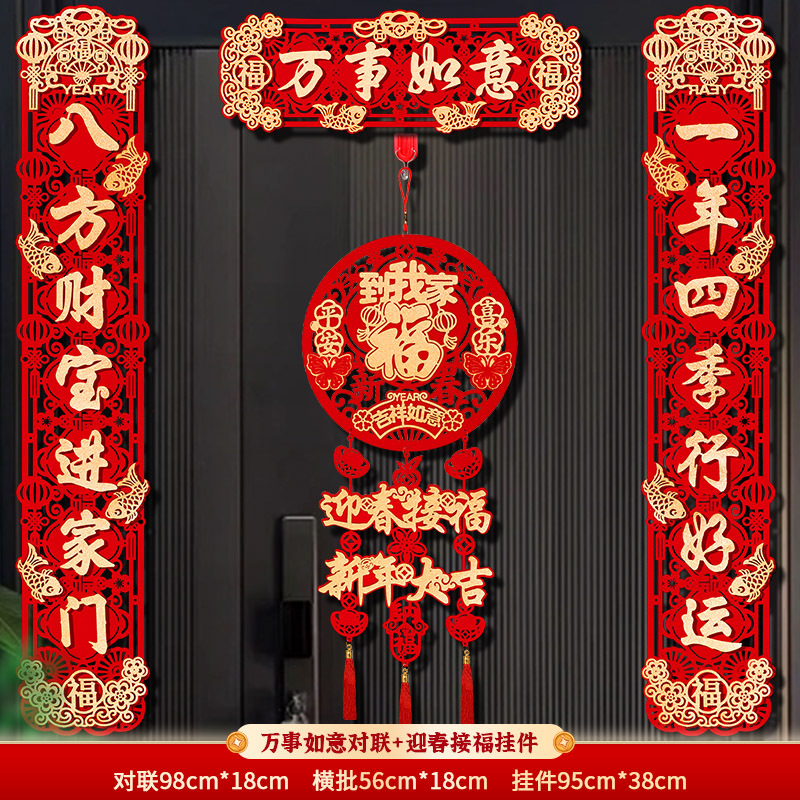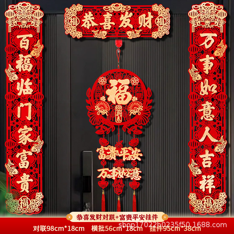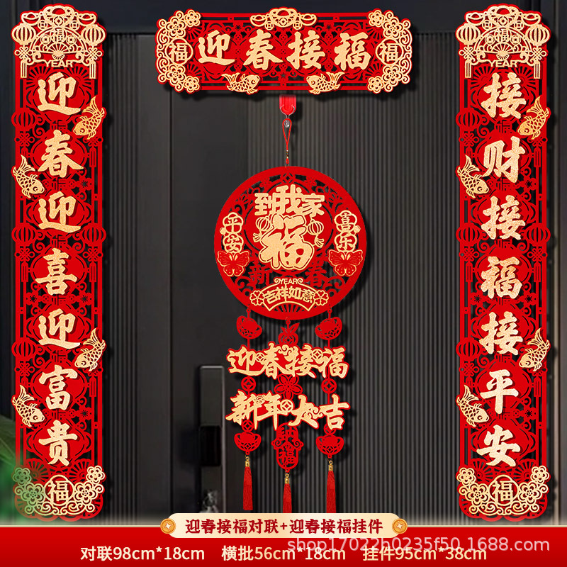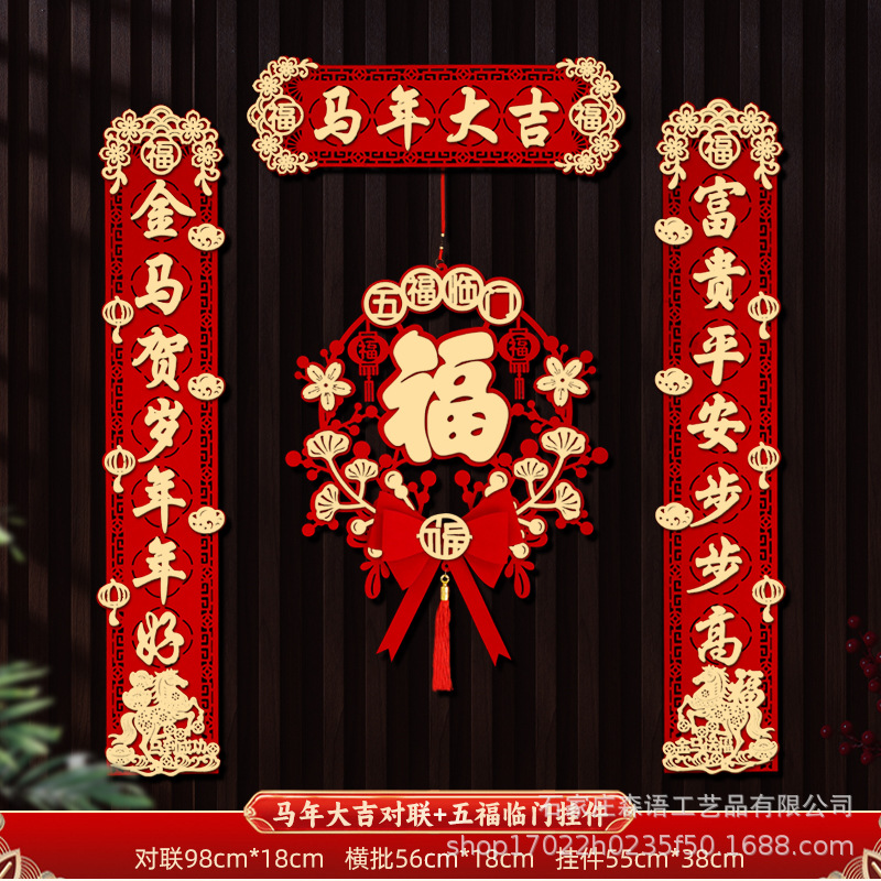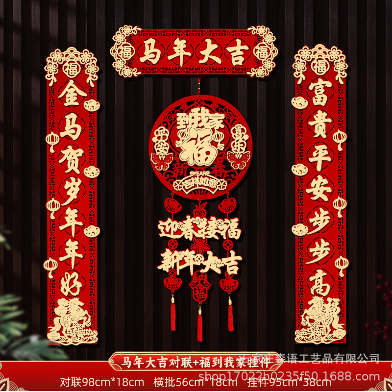 马年对联新年春联2026新款磁吸过年入户门福字贴绒布对联套装批发