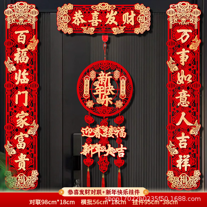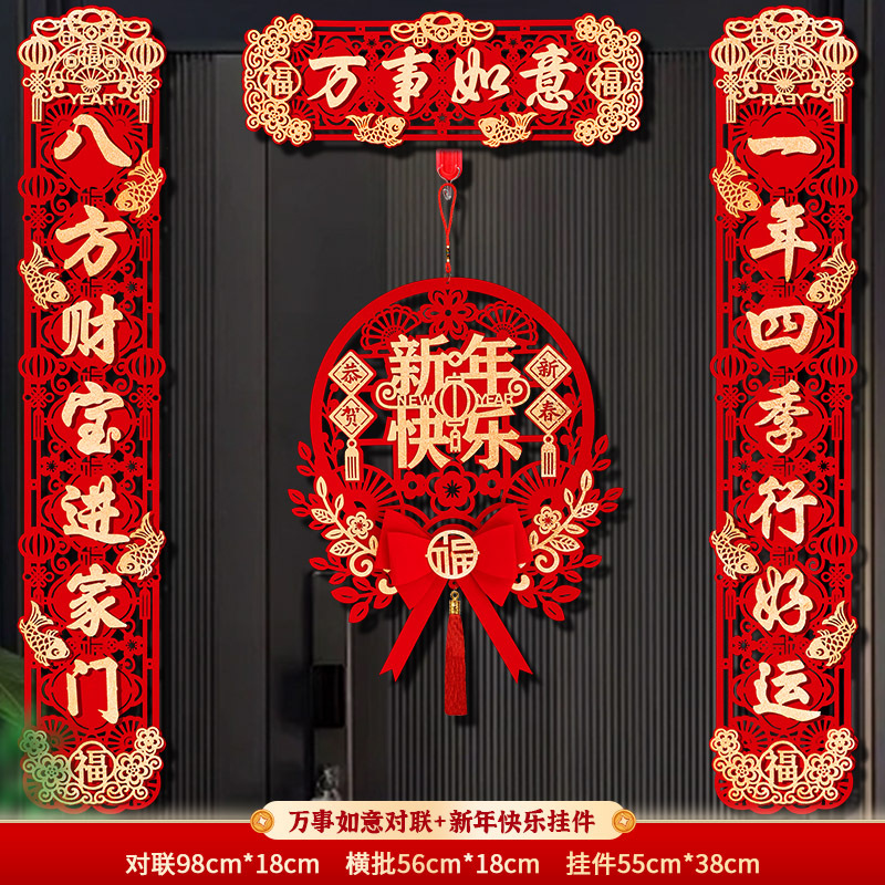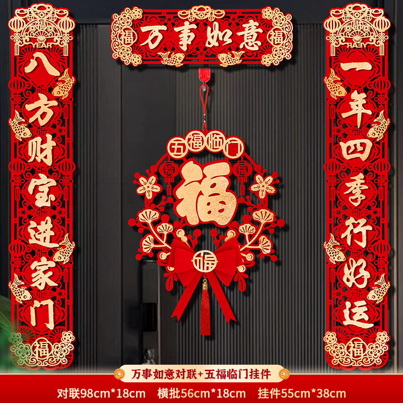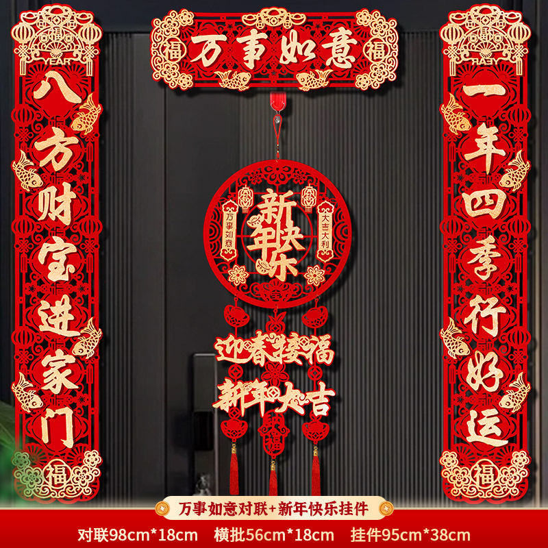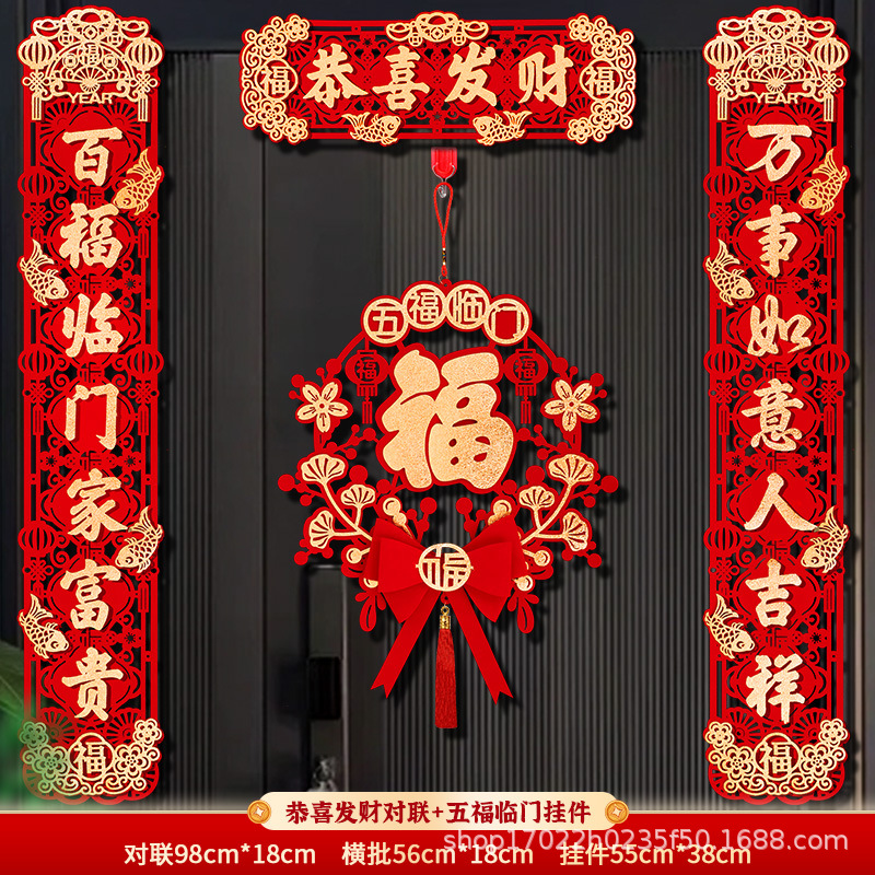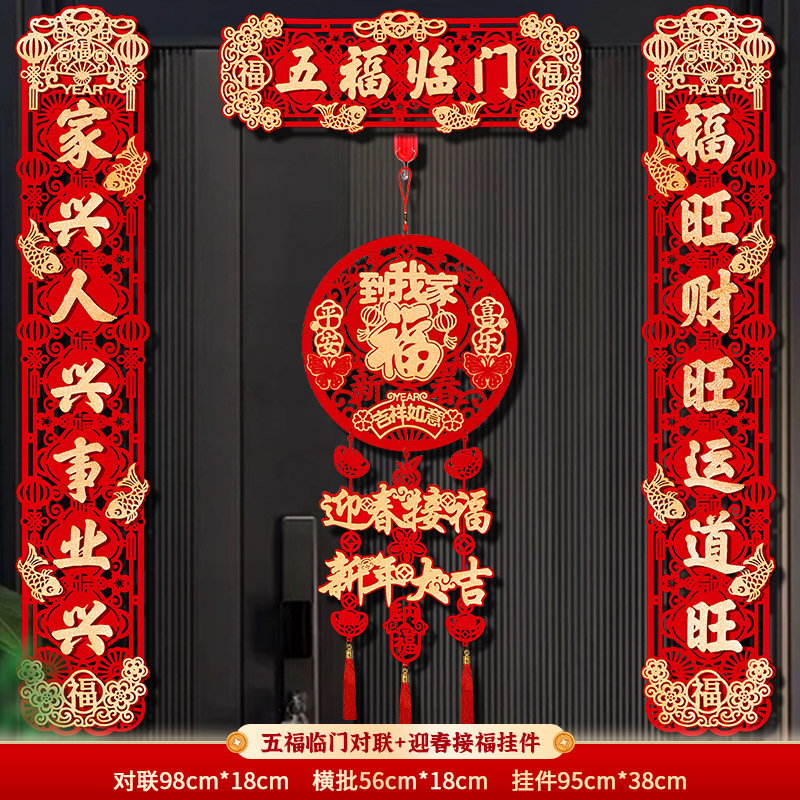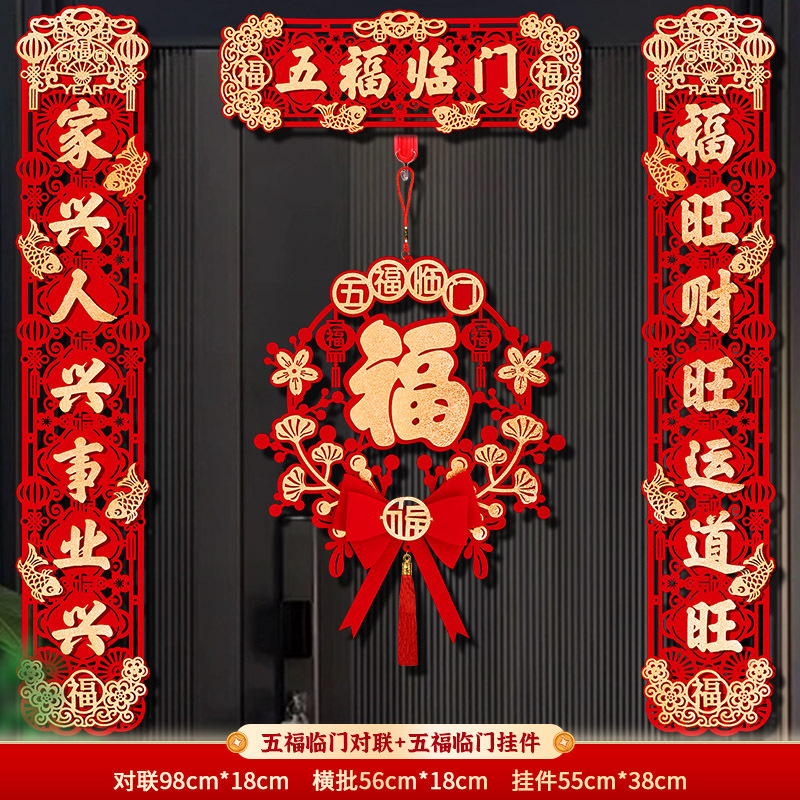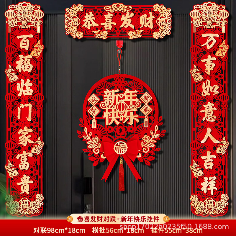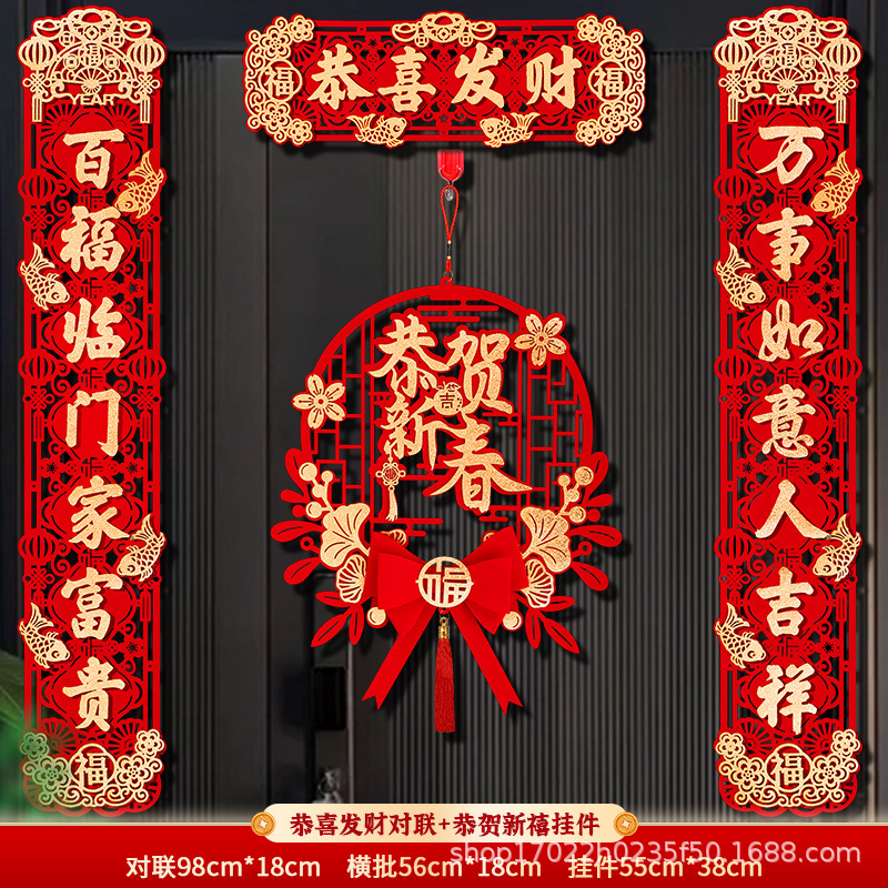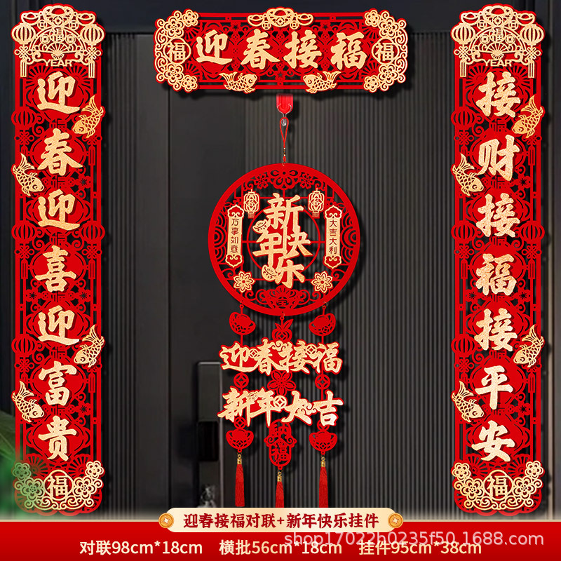 马年对联新年春联2026新款磁吸过年入户门福字贴绒布对联套装批发