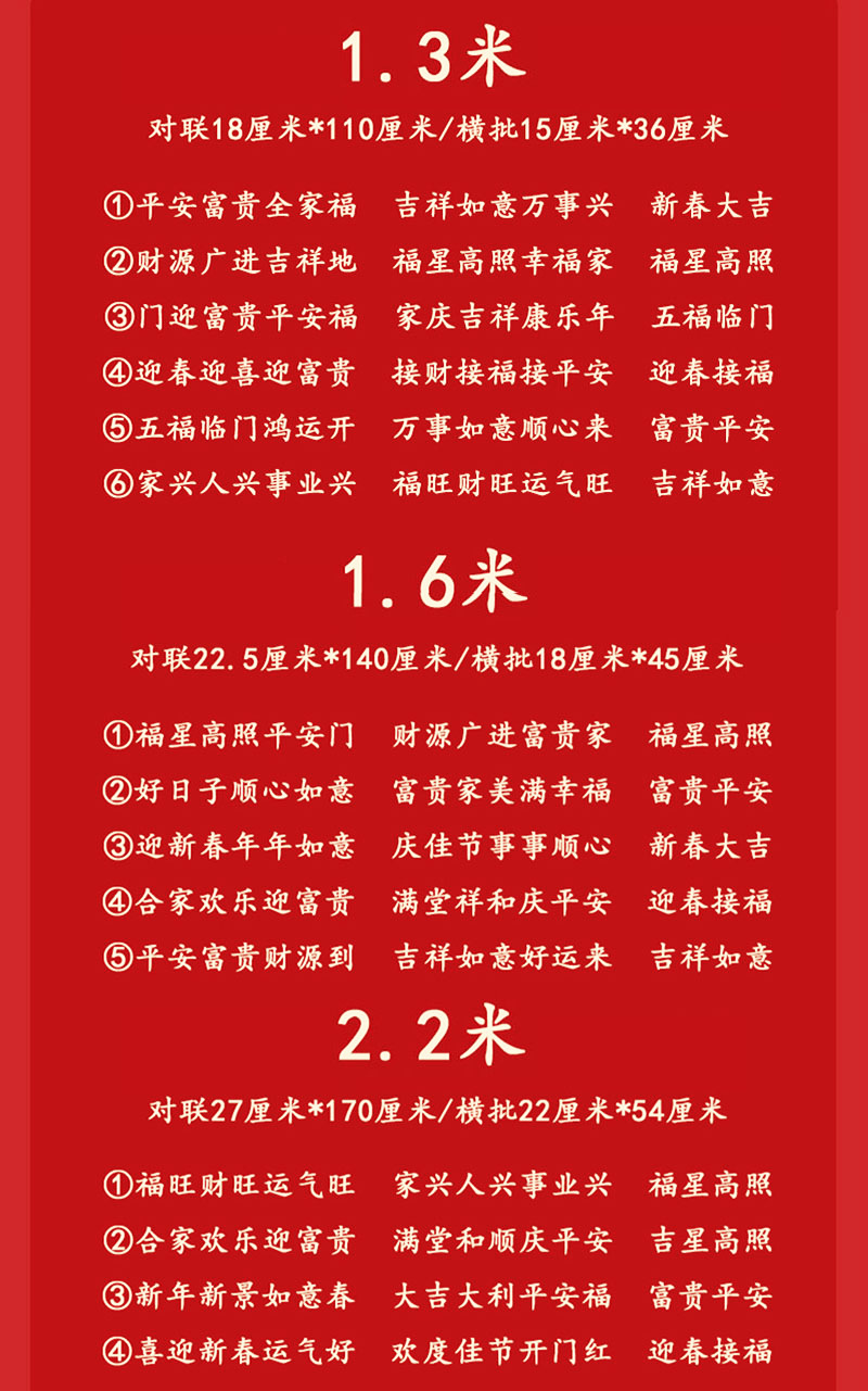 | 1.3#【门迎富贵平安福,家庆吉祥康乐年】 | USD $0.67 | 20000 pair available |