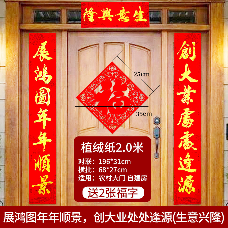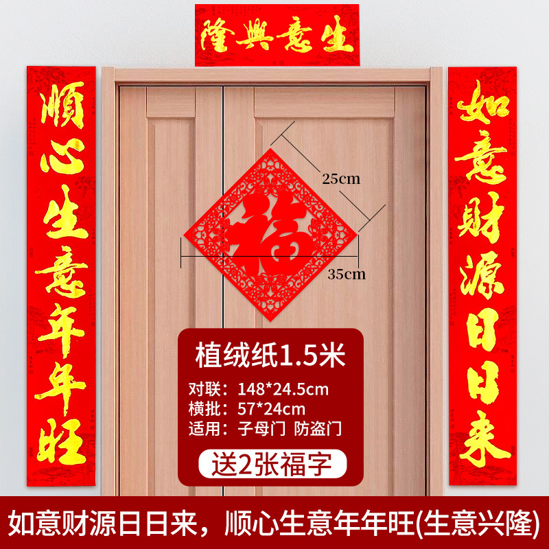 公司开业大吉生意兴隆对联商场店铺饭店新店开张植绒布门联装饰品