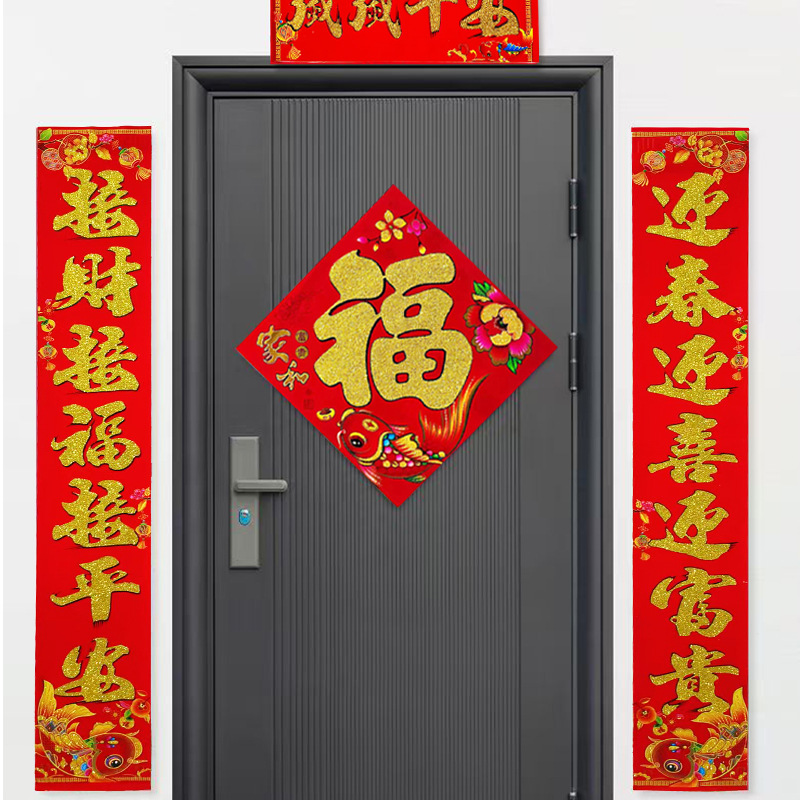 春联2026新款马年黑粉对联春节家用植绒过年福字大门装饰新年门联
