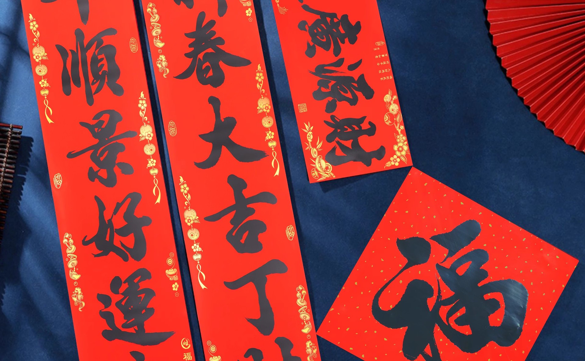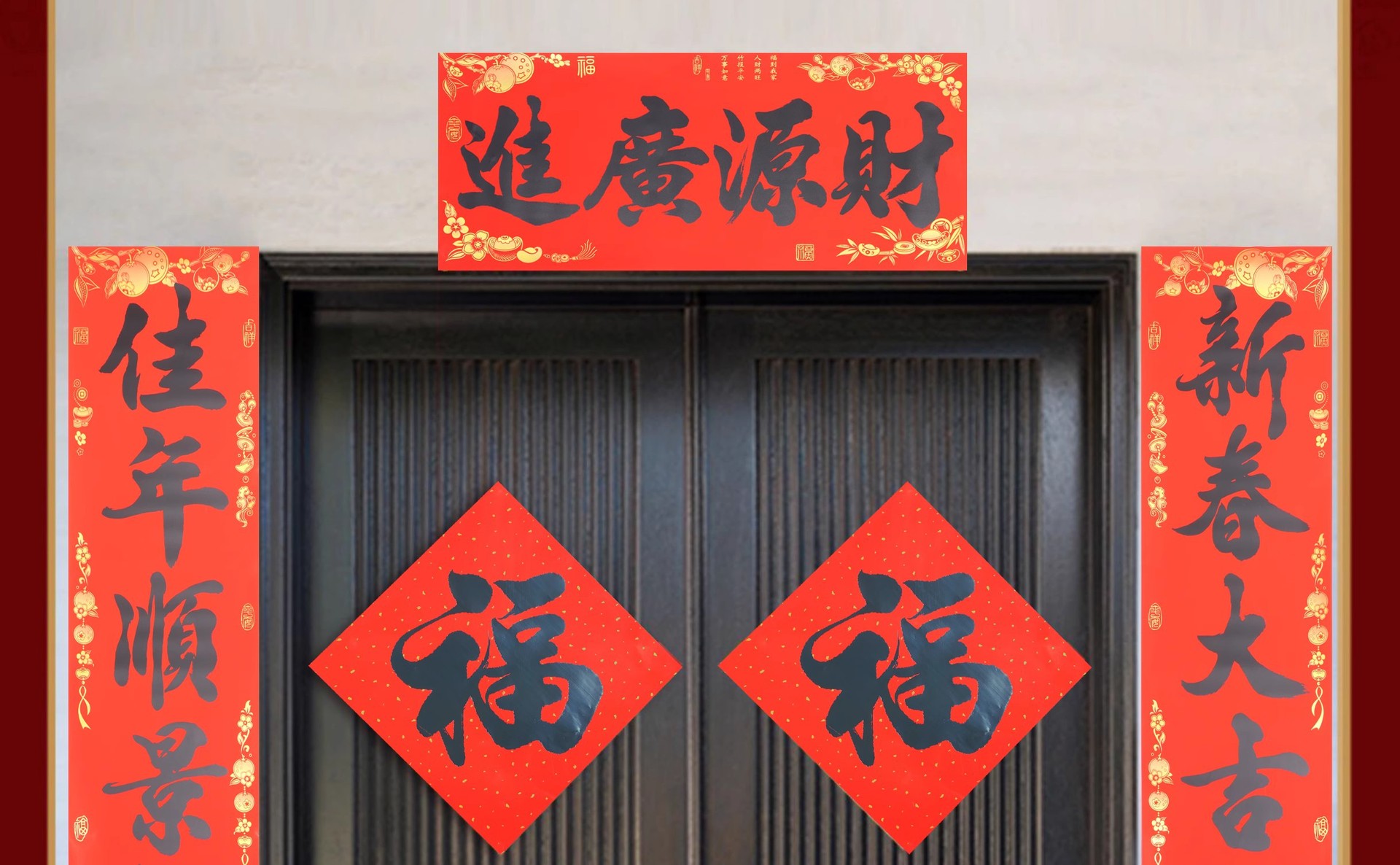 顺风湾对联新年带胶自贴名家书法光面黑字春联大门装饰喜庆