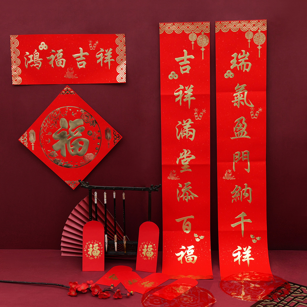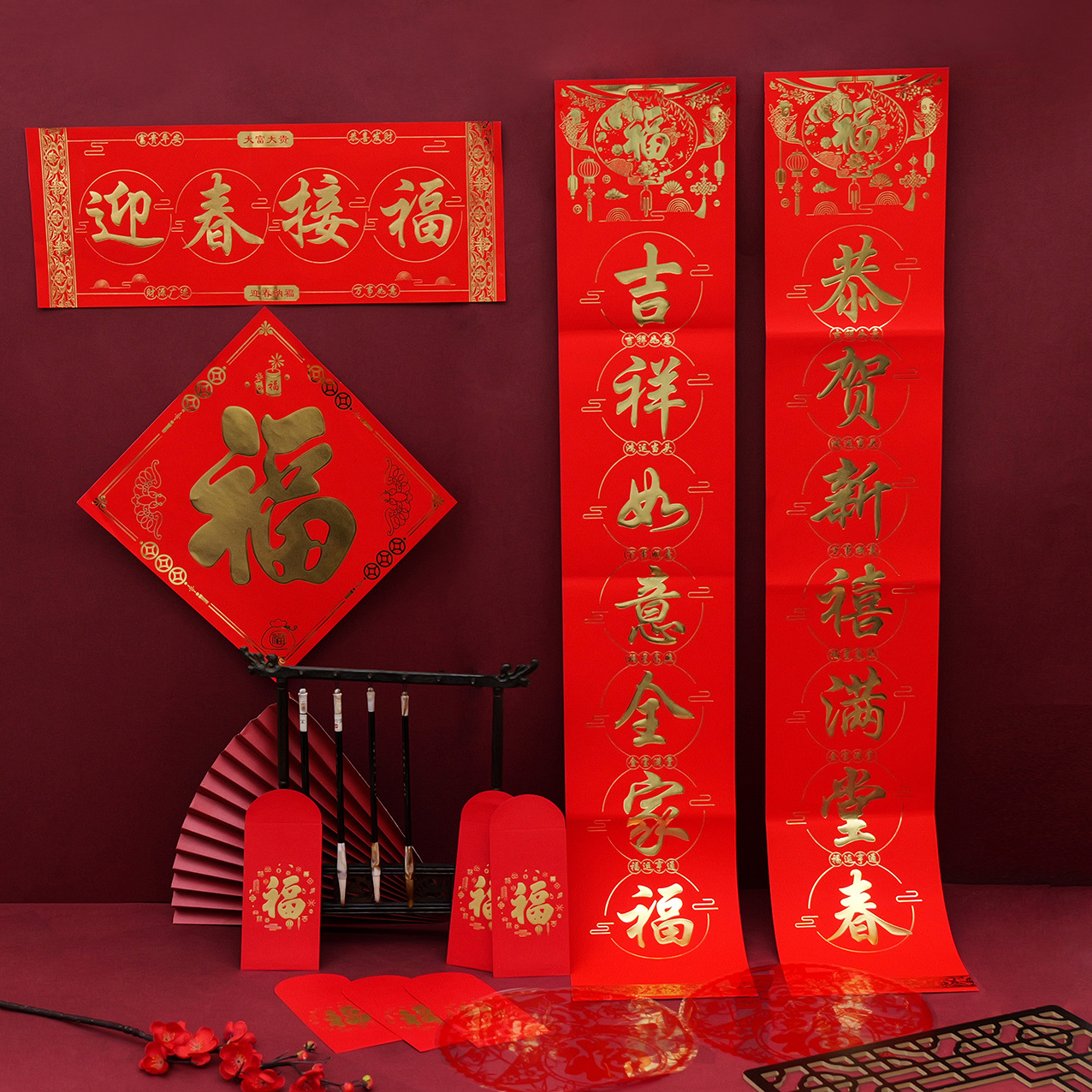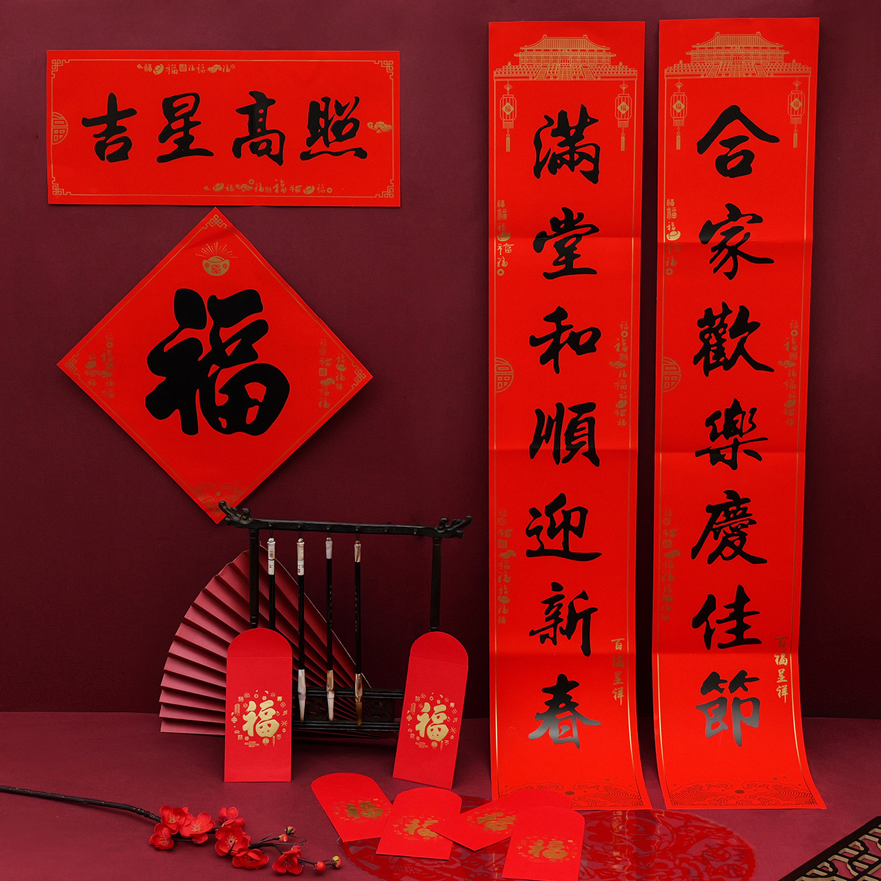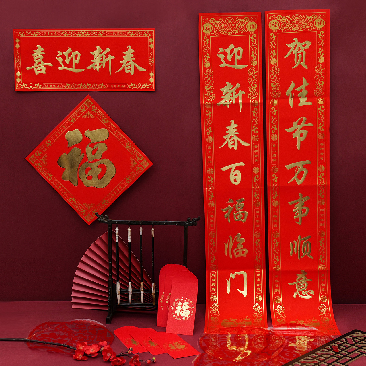 现货新年对联丝绸对联福字套装春联礼盒对联套装定制大礼包加logo