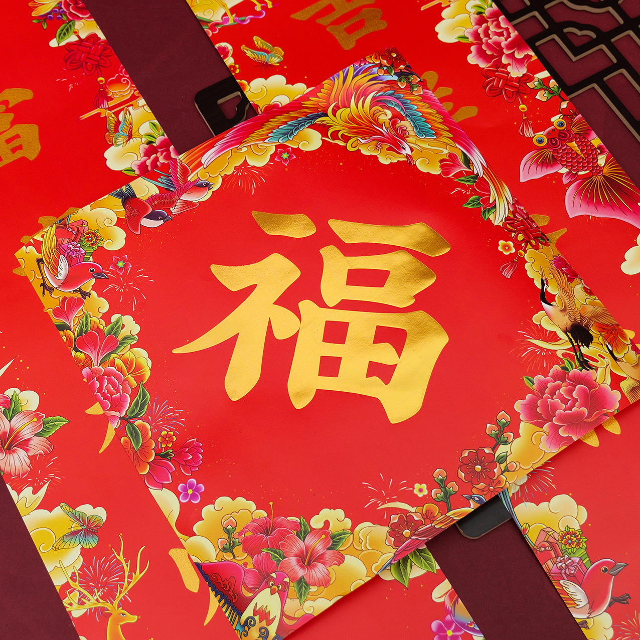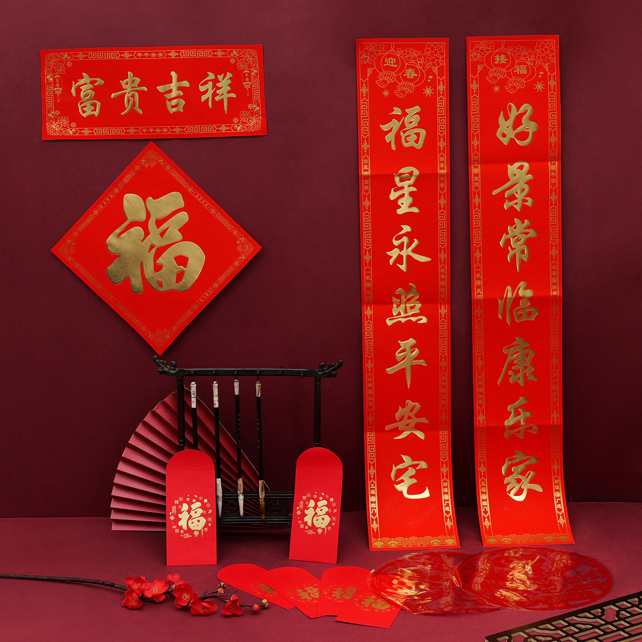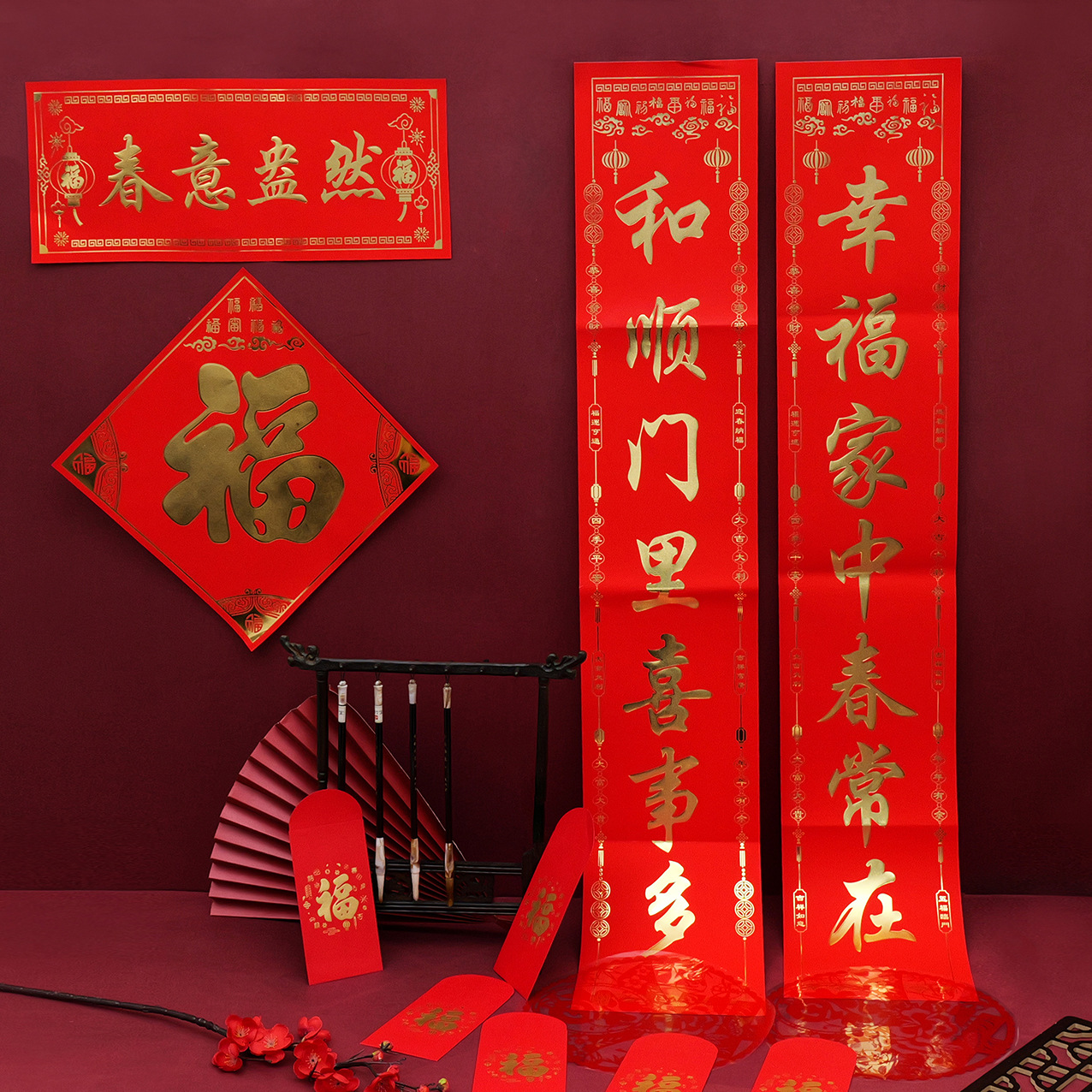 现货新年对联丝绸对联福字套装春联礼盒对联套装定制大礼包加logo