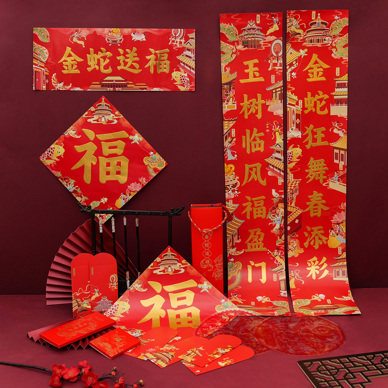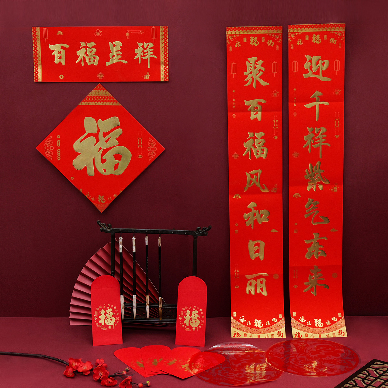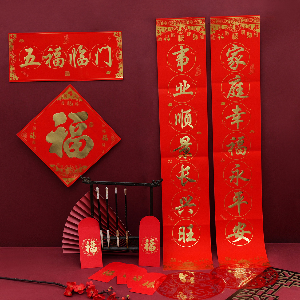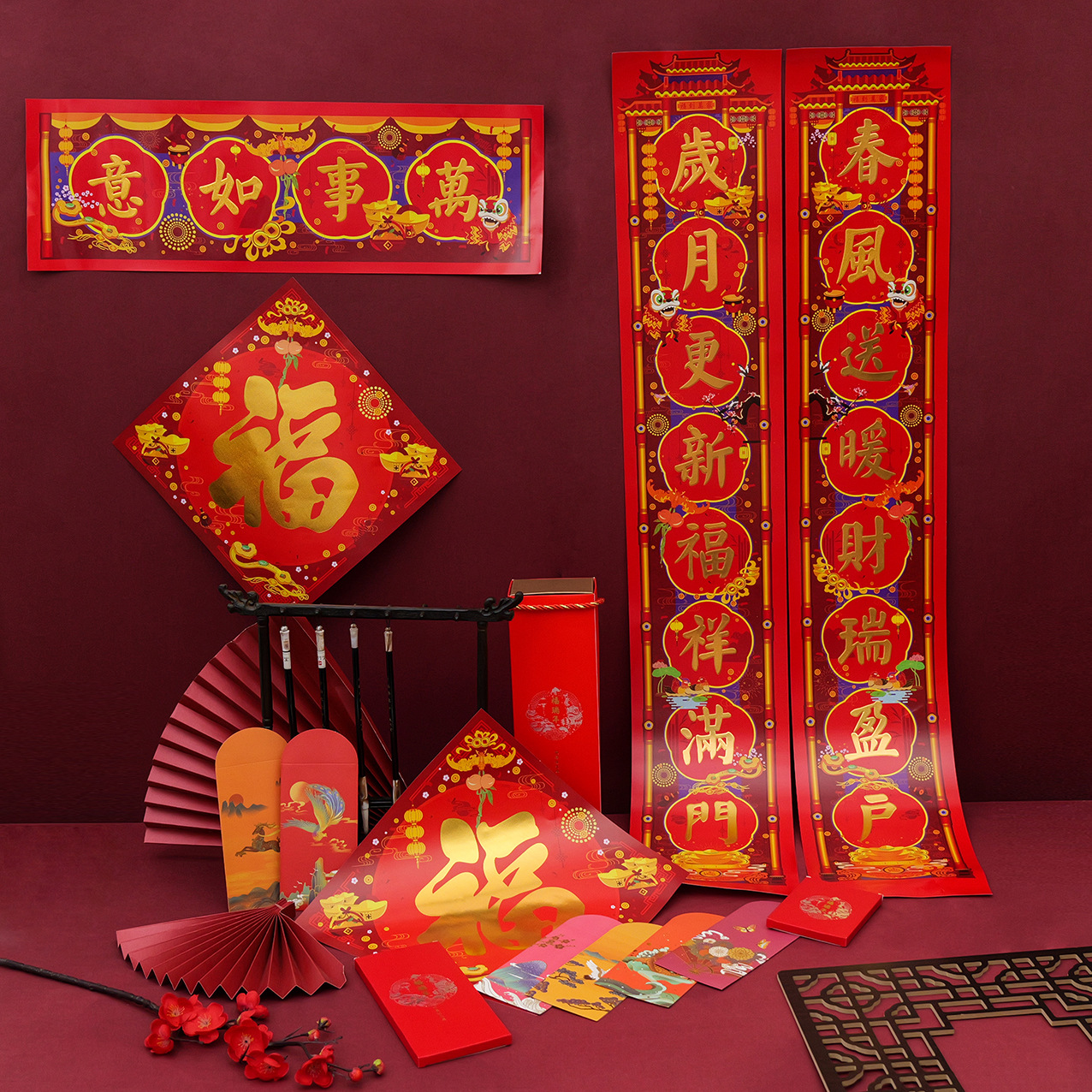 现货新年对联丝绸对联福字套装春联礼盒对联套装定制大礼包加logo