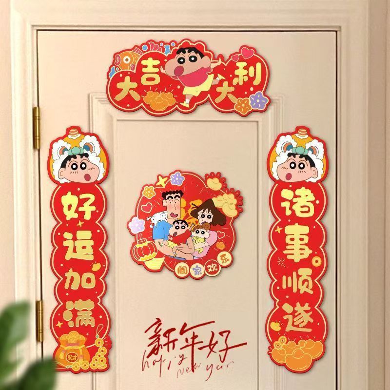 2025蜡笔小新对联新春春节过年装饰创意房门联对联福字字贴新款