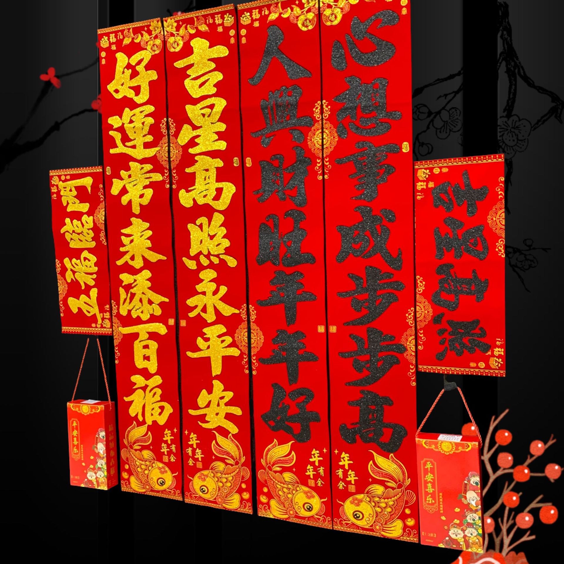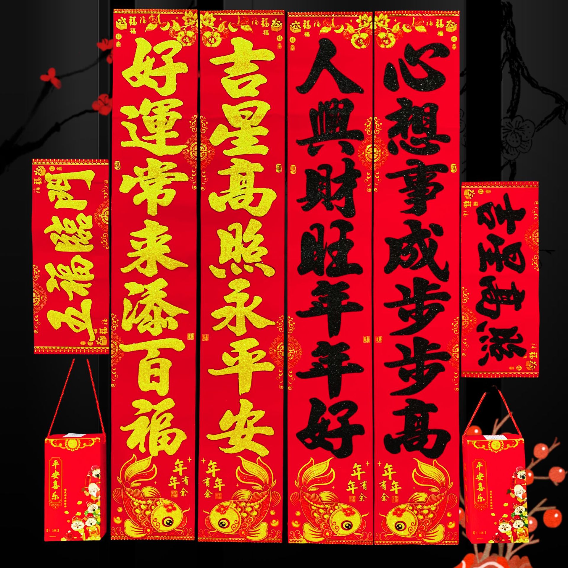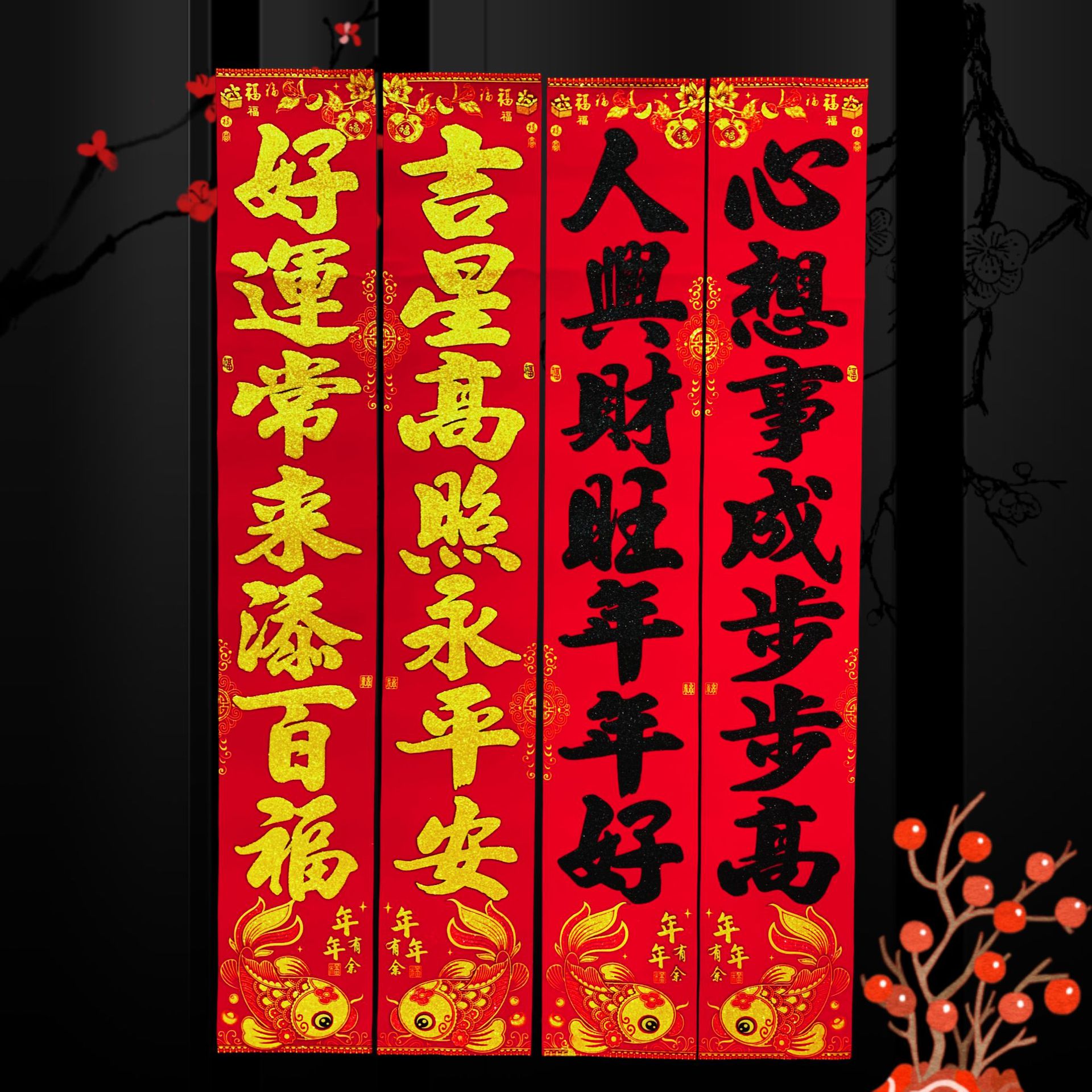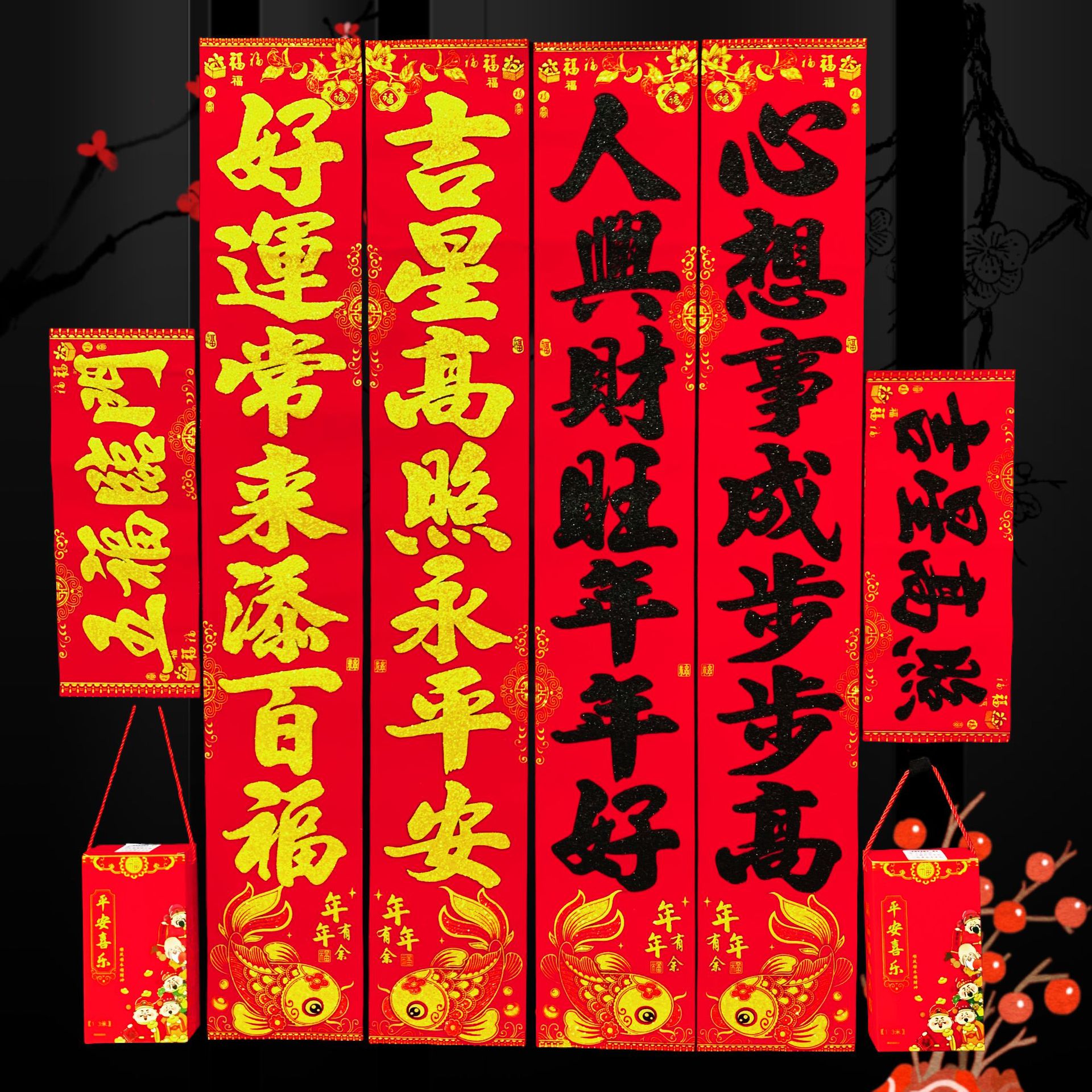 发财鱼发泡绒布对联全背胶自粘盒装春节用品绒布对联撕不破春联