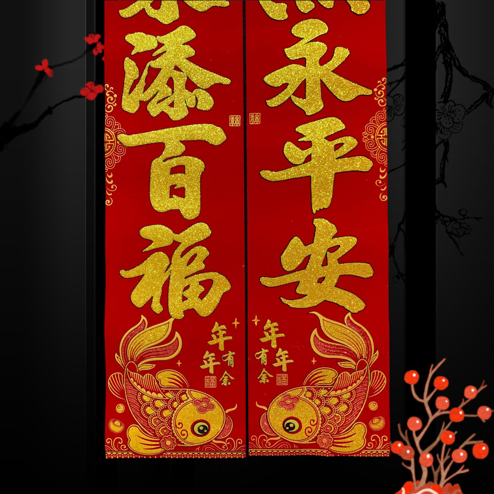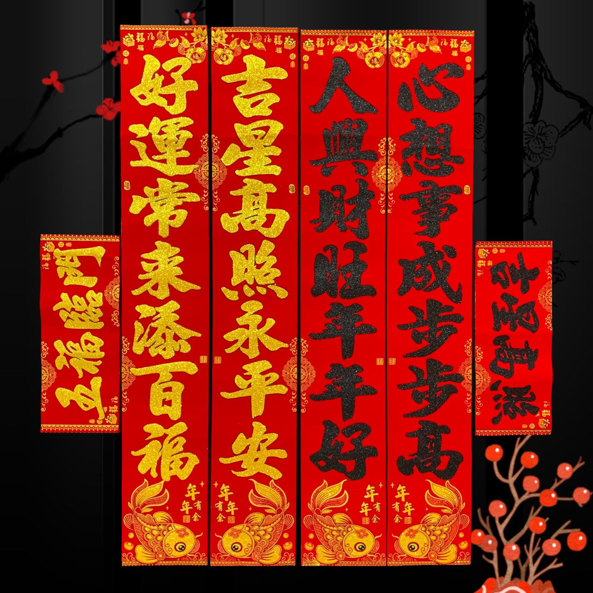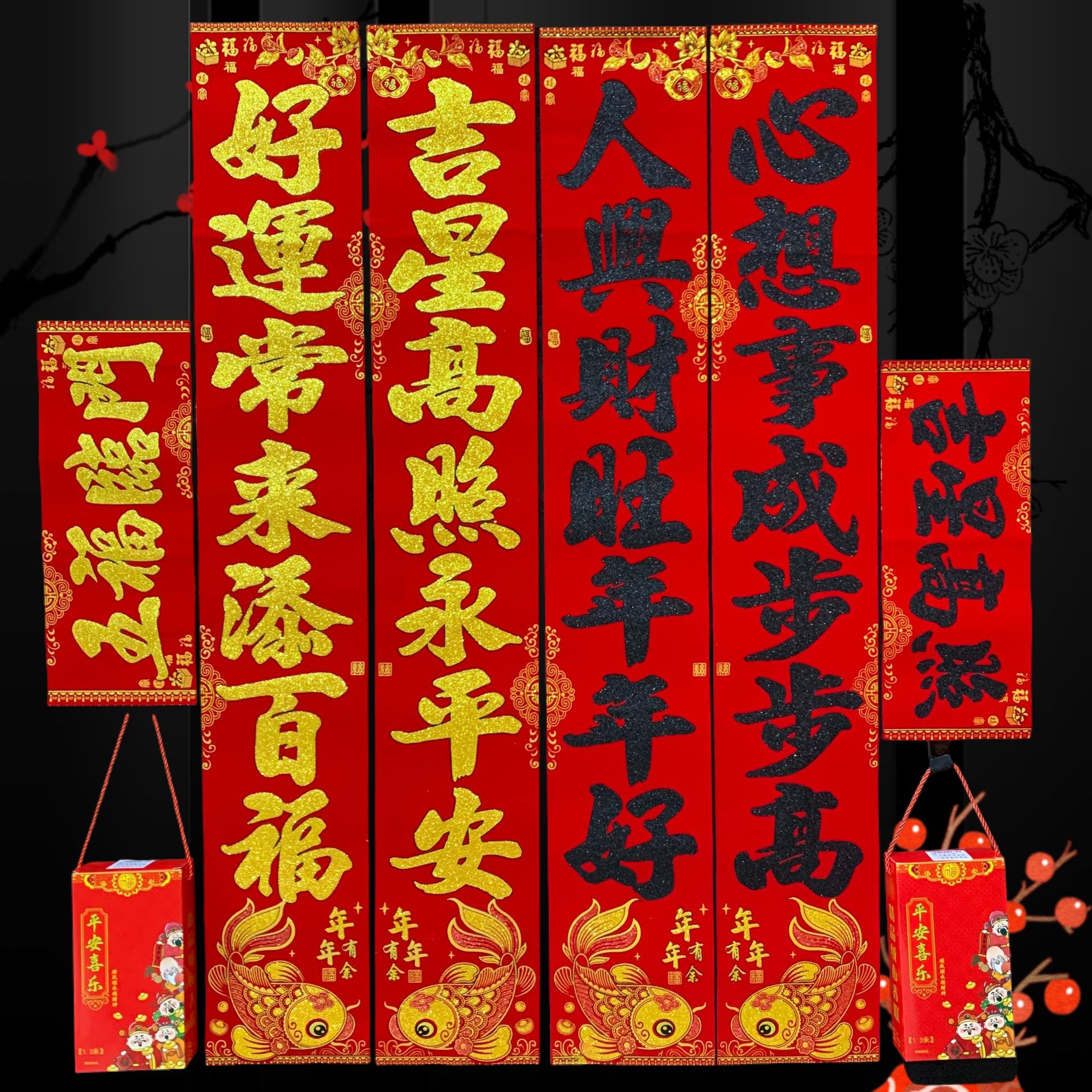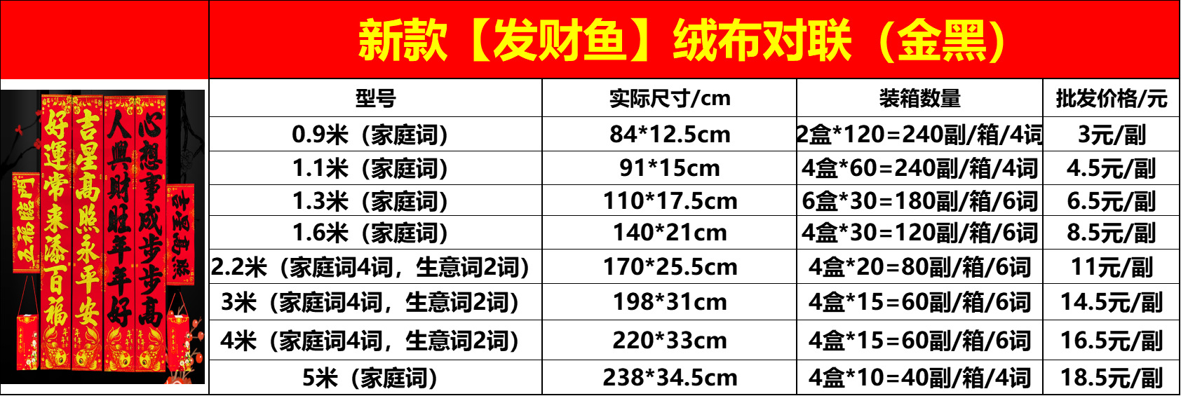 发财鱼发泡绒布对联全背胶自粘盒装春节用品绒布对联撕不破春联