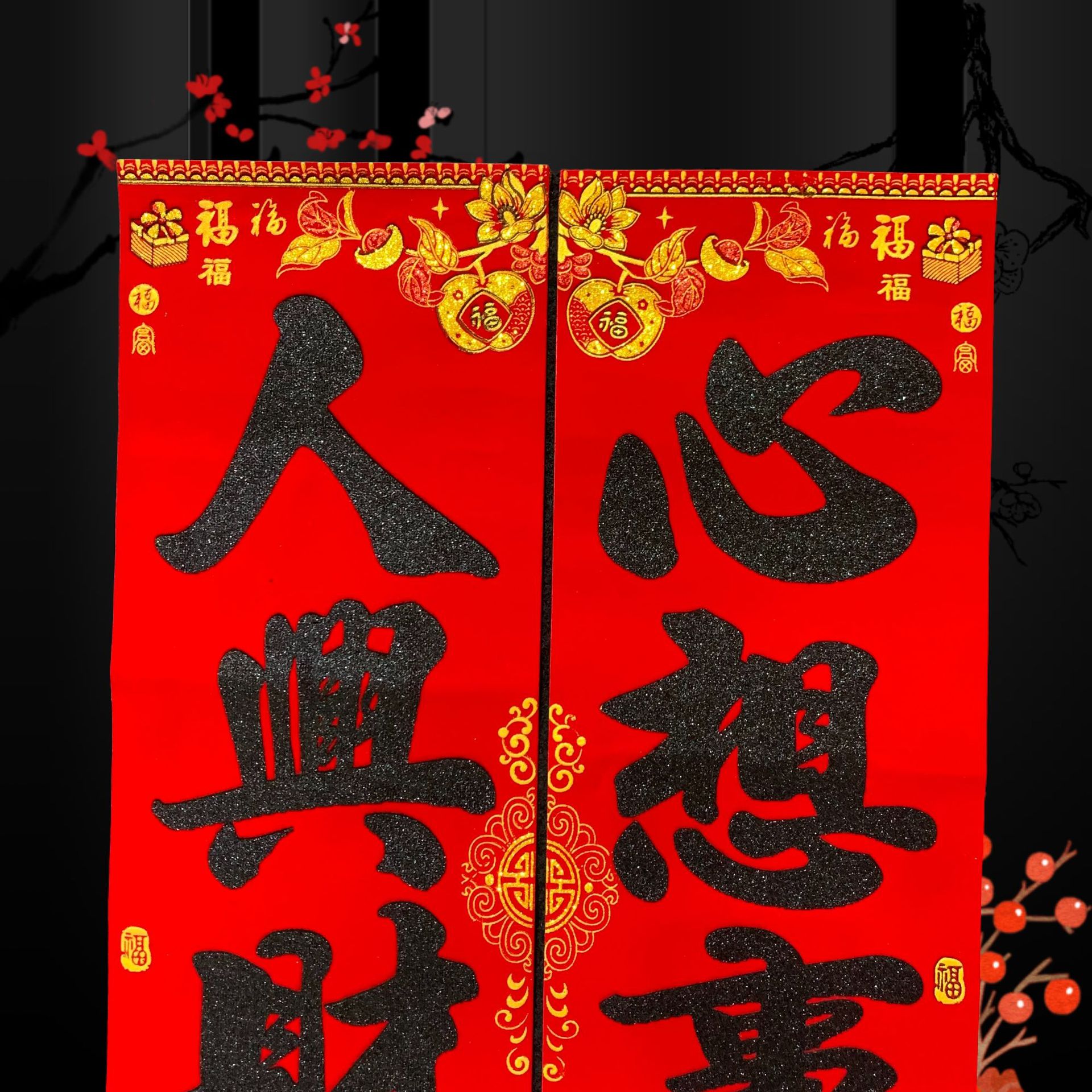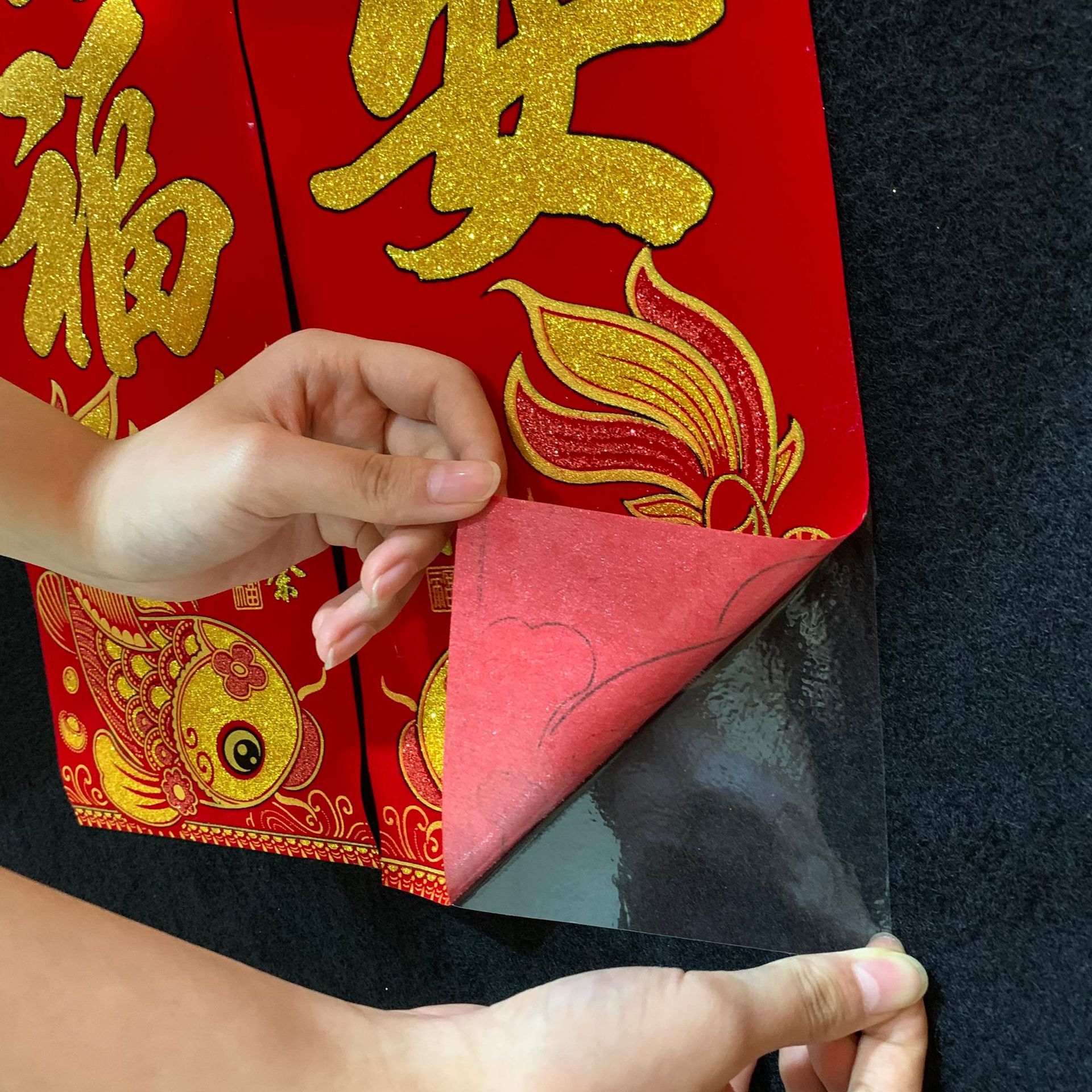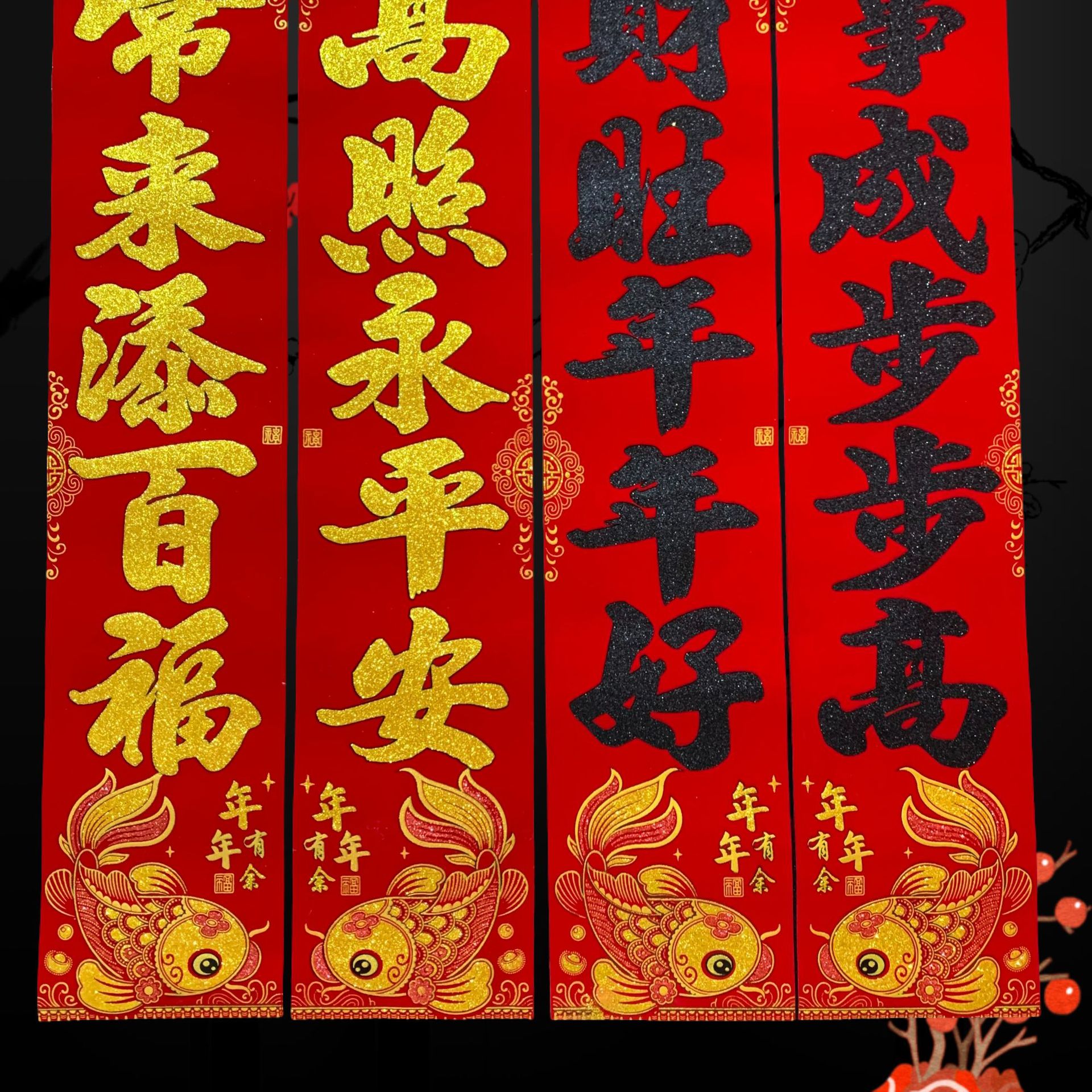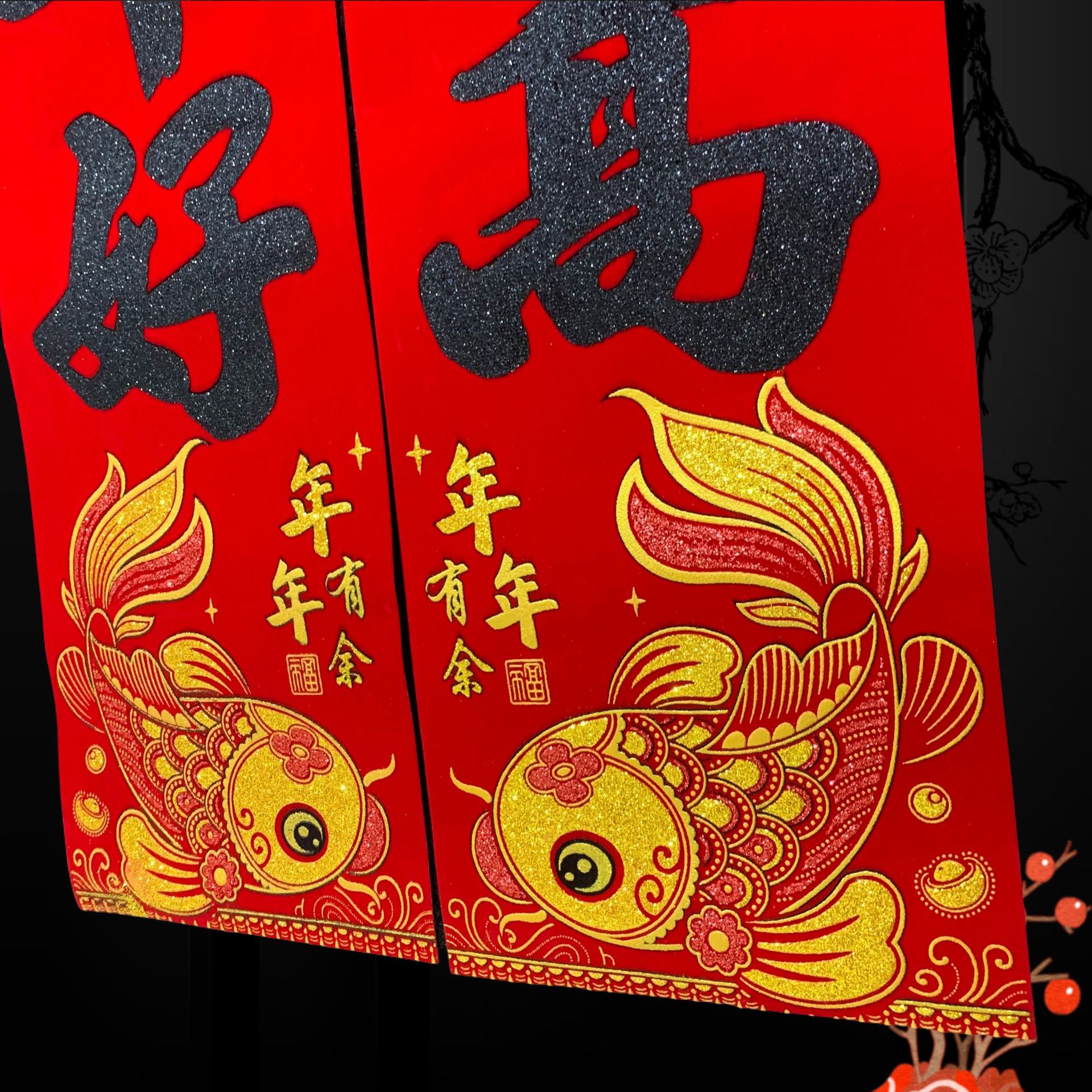 发财鱼发泡绒布对联全背胶自粘盒装春节用品绒布对联撕不破春联