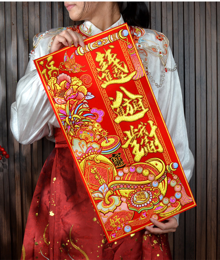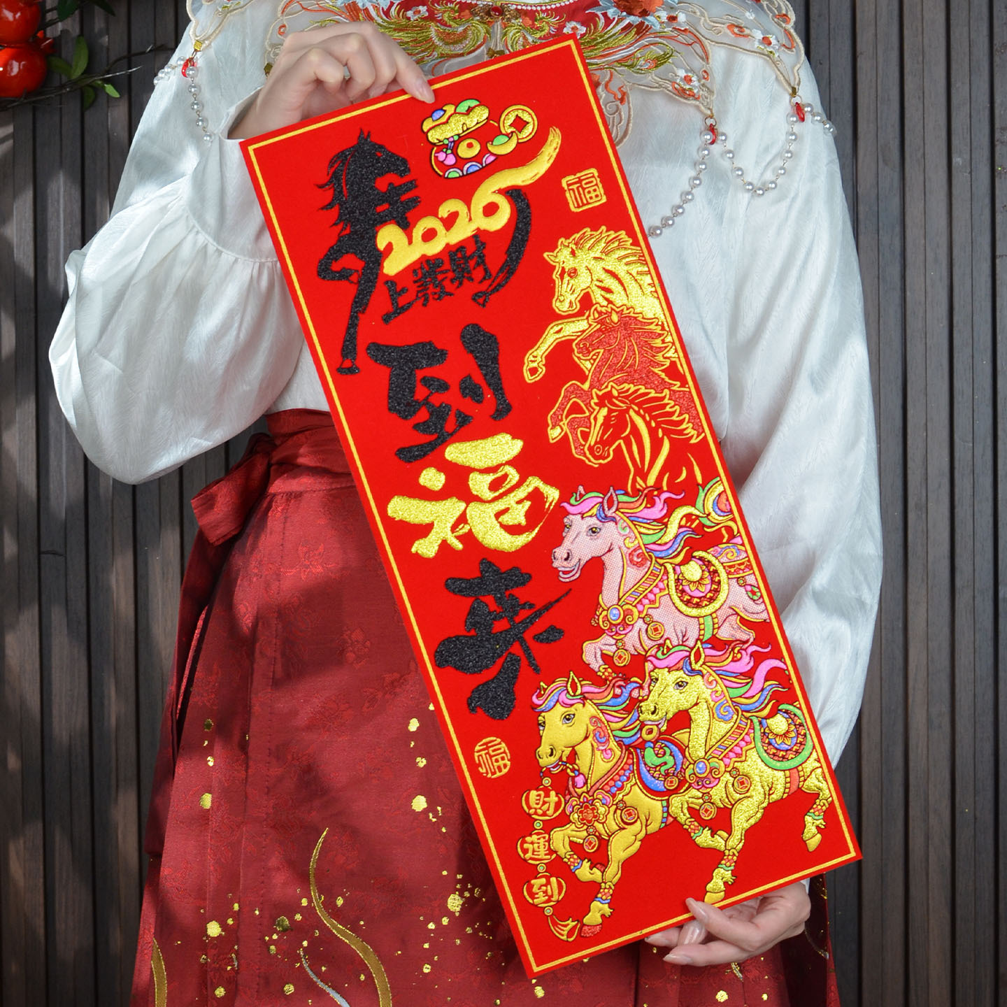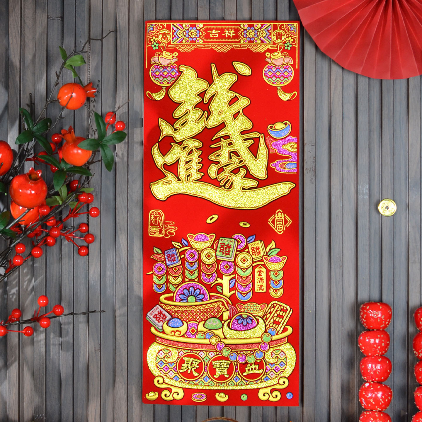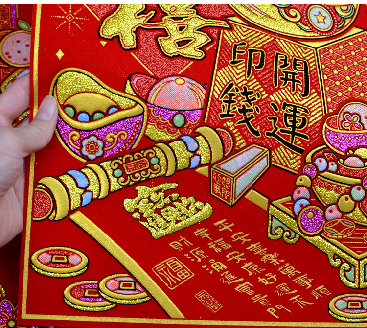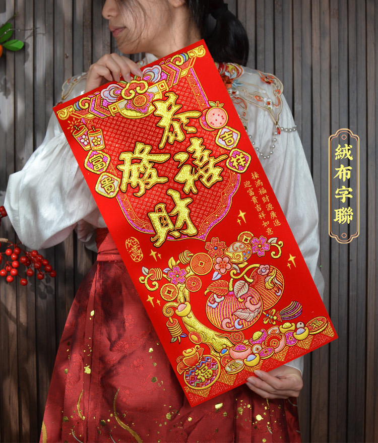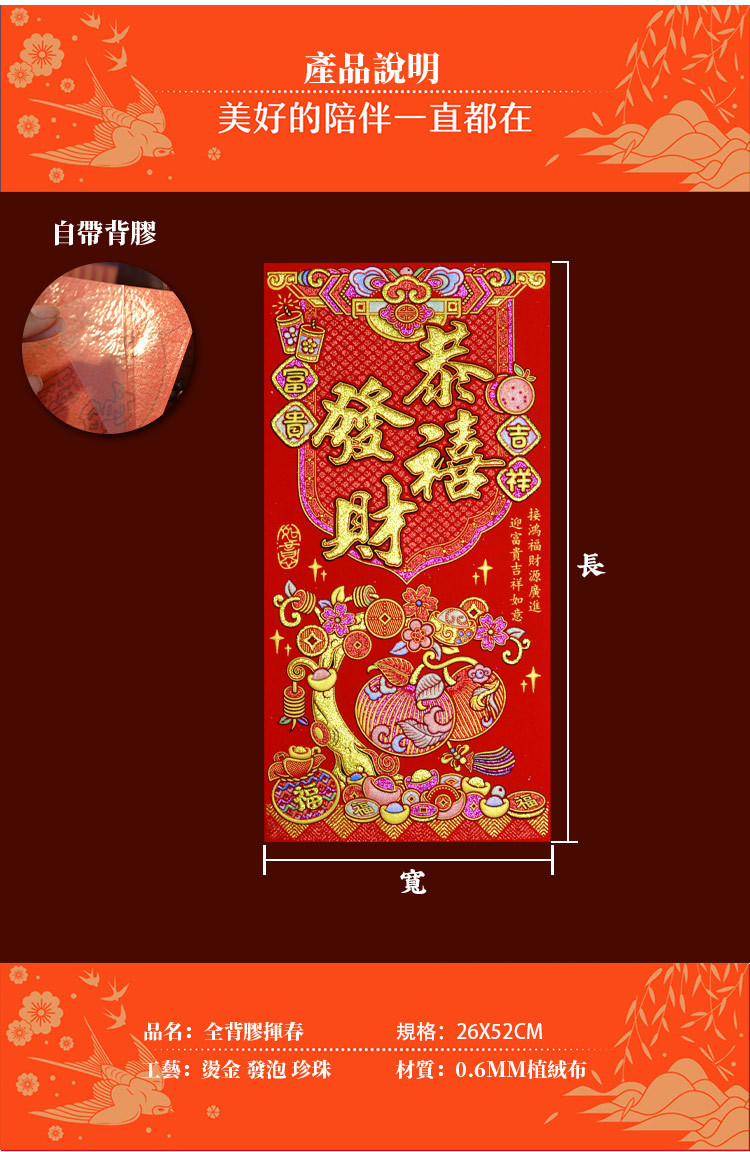 台湾版春节装饰繁体字门联恭喜发财挥春绒布自粘彩色烫金装饰品