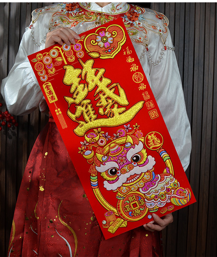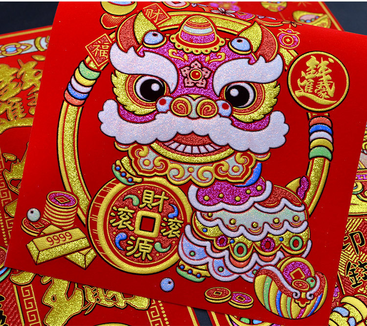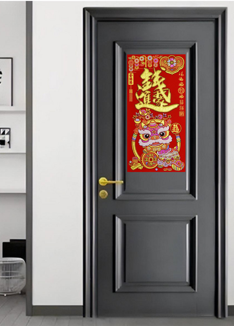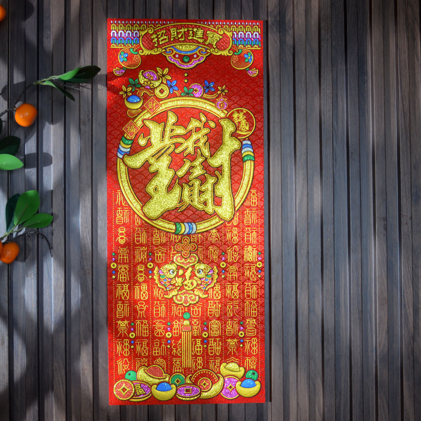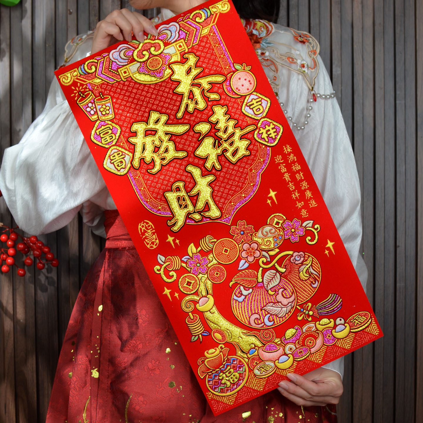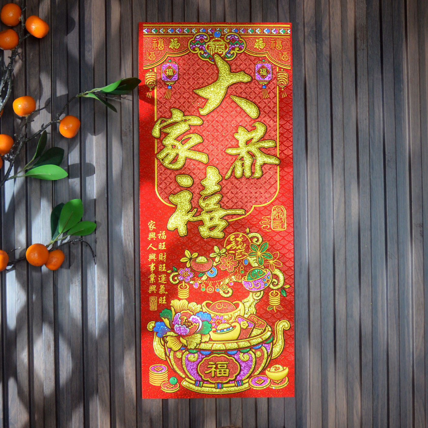台湾版春节装饰繁体字门联恭喜发财挥春绒布自粘彩色烫金装饰品