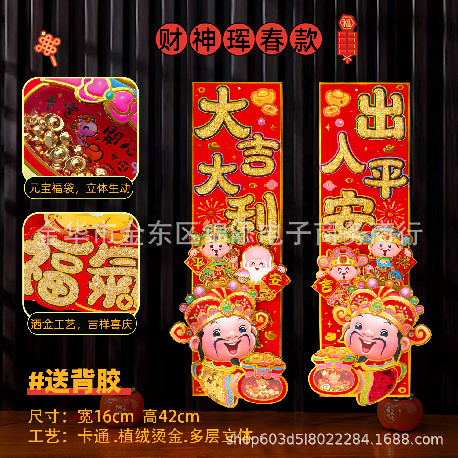 2026马年财神小对联卡通生肖挥春门贴四字挥春横批春节立体春联贴