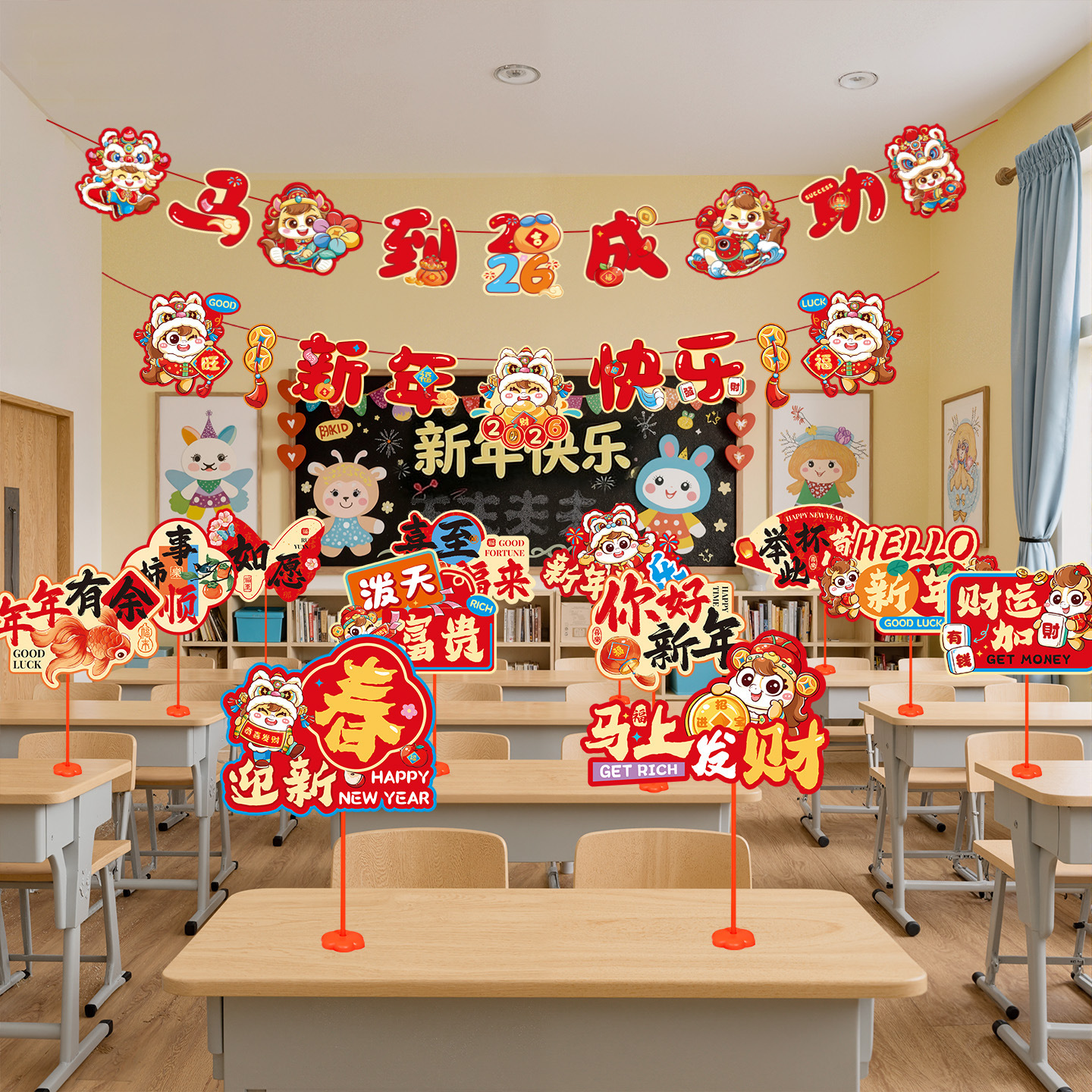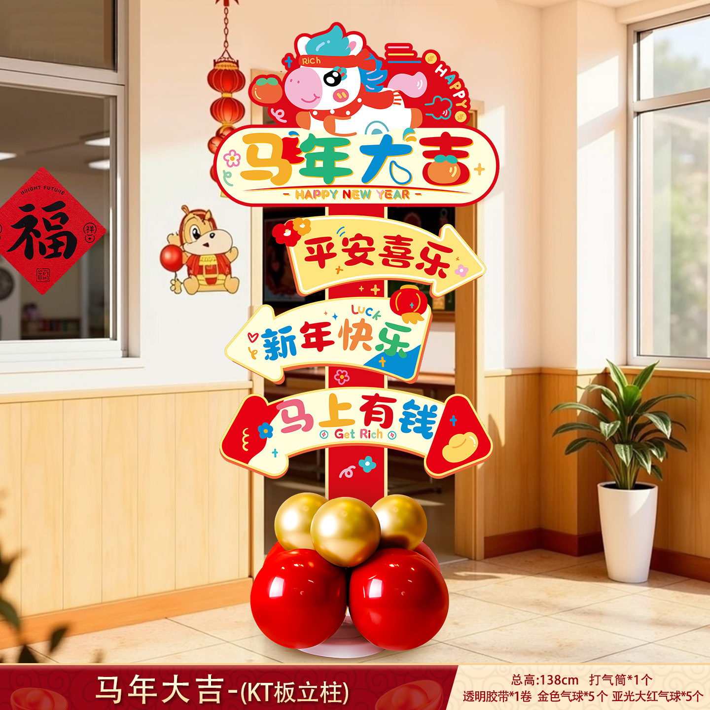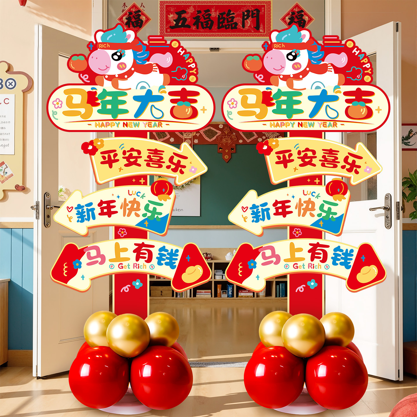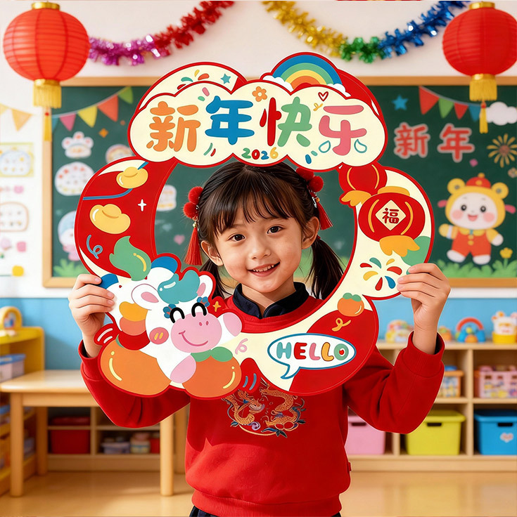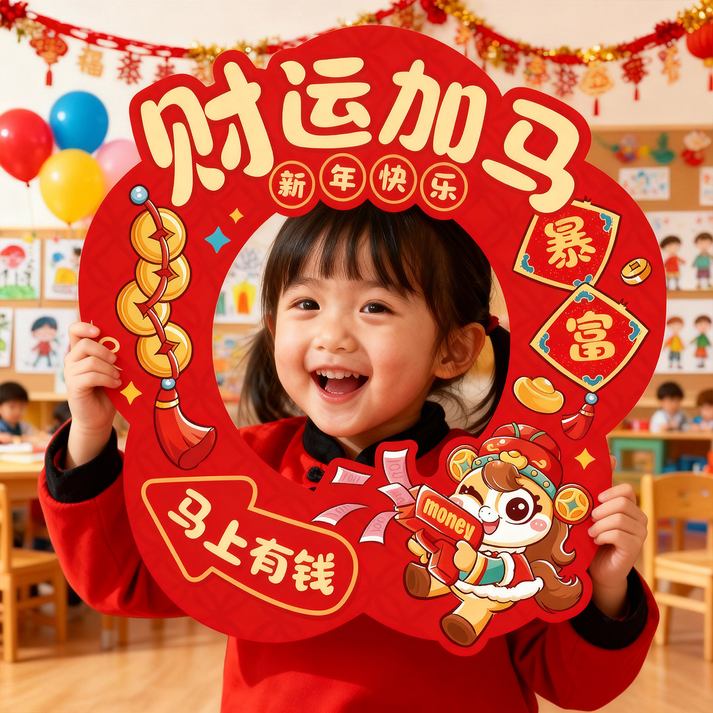 2026新年元旦幼儿园新年装饰马年手举拍牌照相框路引kt板氛围道具