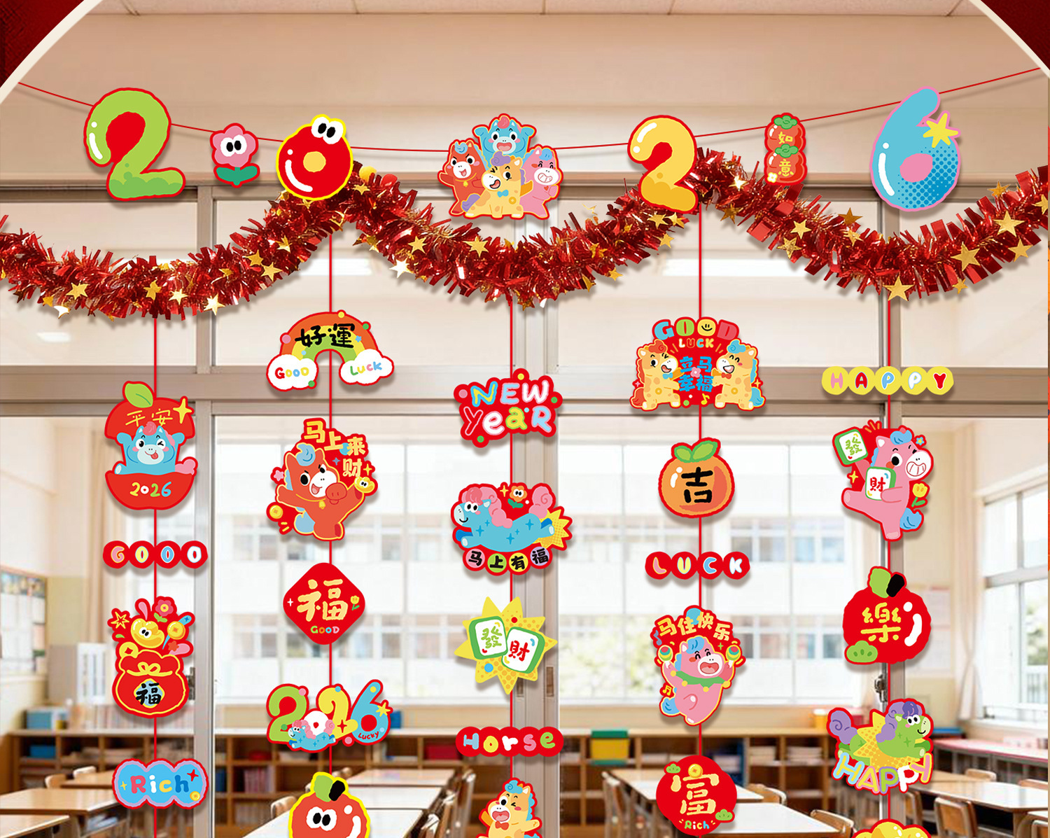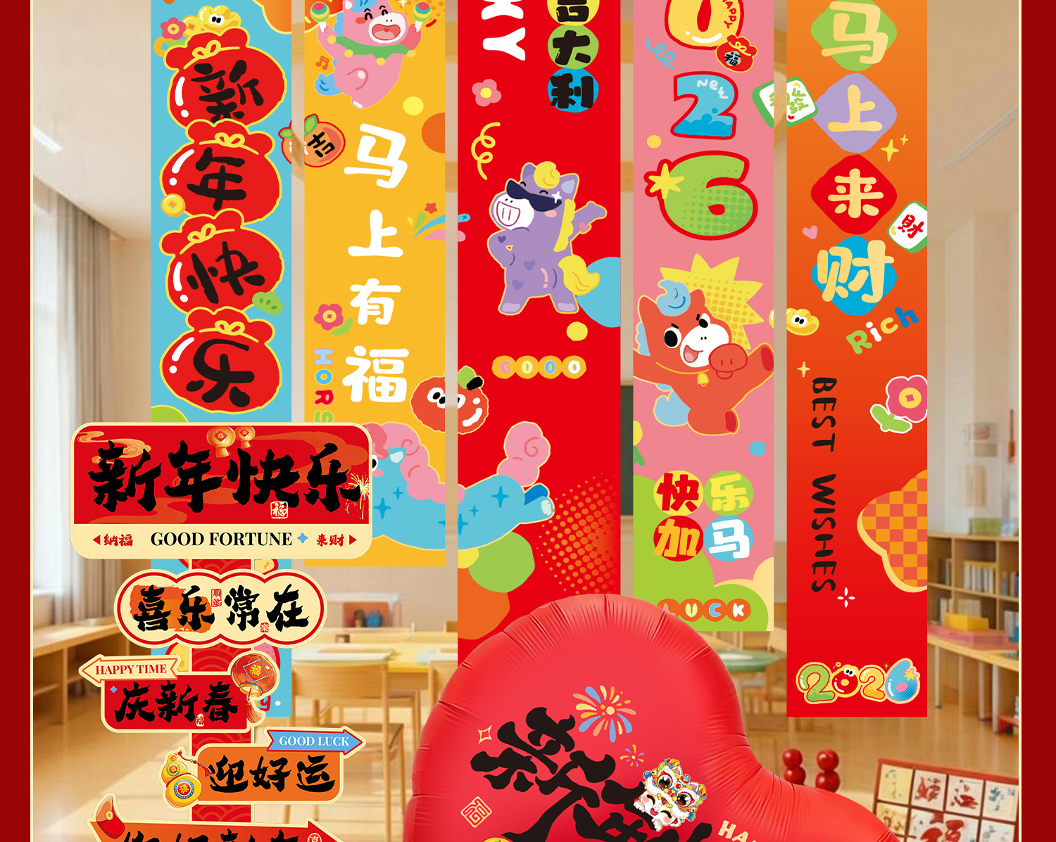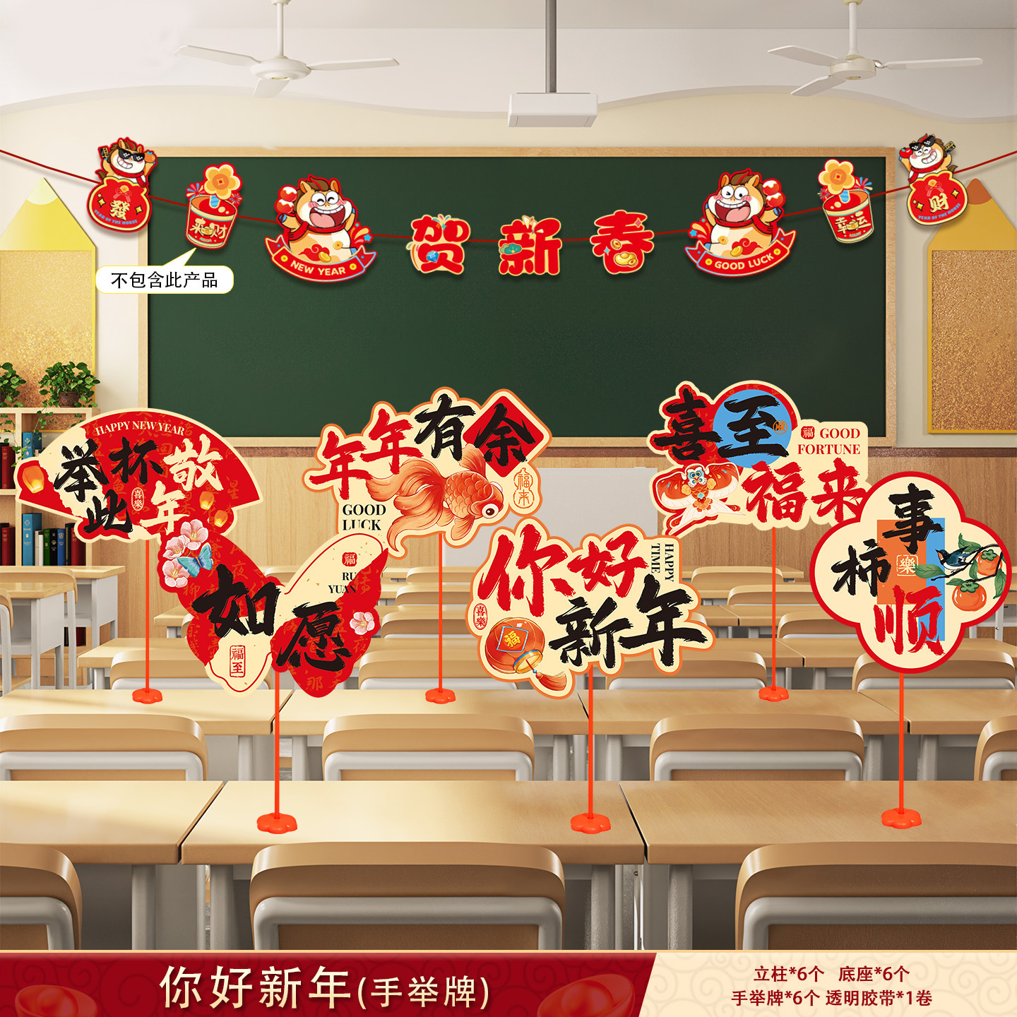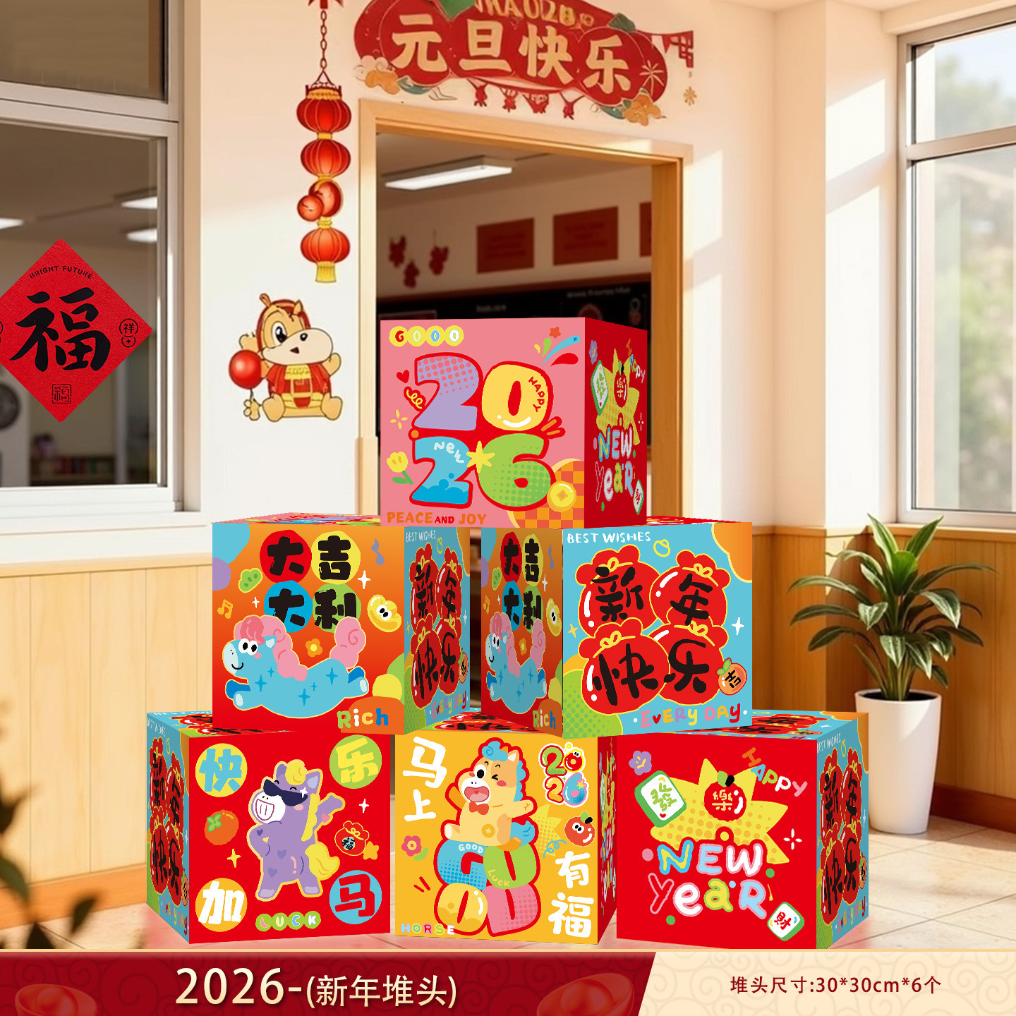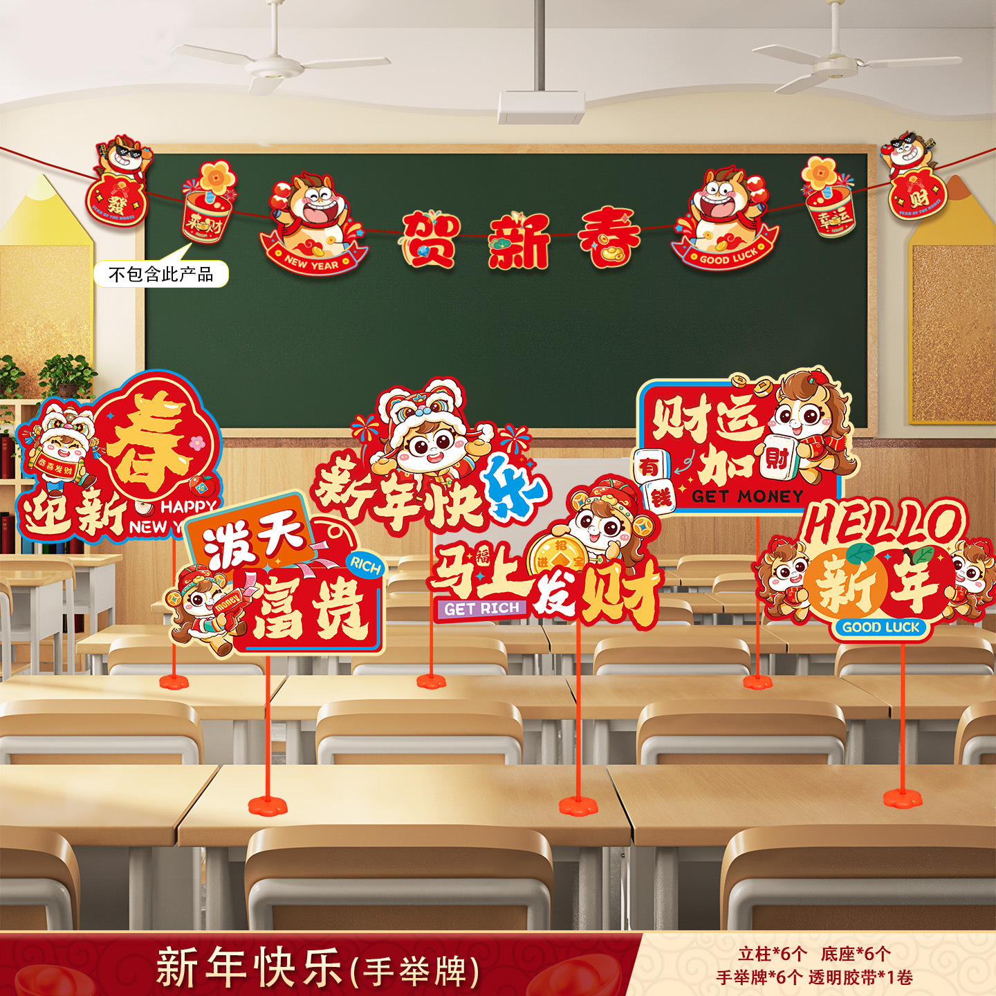2026新年元旦幼儿园新年装饰马年手举拍牌照相框路引kt板氛围道具