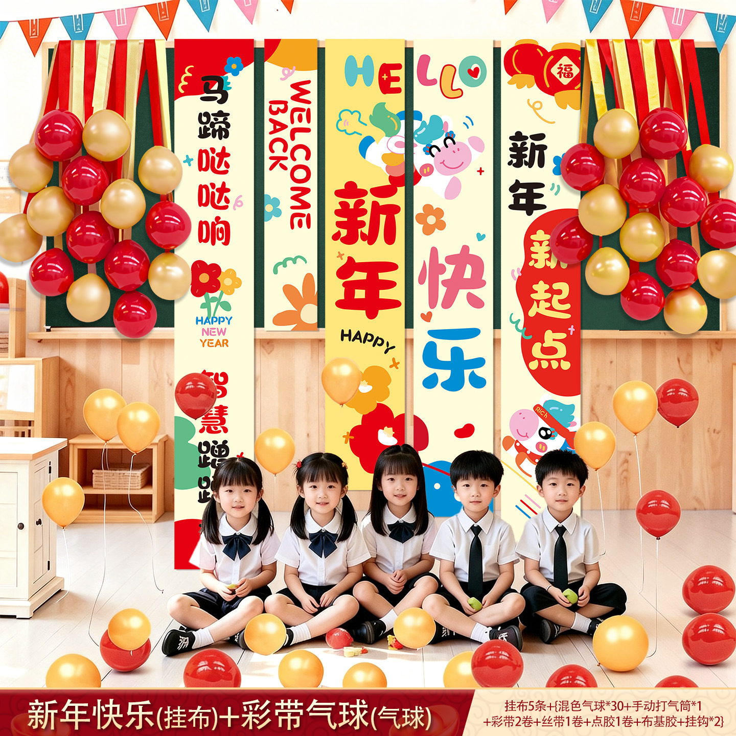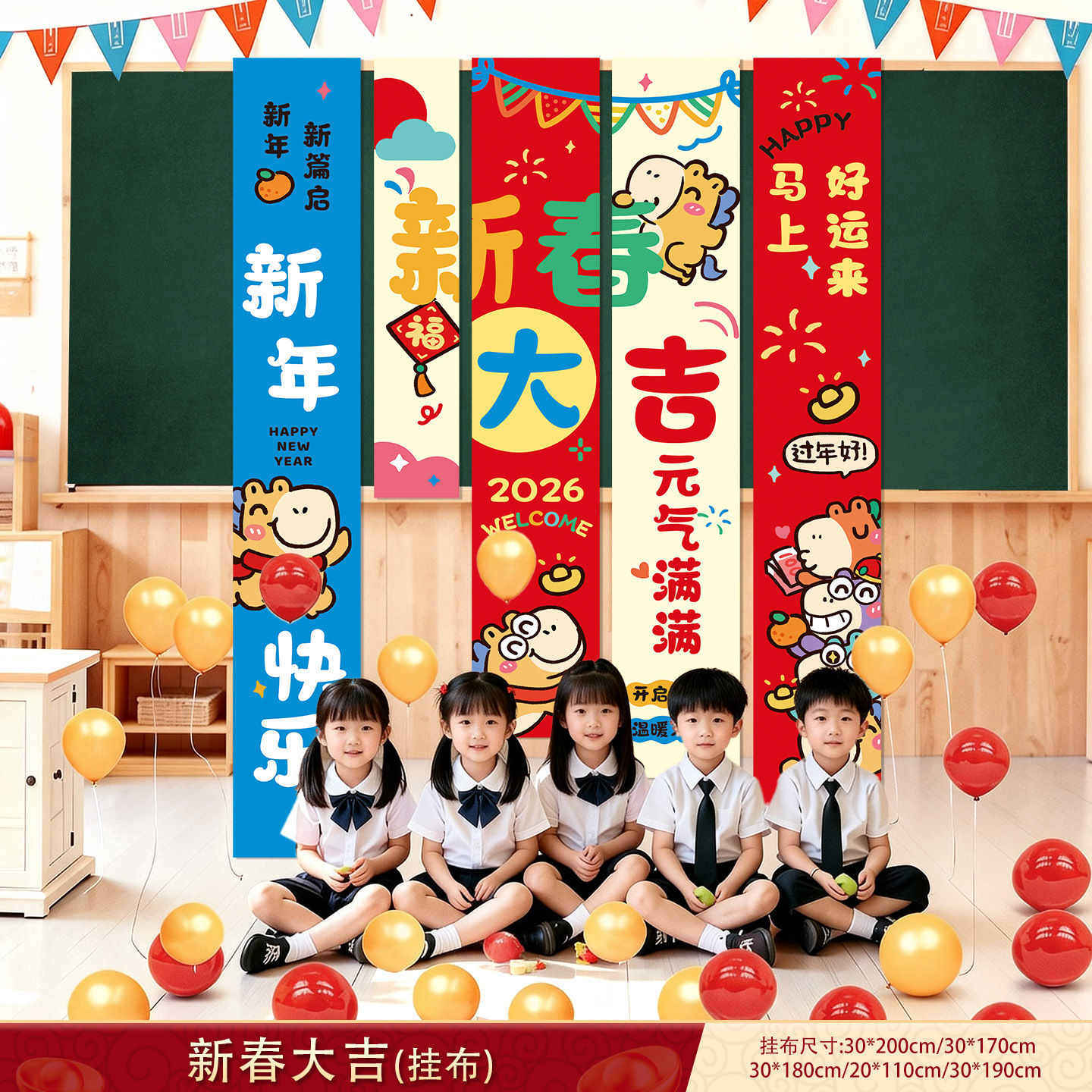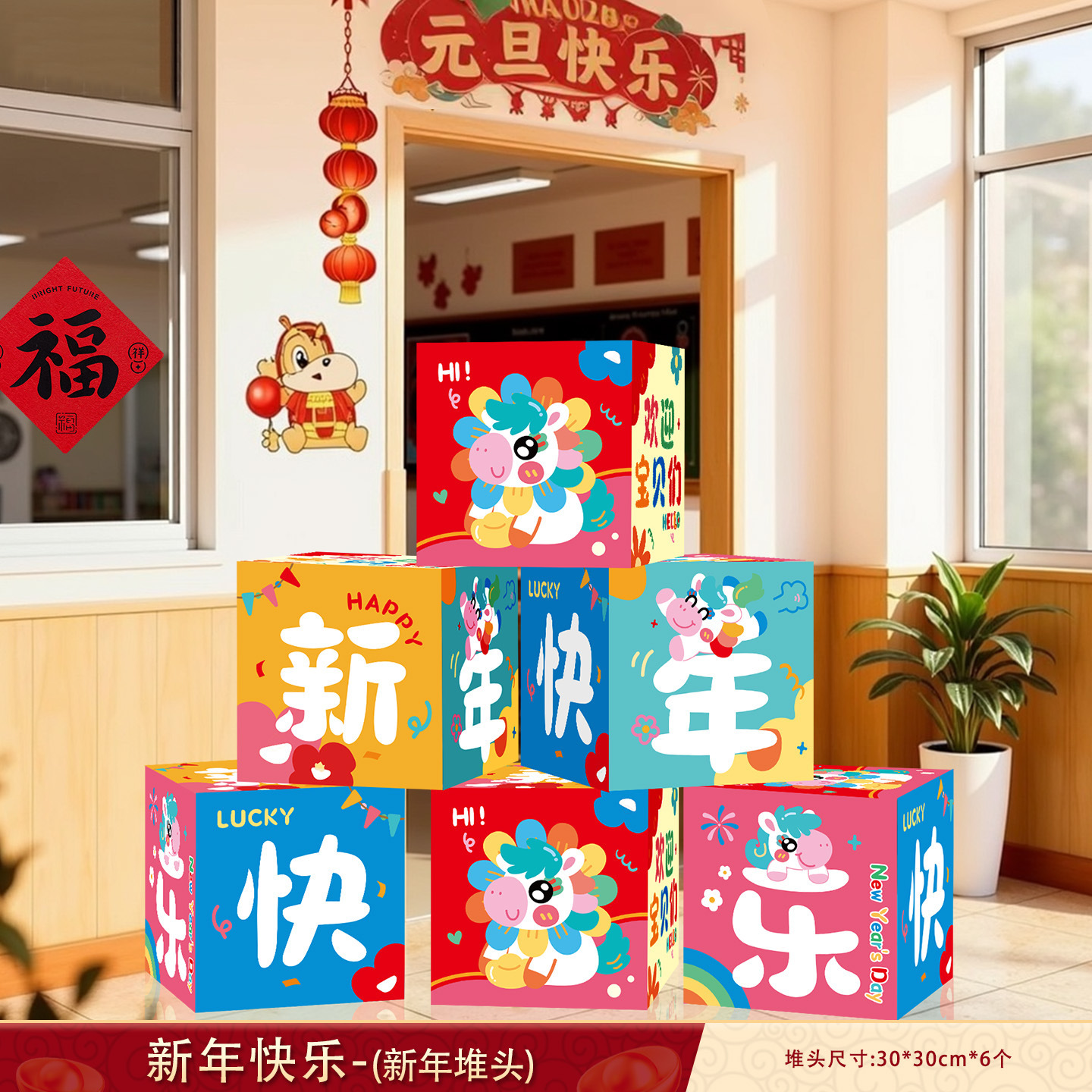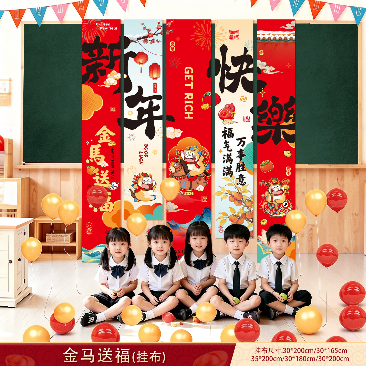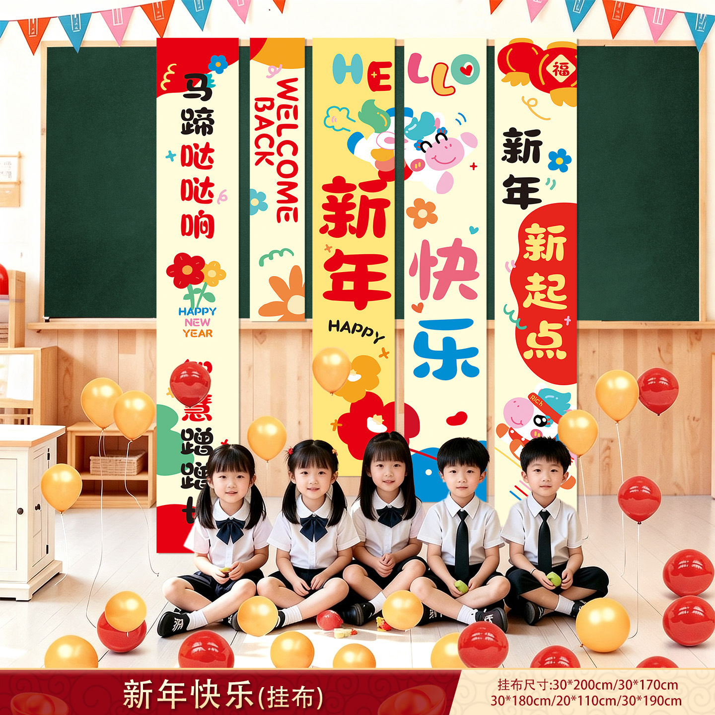 2026新年元旦幼儿园新年装饰马年手举拍牌照相框路引kt板氛围道具