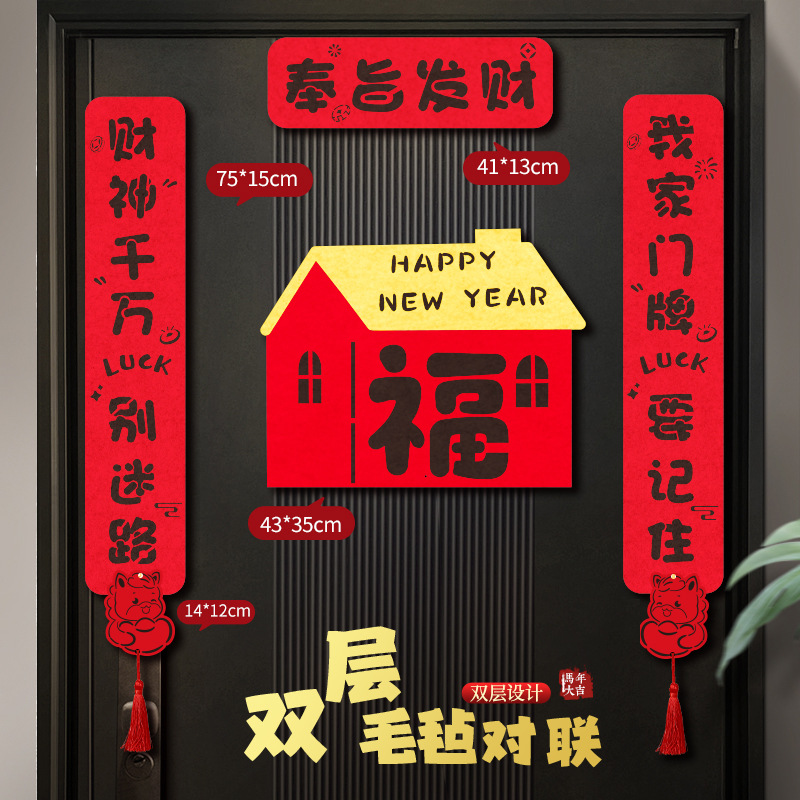 乔迁之喜加厚双层毛毡对联搬家仪式装饰新居入宅磁吸门贴乔迁新居