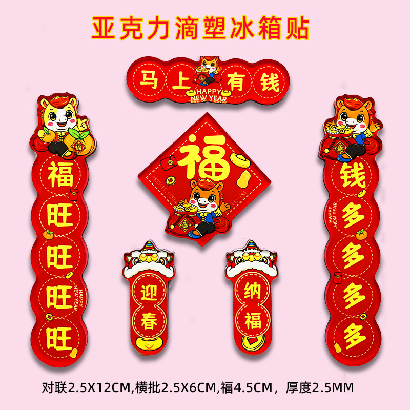 定制磁性2026马年新年春节大门亚克力滴胶冰箱贴软磁磁吸汽车对联