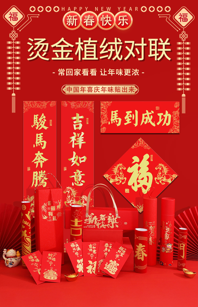 spring festival scrolls couplets batch goods spring festival fu character silk gift bag wholesale flannel 2026 horse year flocking couplet customization