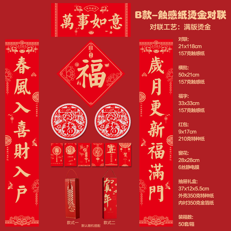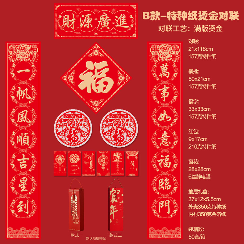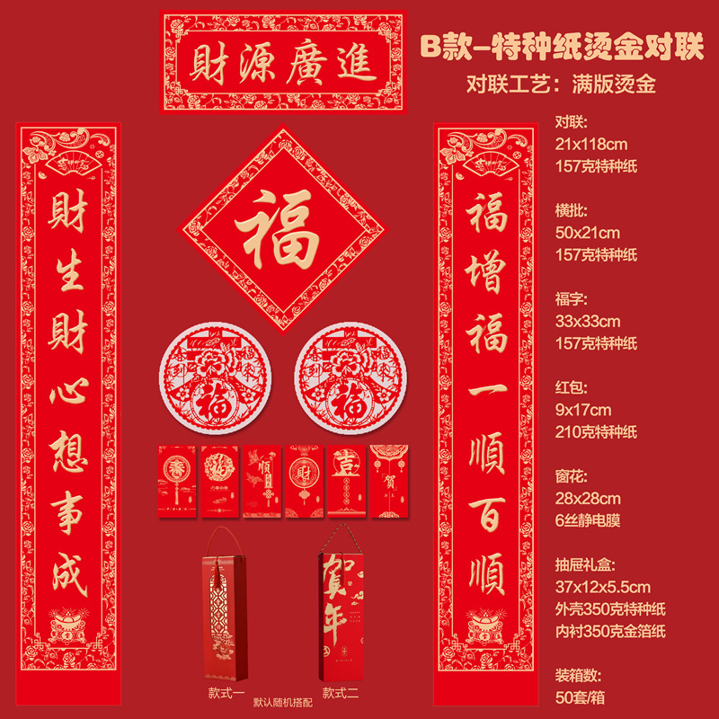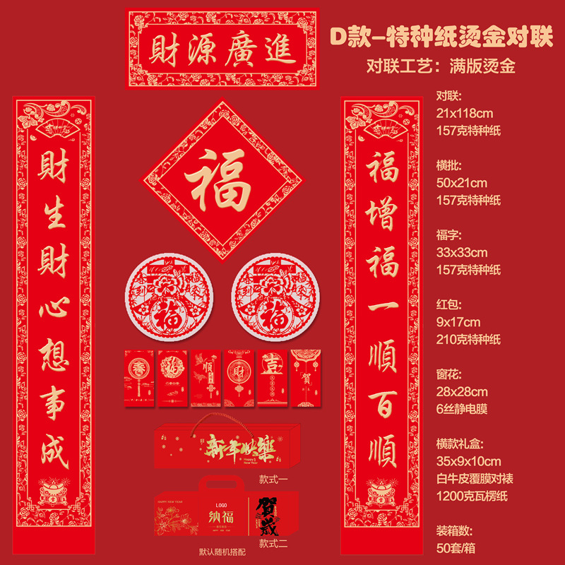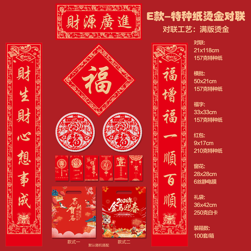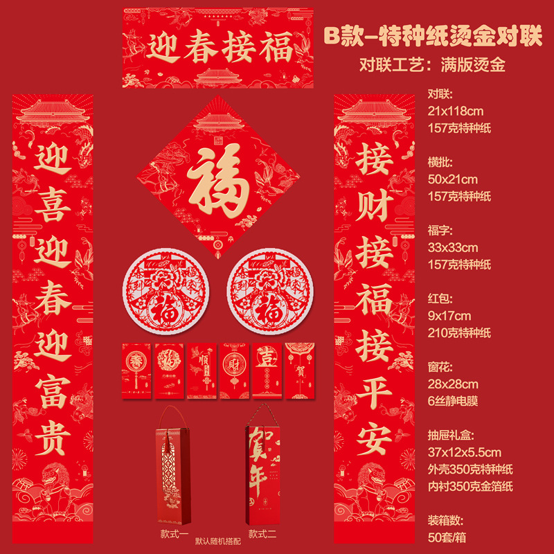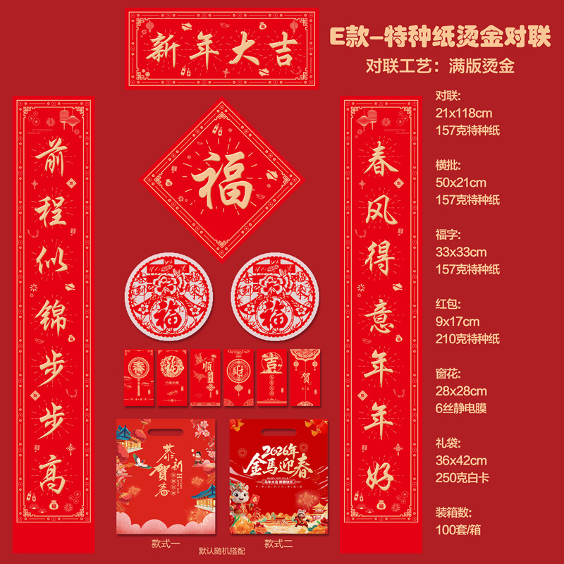 2026马年新款广告对联定制特种纸烫金丝绸春联礼盒套装定做印LOGO