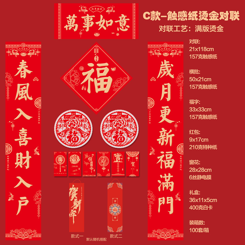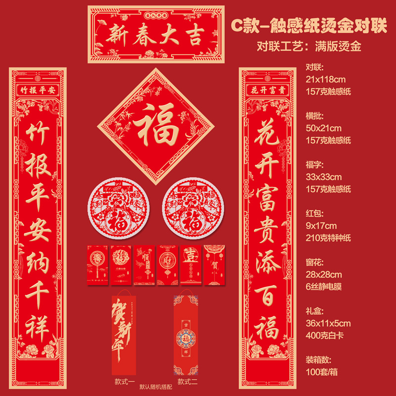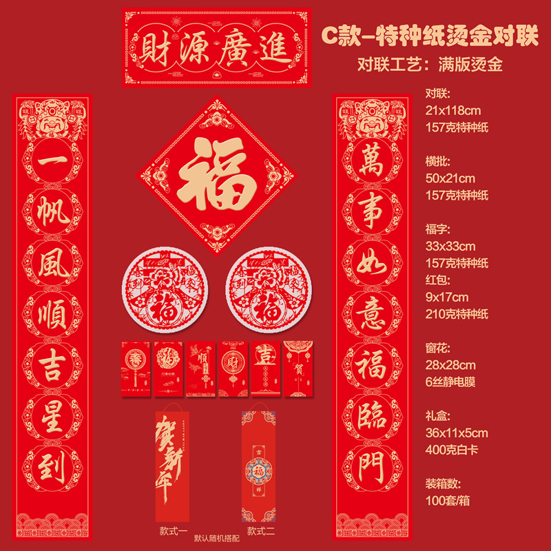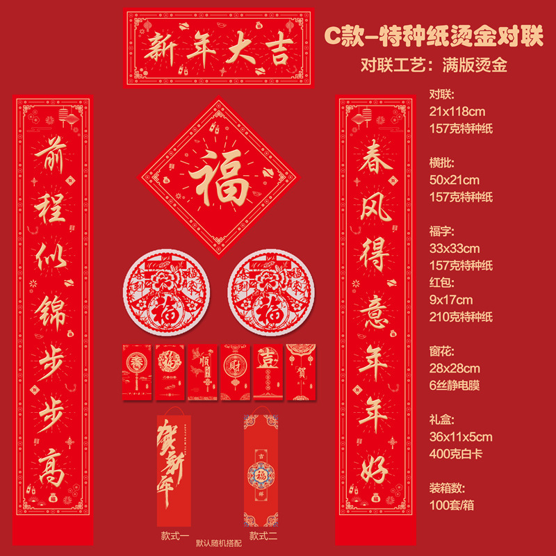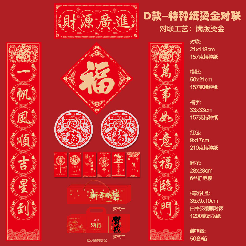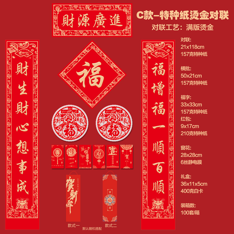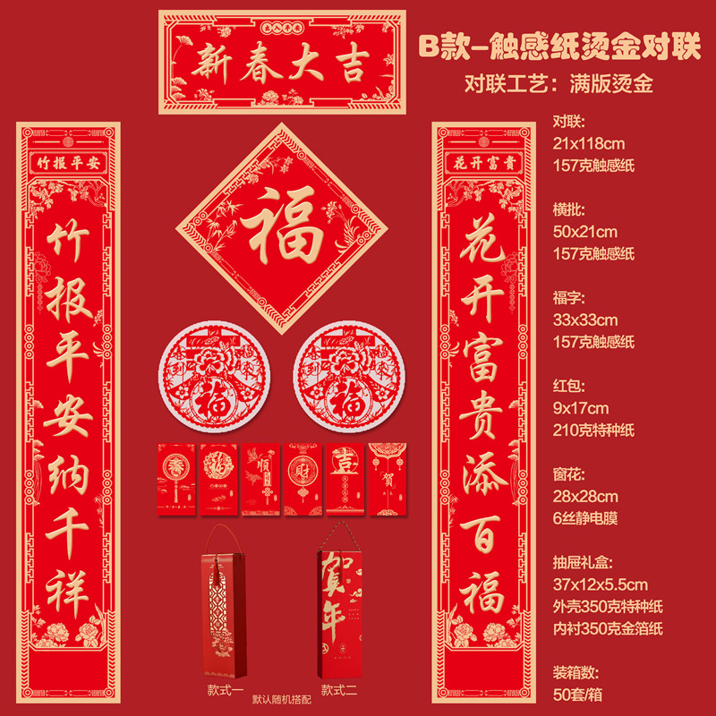 2026马年新款广告对联定制特种纸烫金丝绸春联礼盒套装定做印LOGO