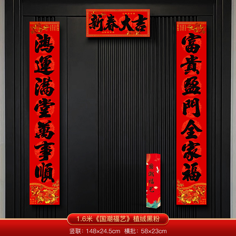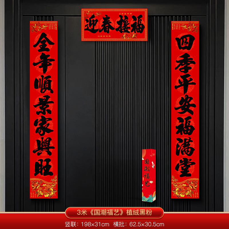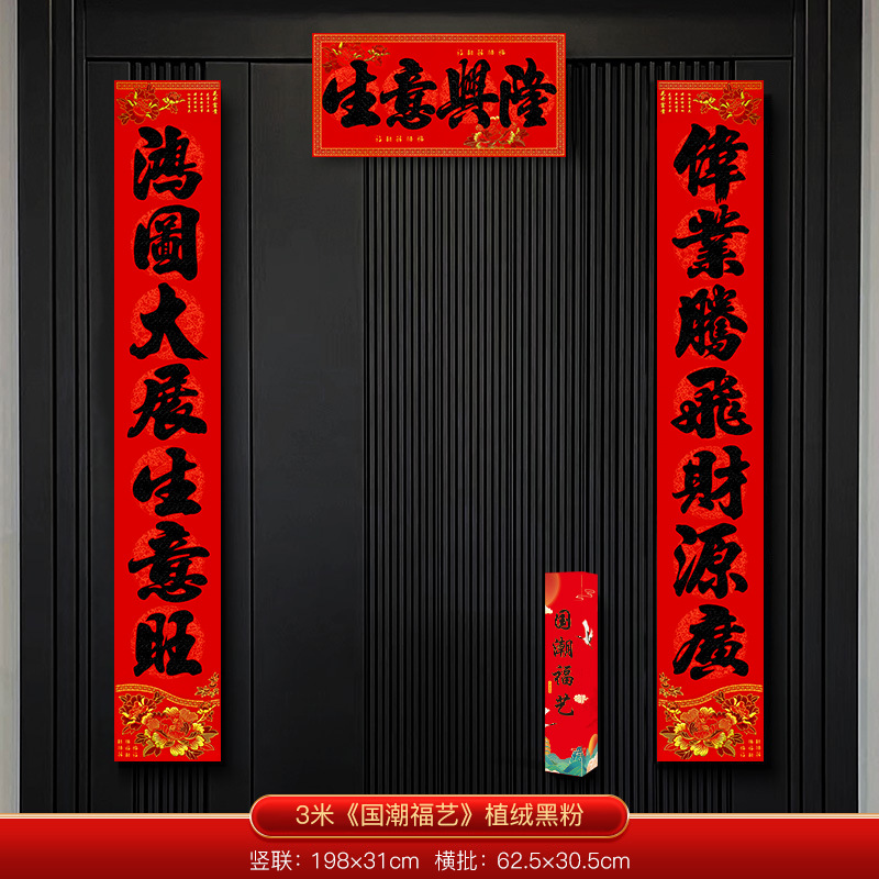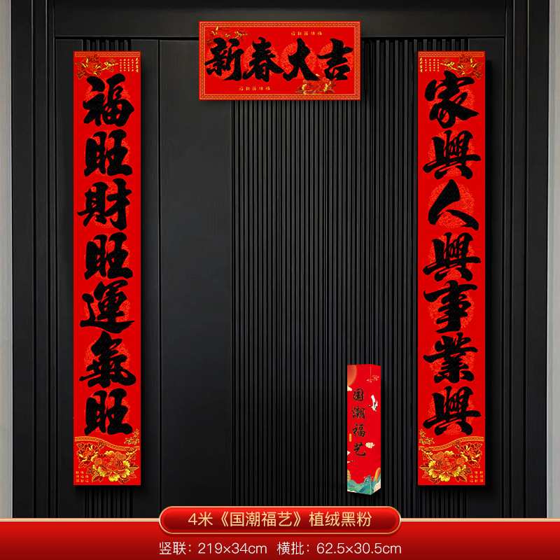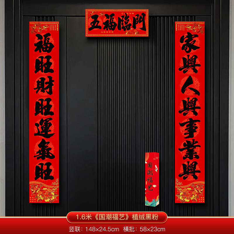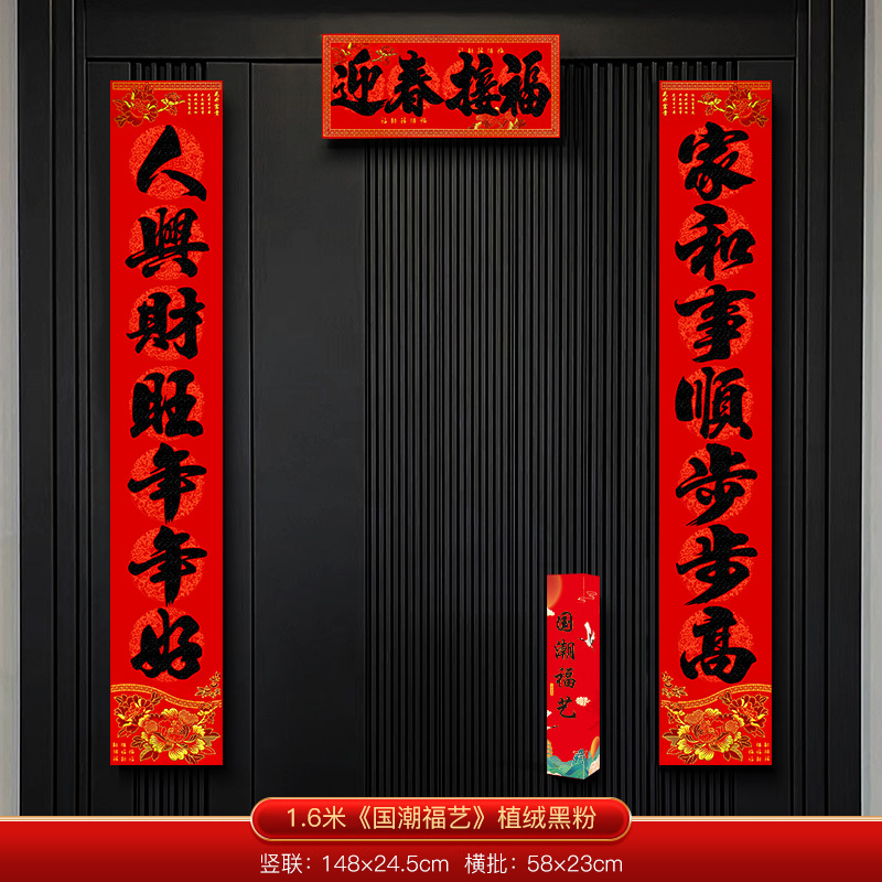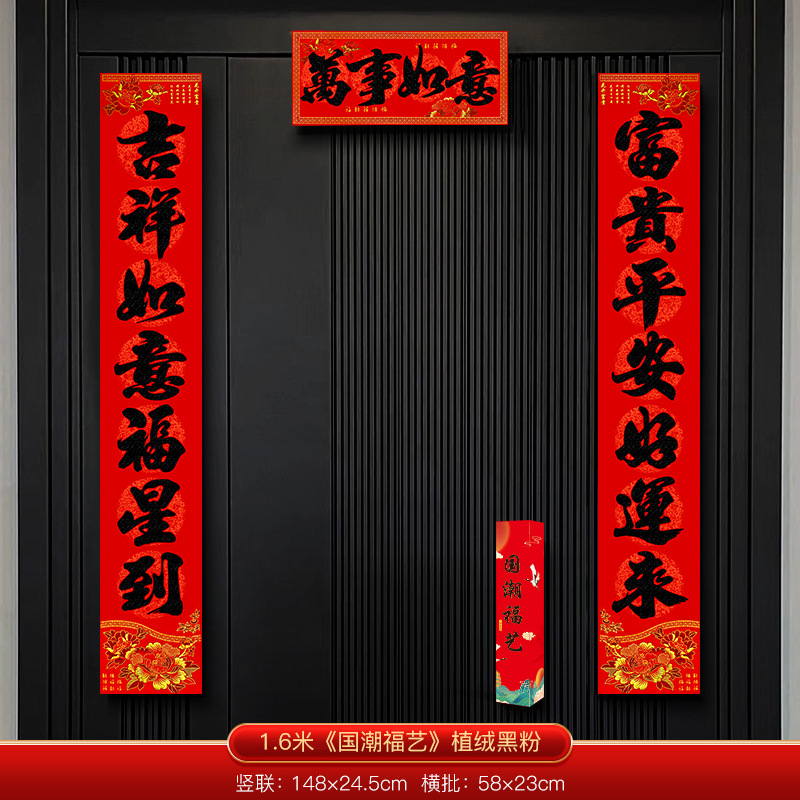 新款对联工厂批发蛇年植绒对联盒装春联年货年画装饰用品黑粉对联