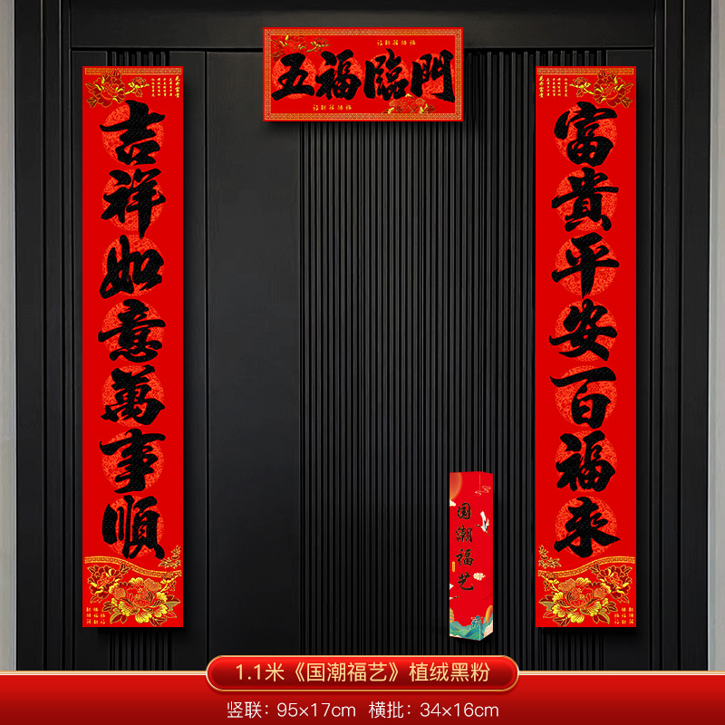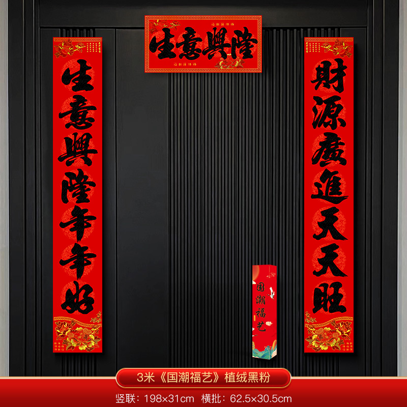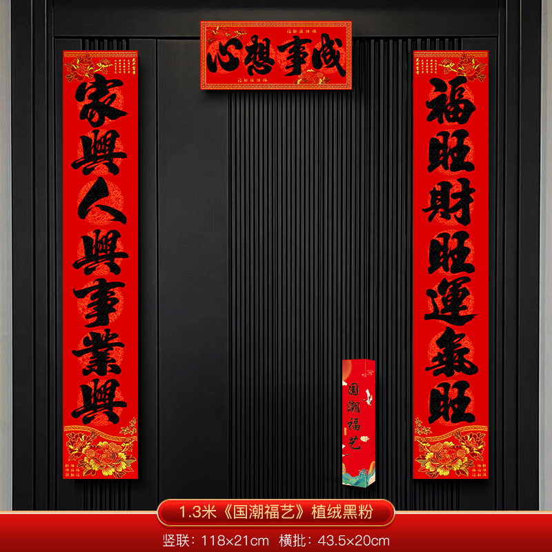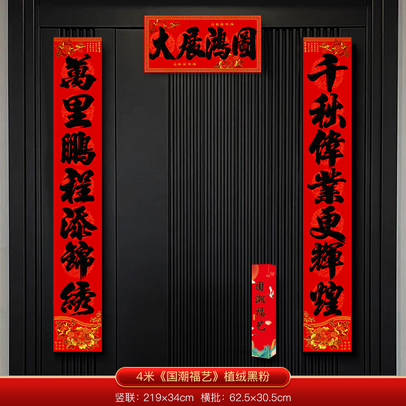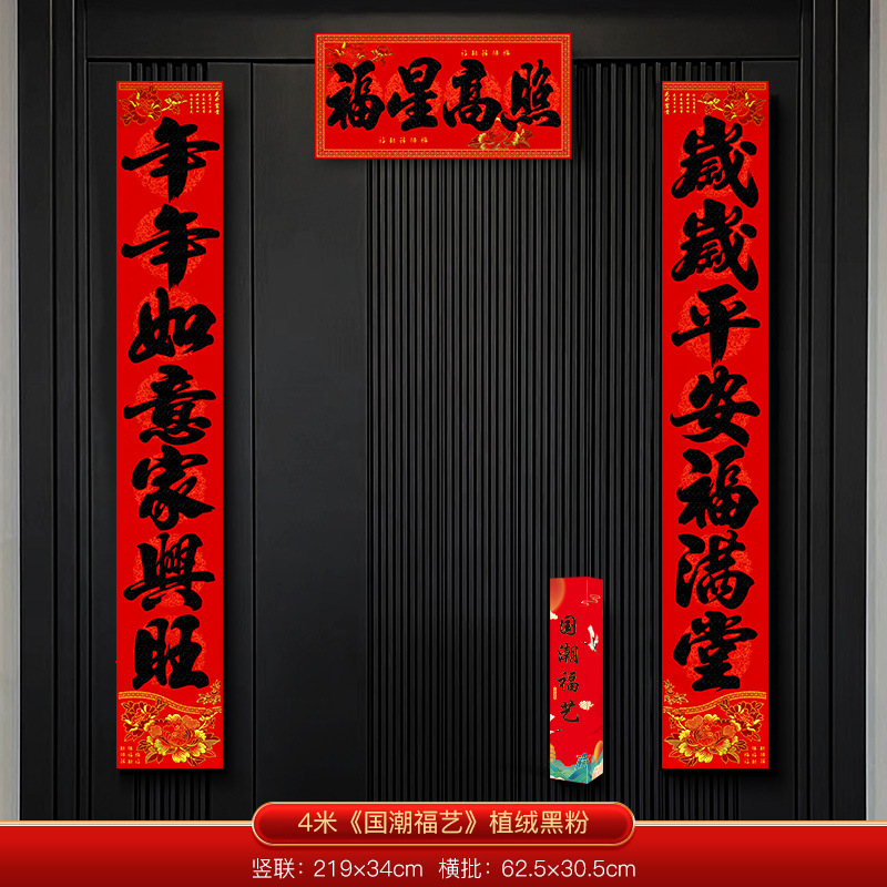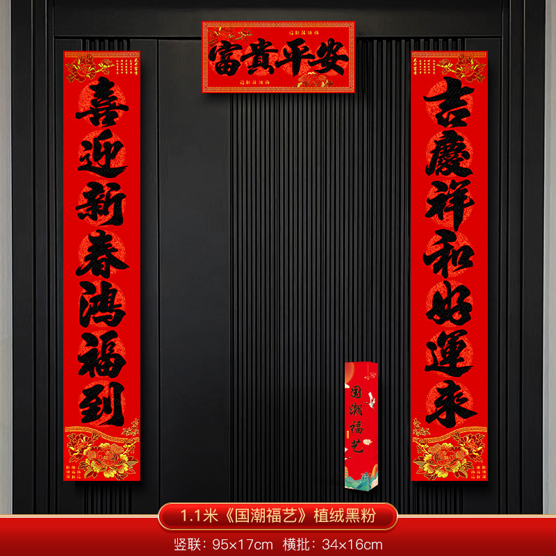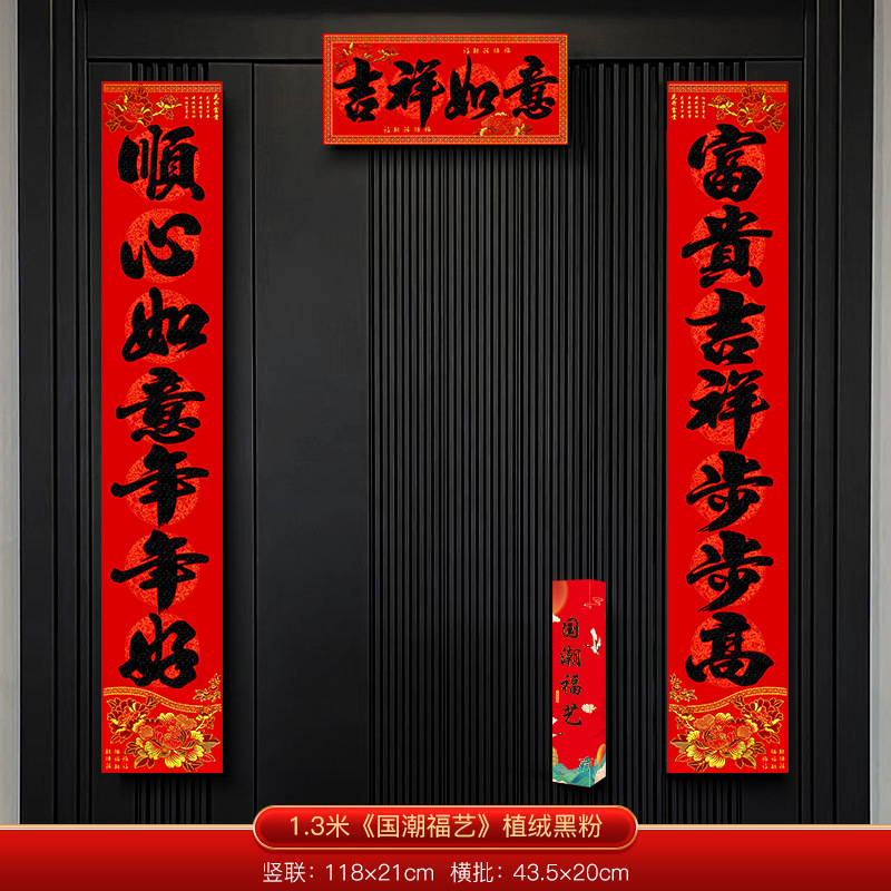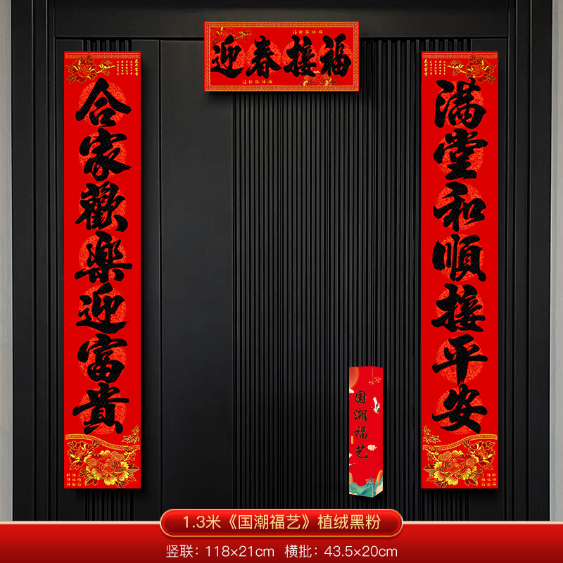 新款对联工厂批发蛇年植绒对联盒装春联年货年画装饰用品黑粉对联