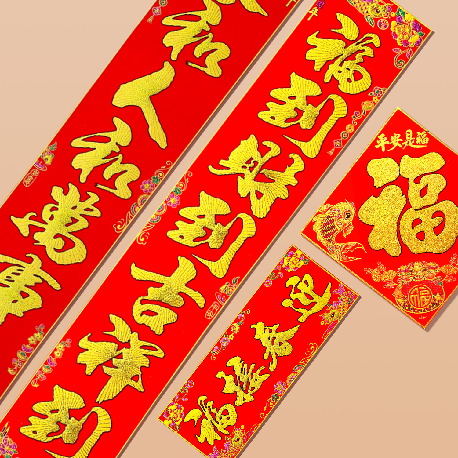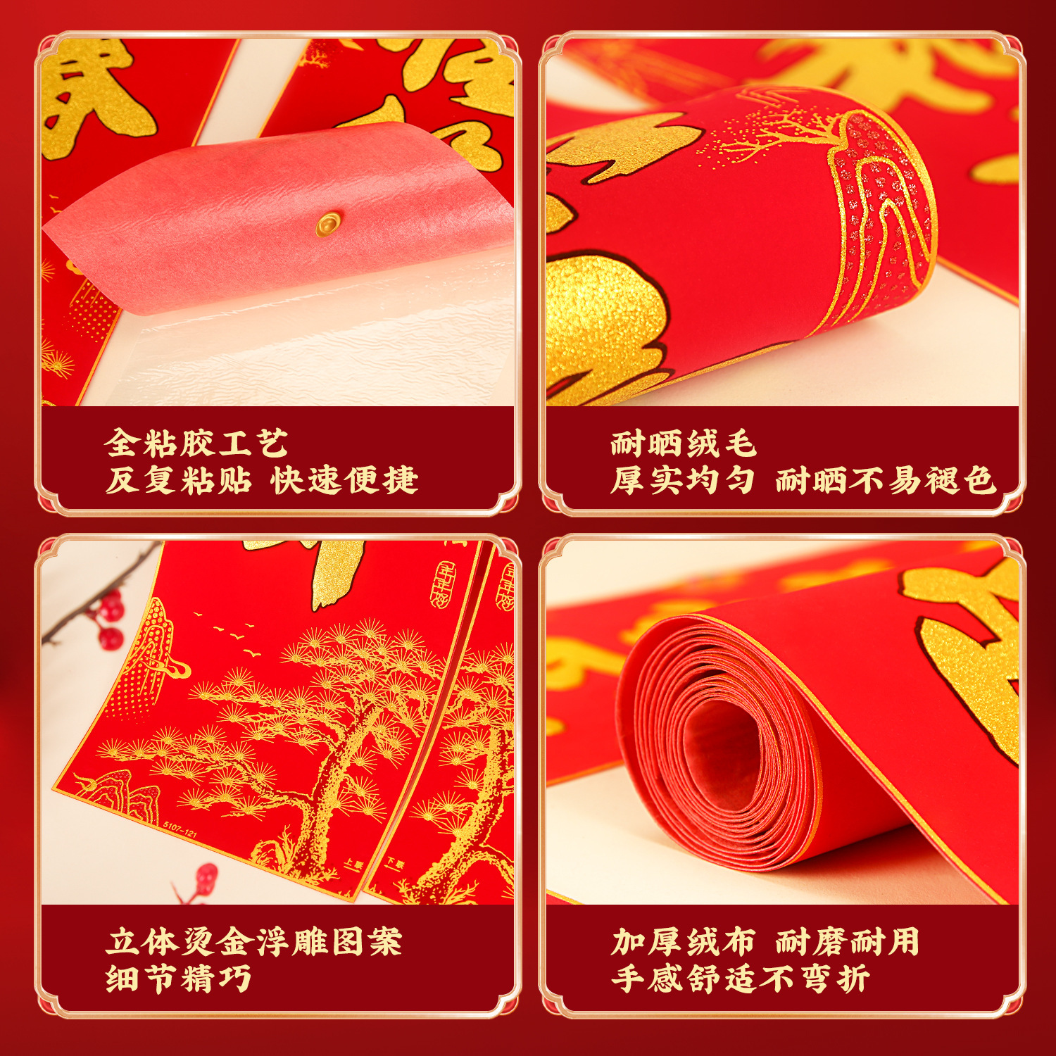 2026年新款加厚绒布高档春联自带全背胶新春节大对联过年门联批发