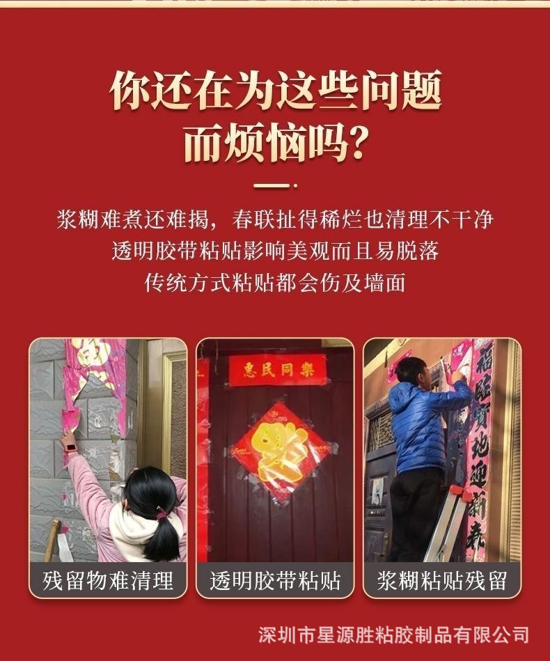 批发春联胶带网格双面胶透明易撕无痕贴婚房喜字年画车海报对联