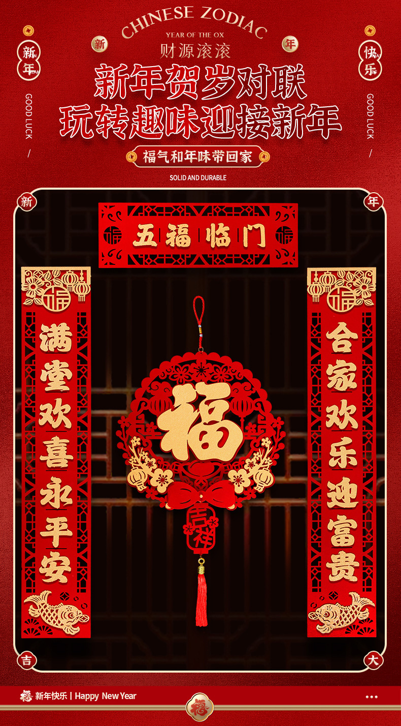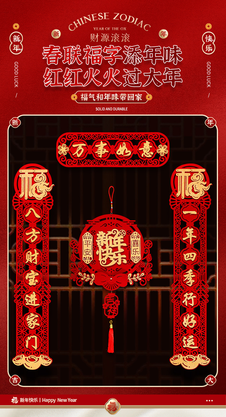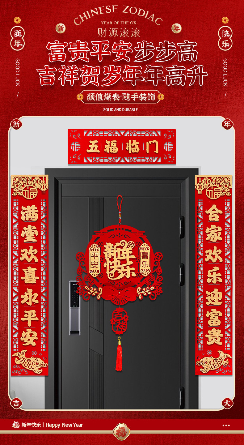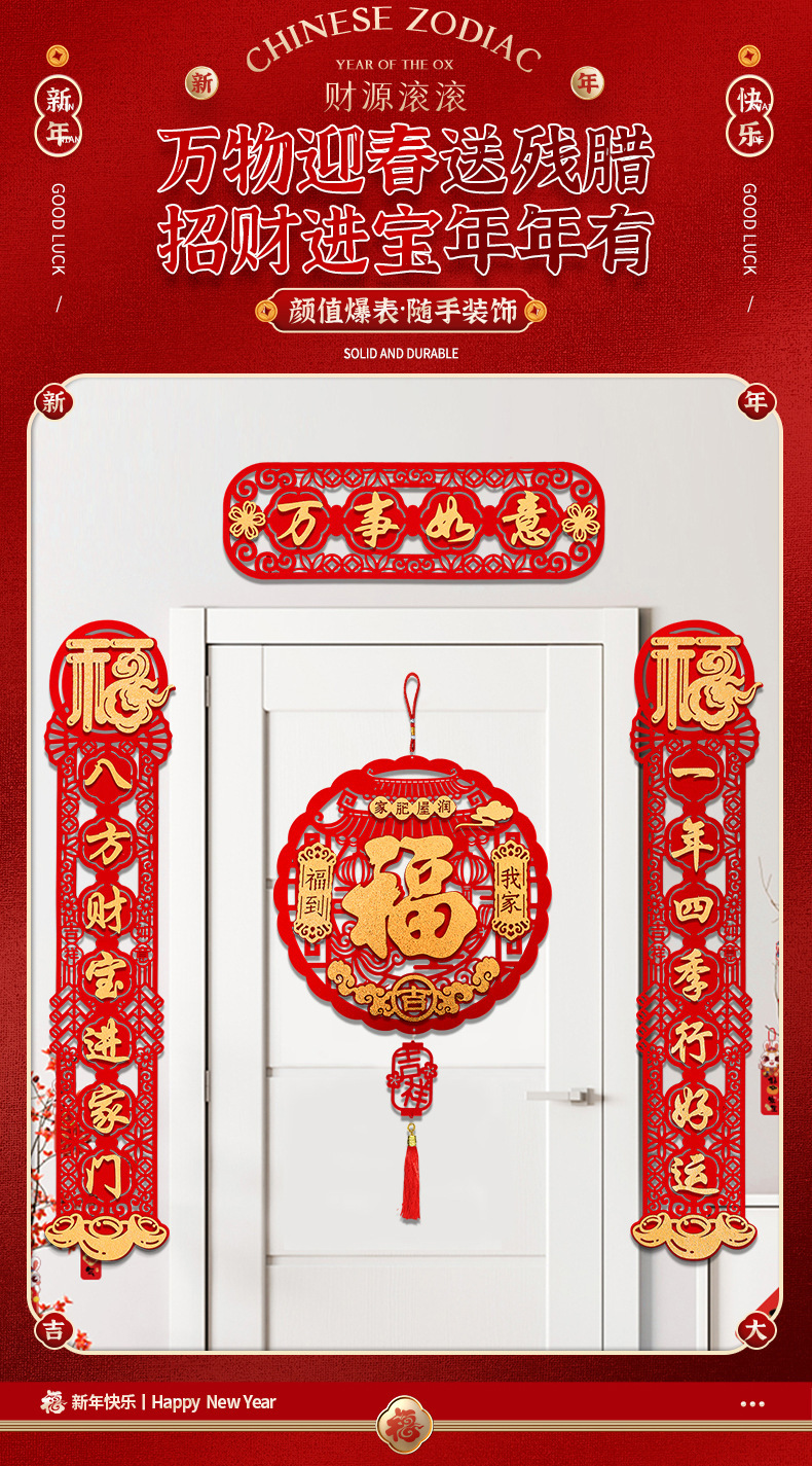 对联春联批发家用2026马年新款新年植绒磁吸新春节过年高档门挂件