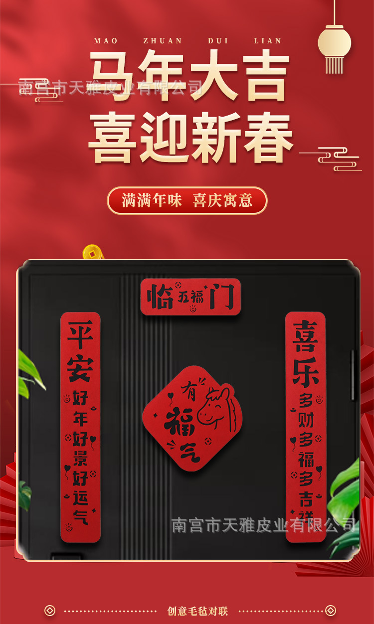 马年镂空毛毡磁吸对联新年春联装饰门贴加厚双层毛毡立体对联定制