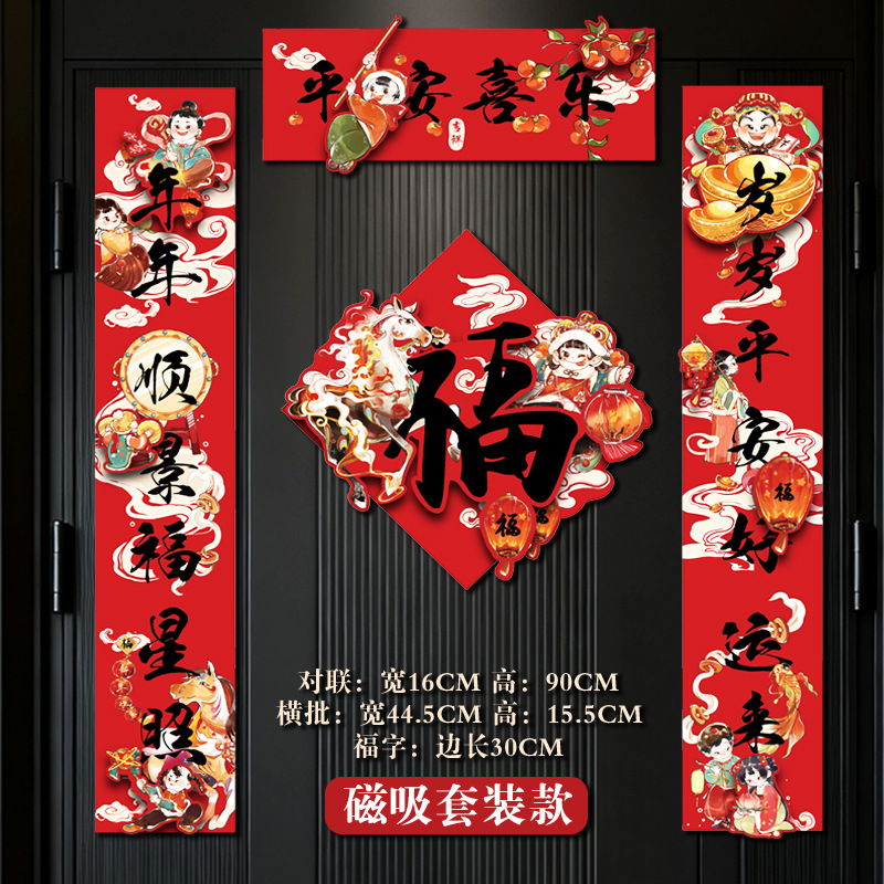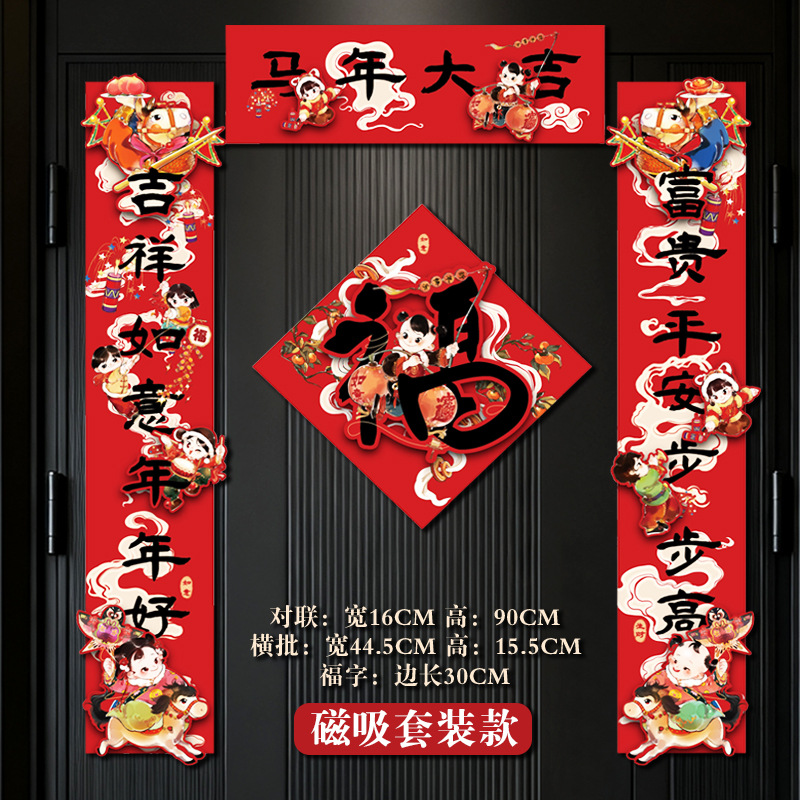 2026年批货摆摊春联对联创意马年装饰门贴新年卡纸磁吸中国风门联