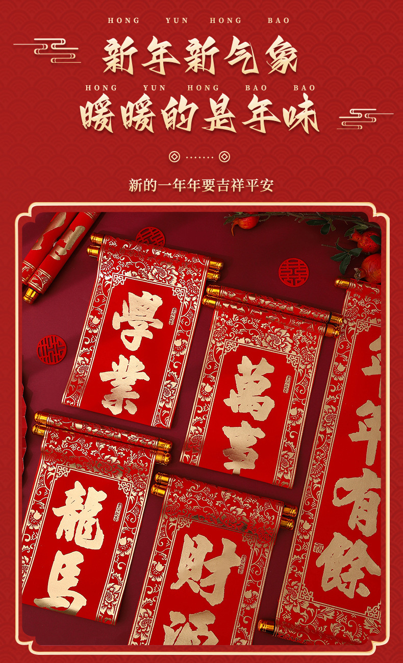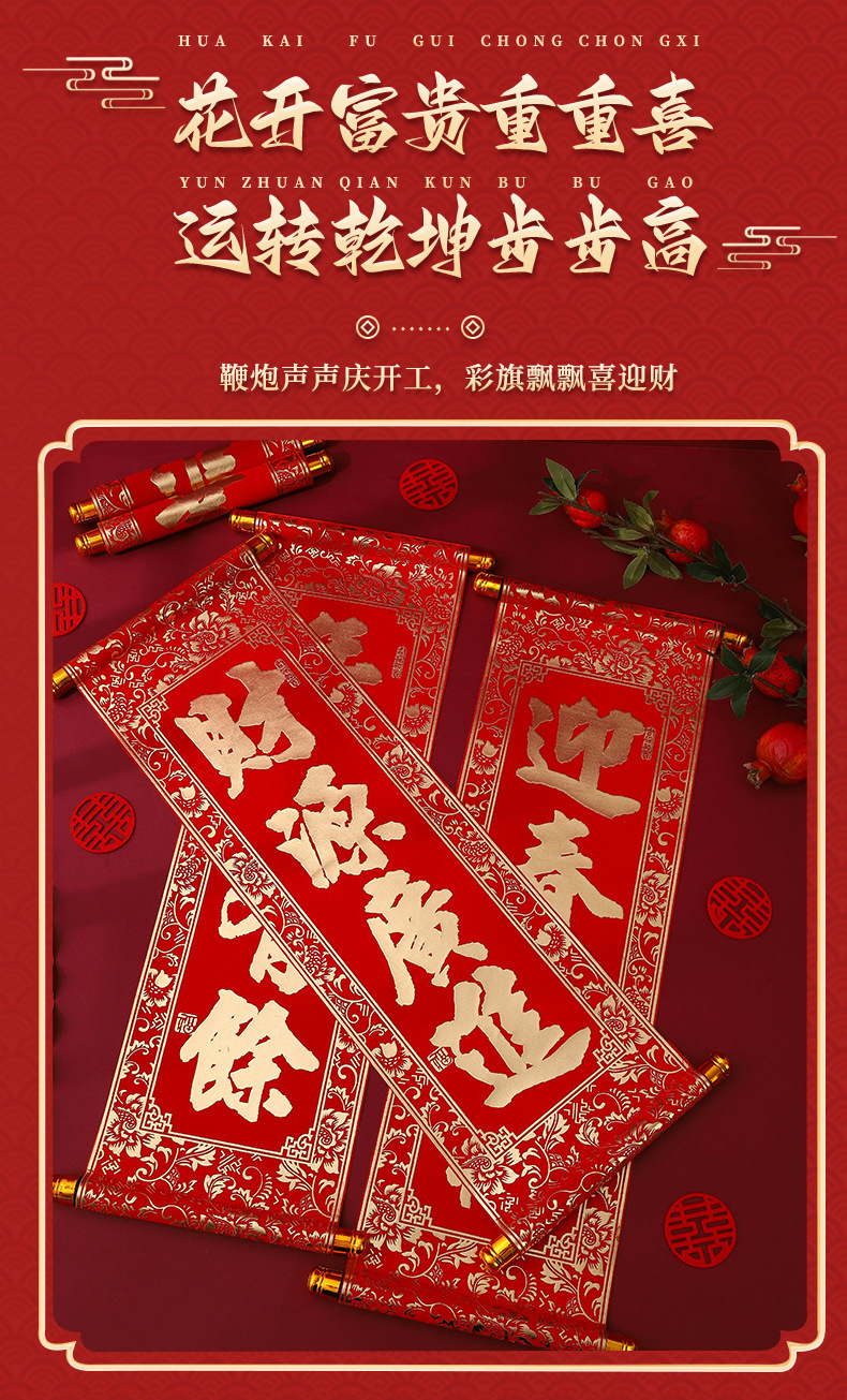新年春节手持对联春联四字卷轴挂联元旦舞台表演道具装饰马年2026