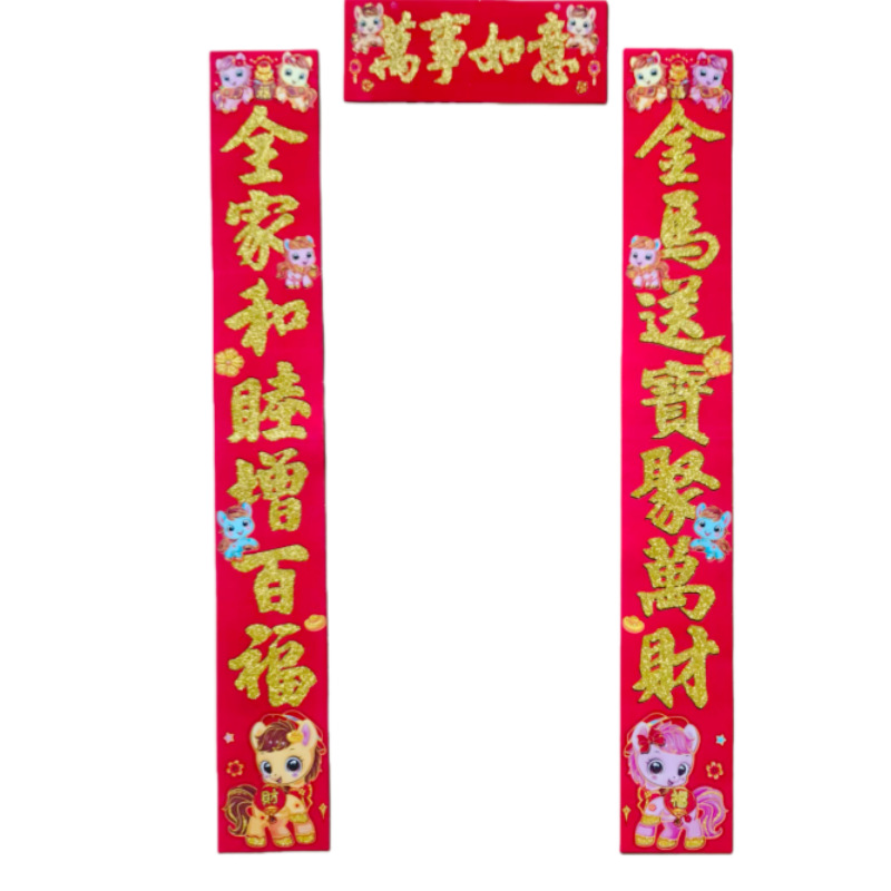 2026马年新年对联新款植绒金粉春节过年大门入户门单元门春联批发