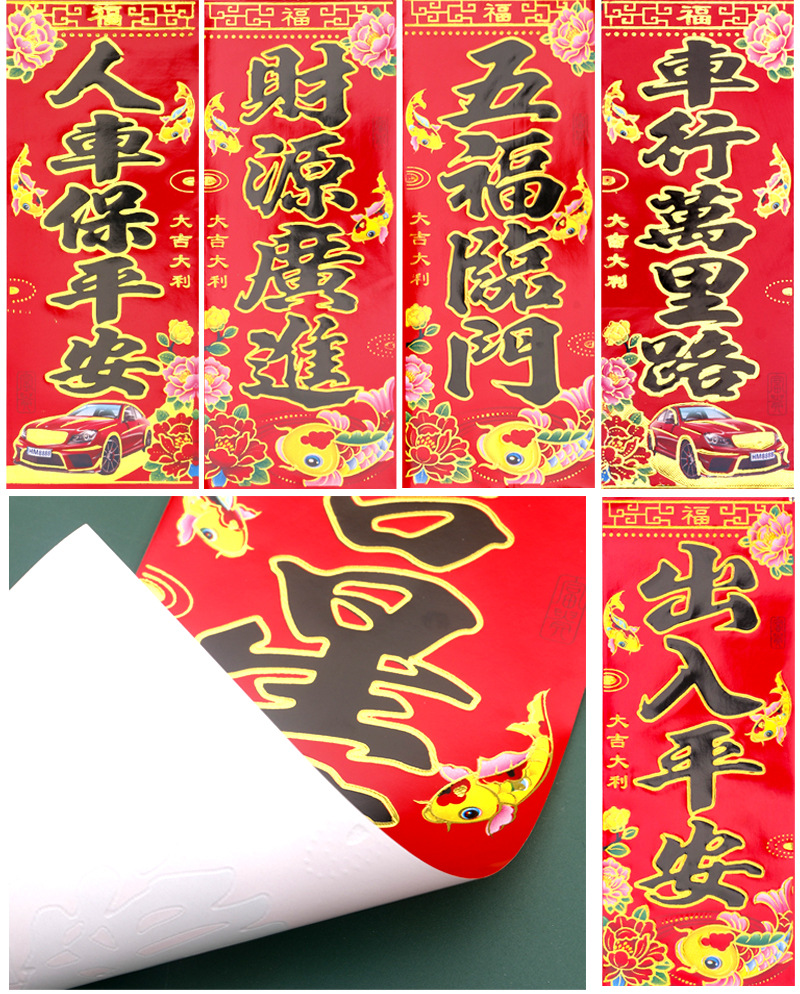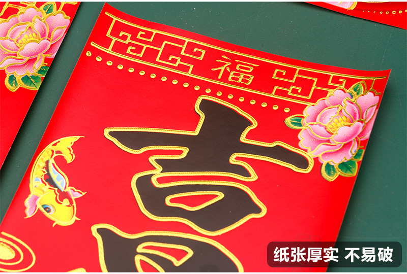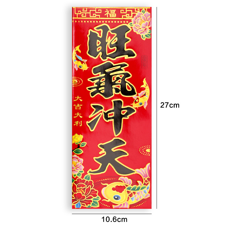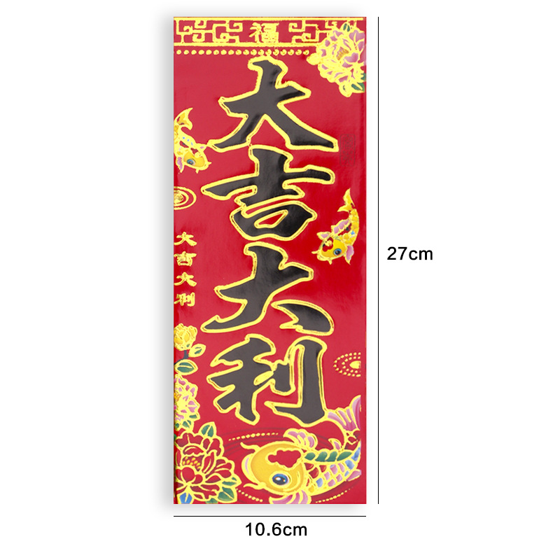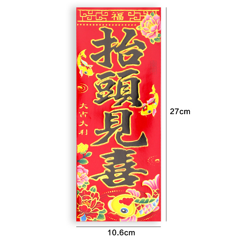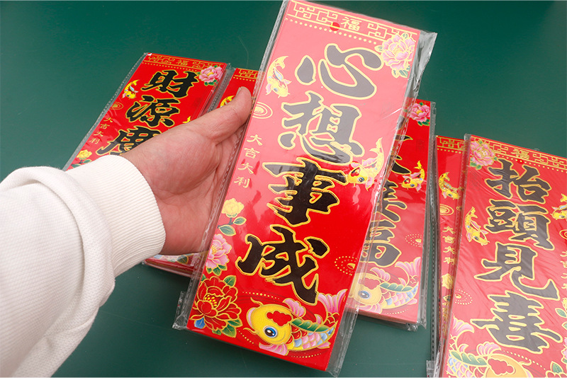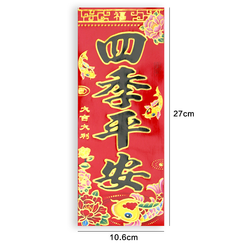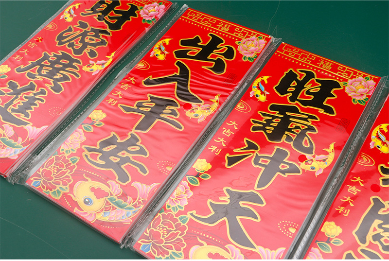 竖联挥春四字珲春门贴对联烫黑金条幅院子小对子黑字竖批春节贴纸