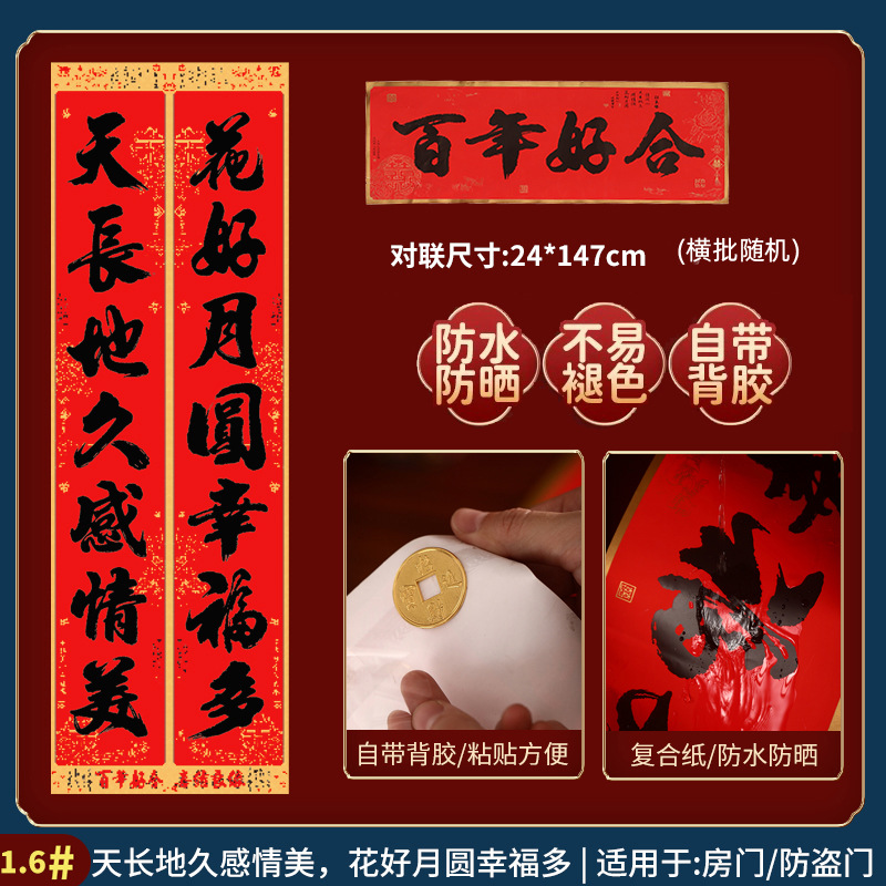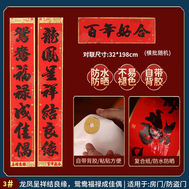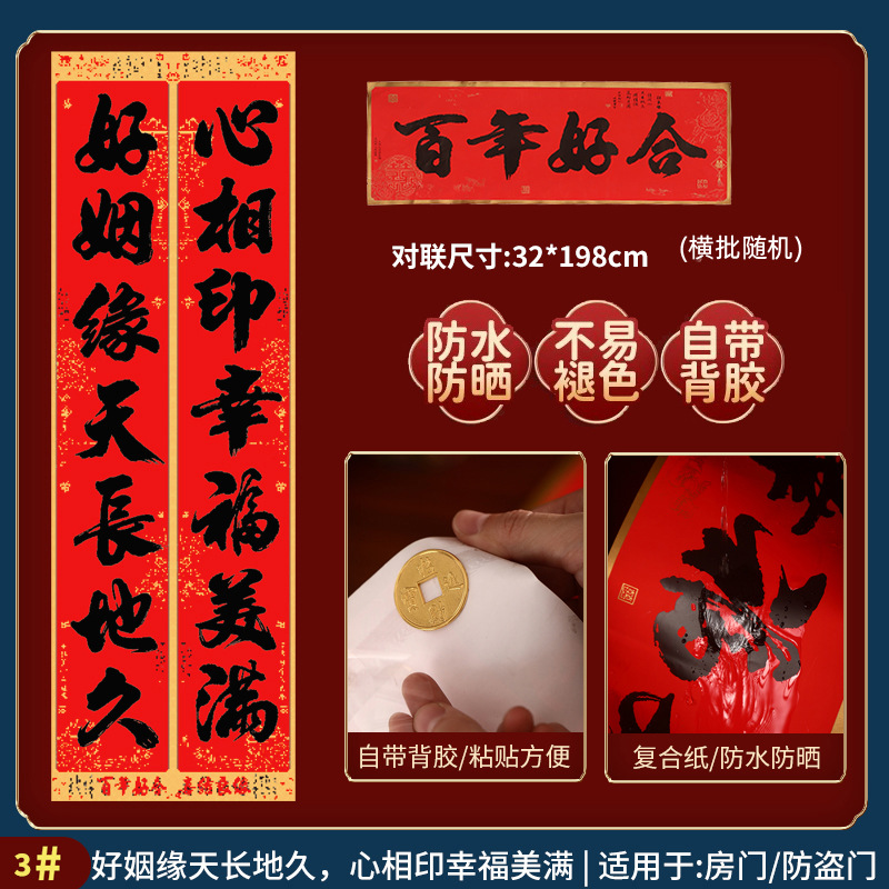 2026自带背胶结婚对联男方女方出嫁新婚喜联婚房装饰布置婚礼对联